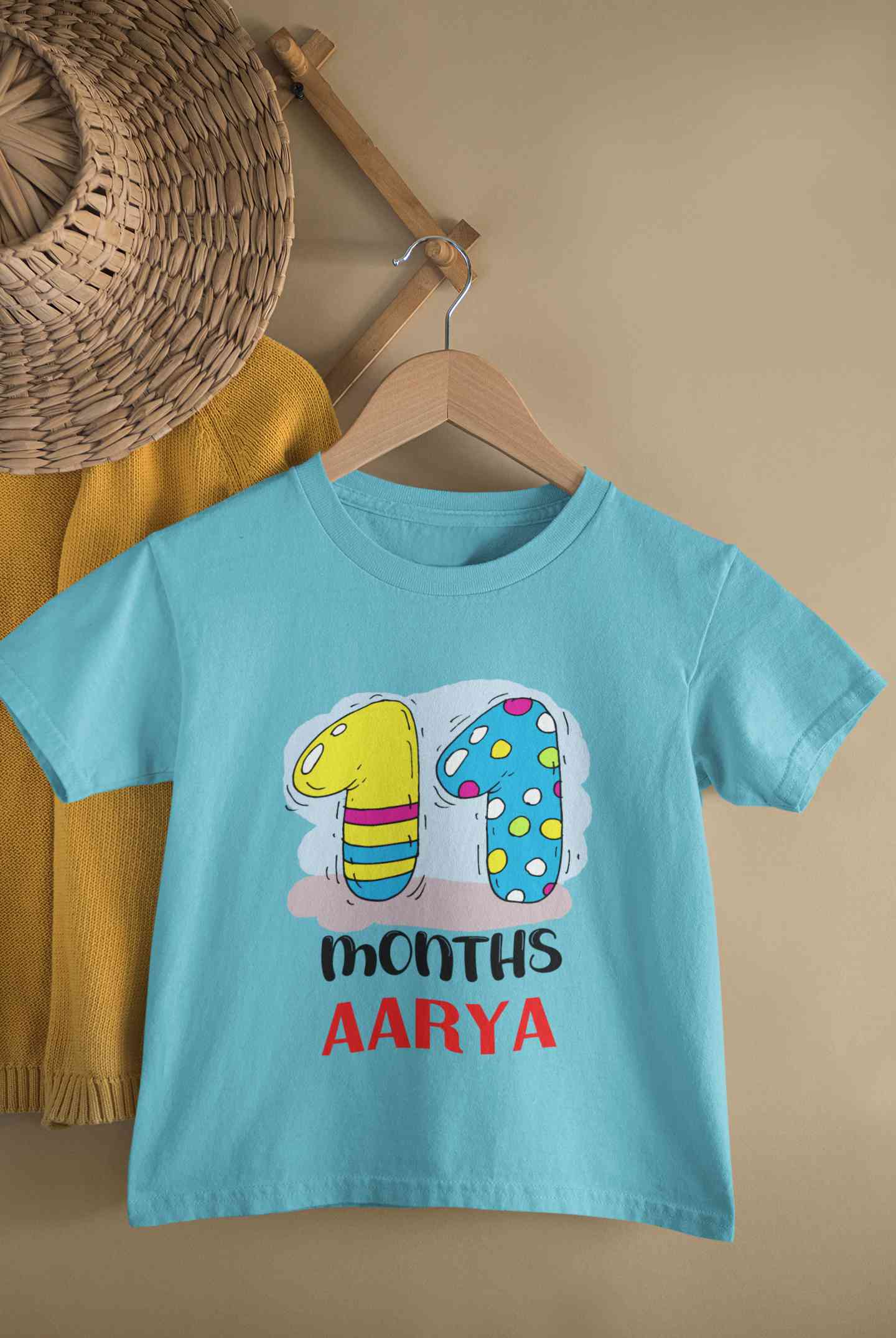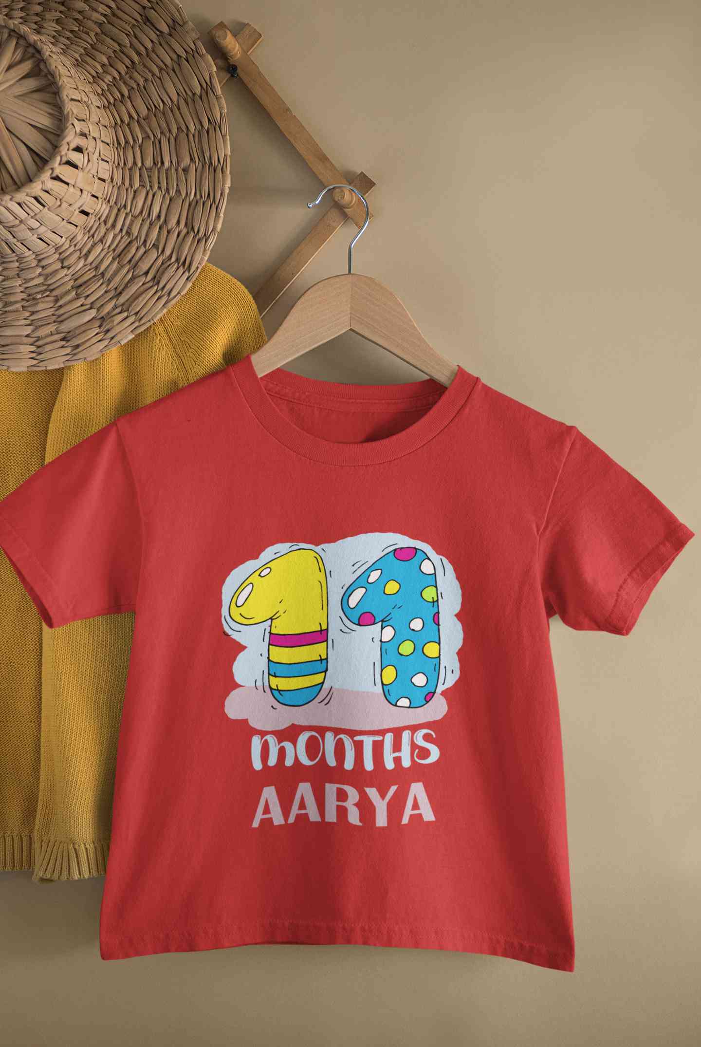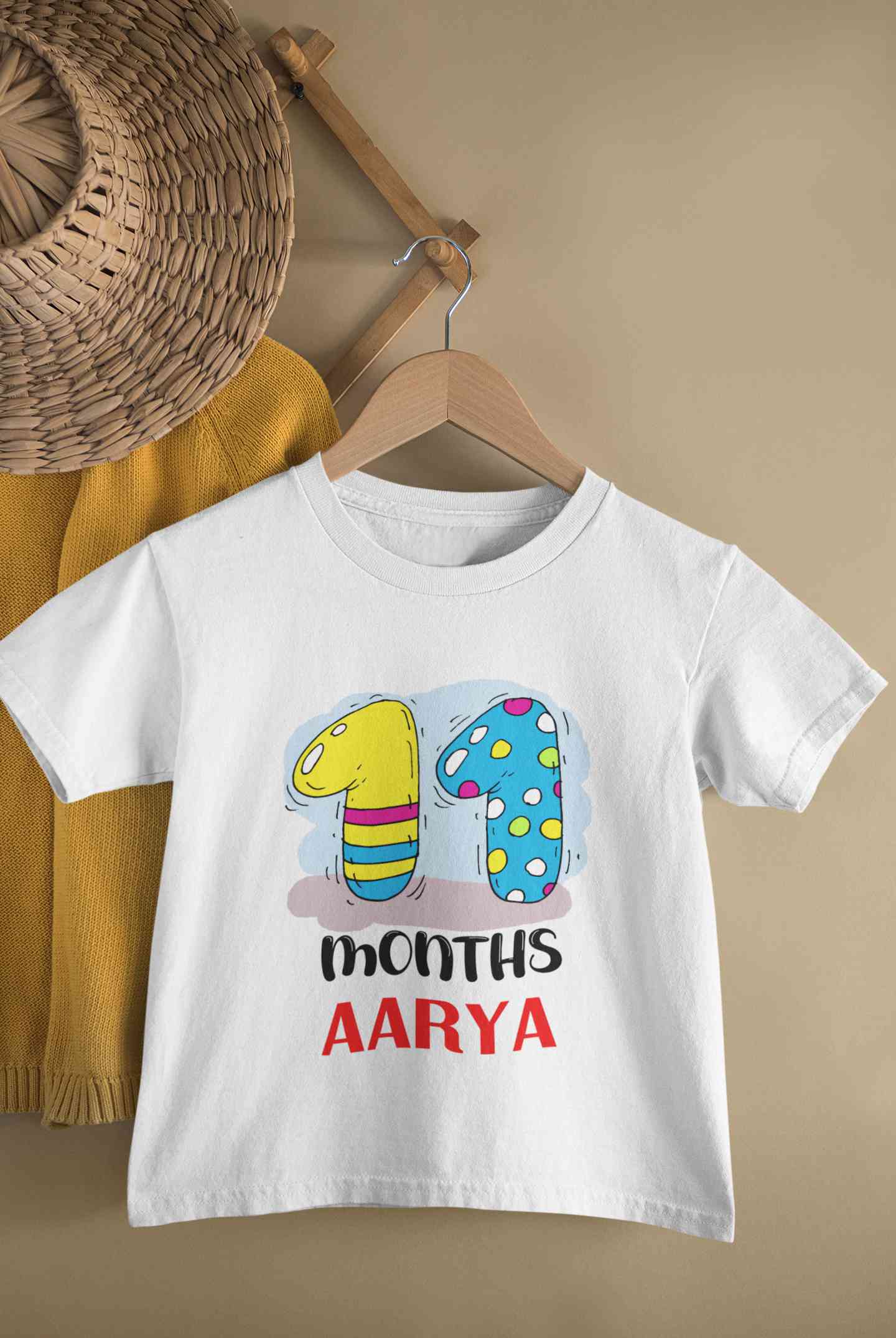 Custom Name 11 Month Birthday Teddy Design Half Sleeves T-Shirt For Girls -FashionRazor