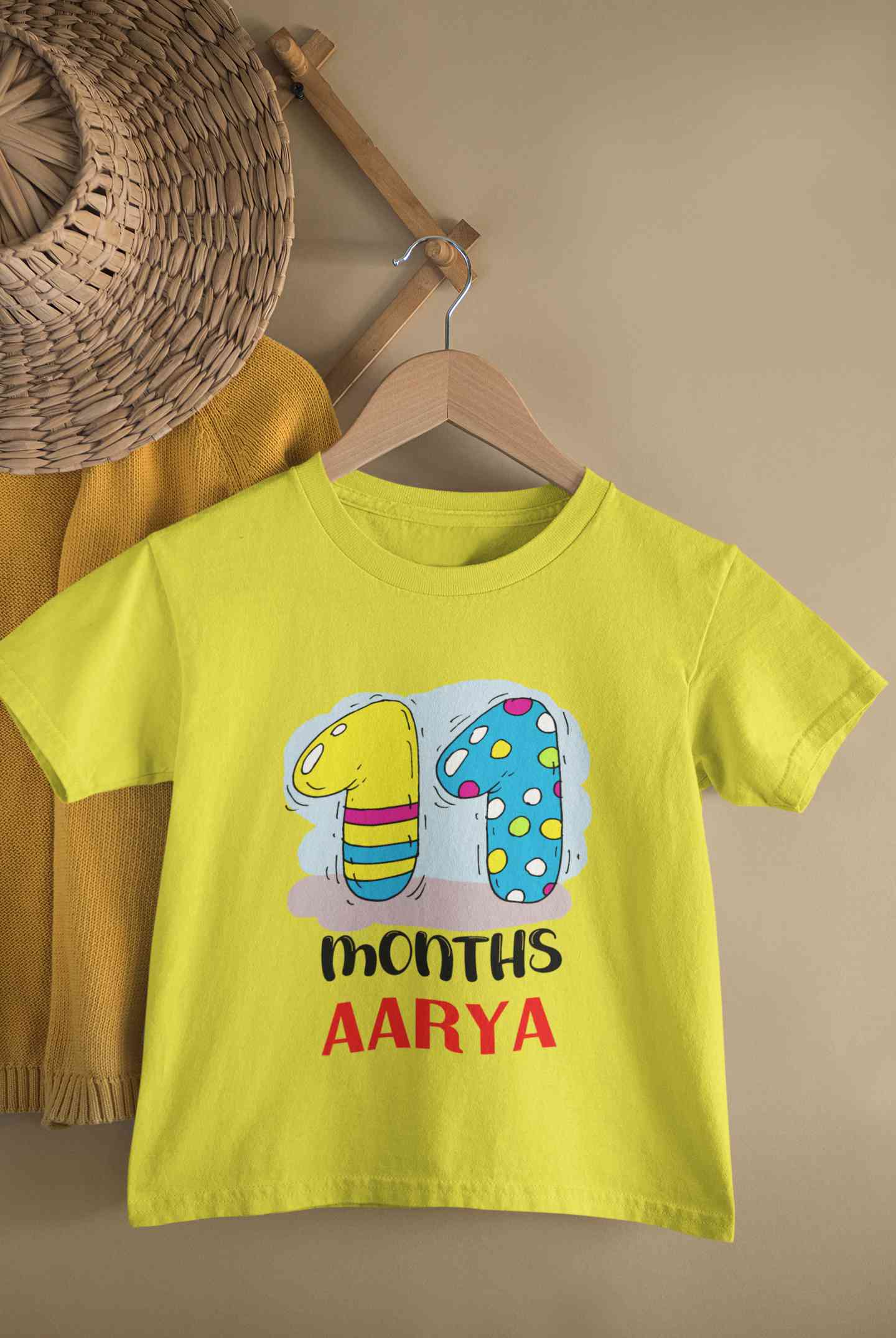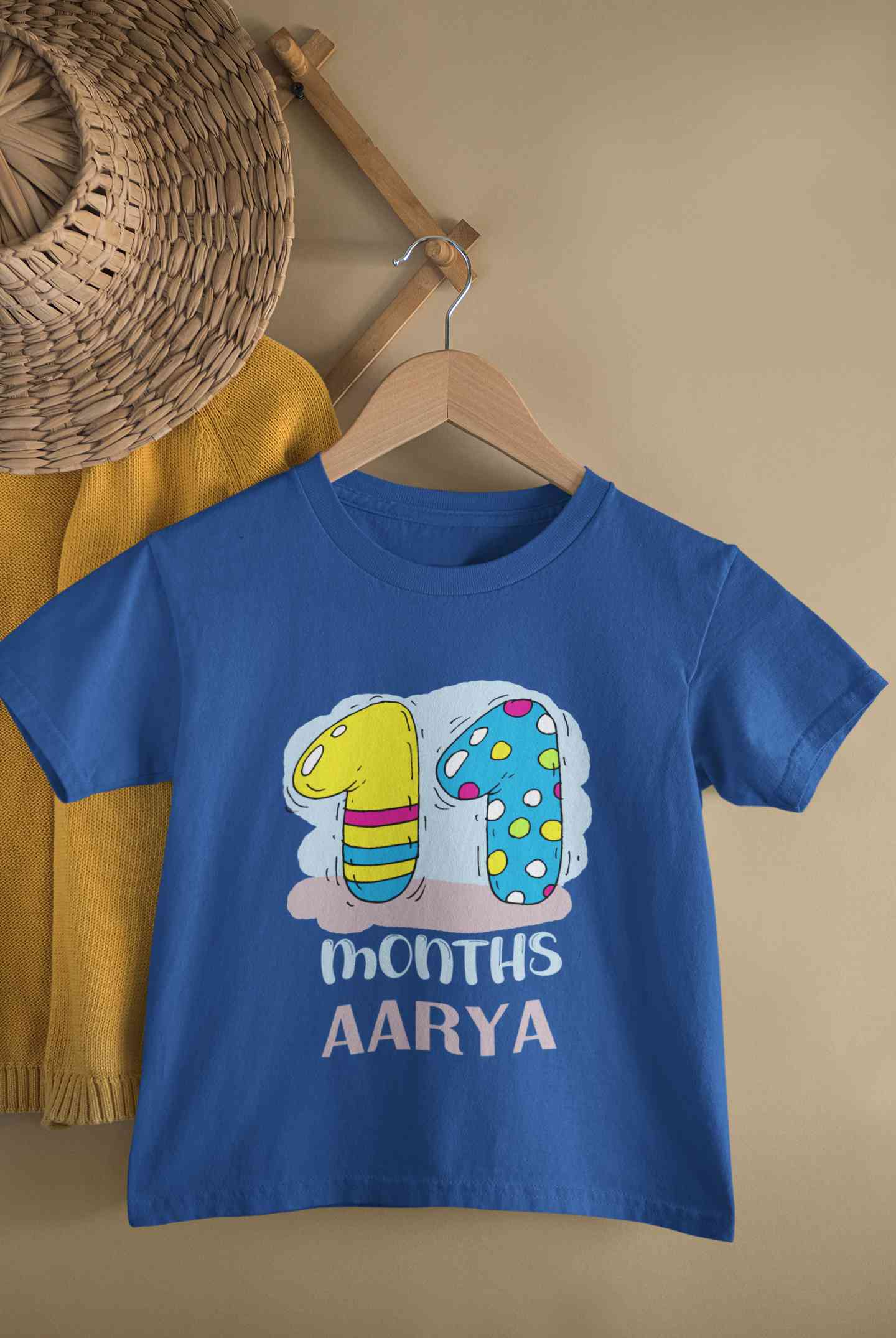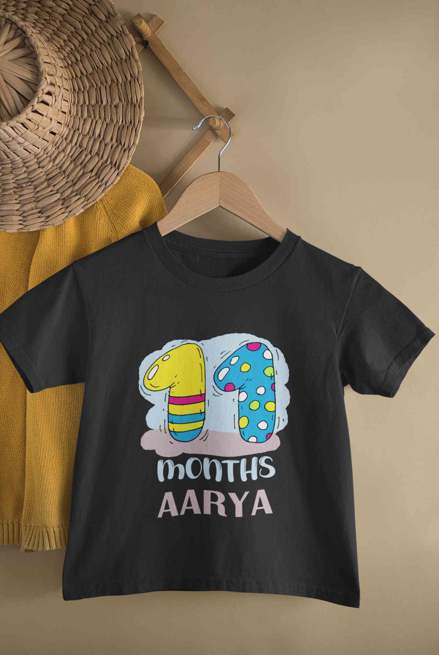 Custom Name 11 Month Birthday Teddy Design Half Sleeves T-Shirt For Girls -FashionRazor