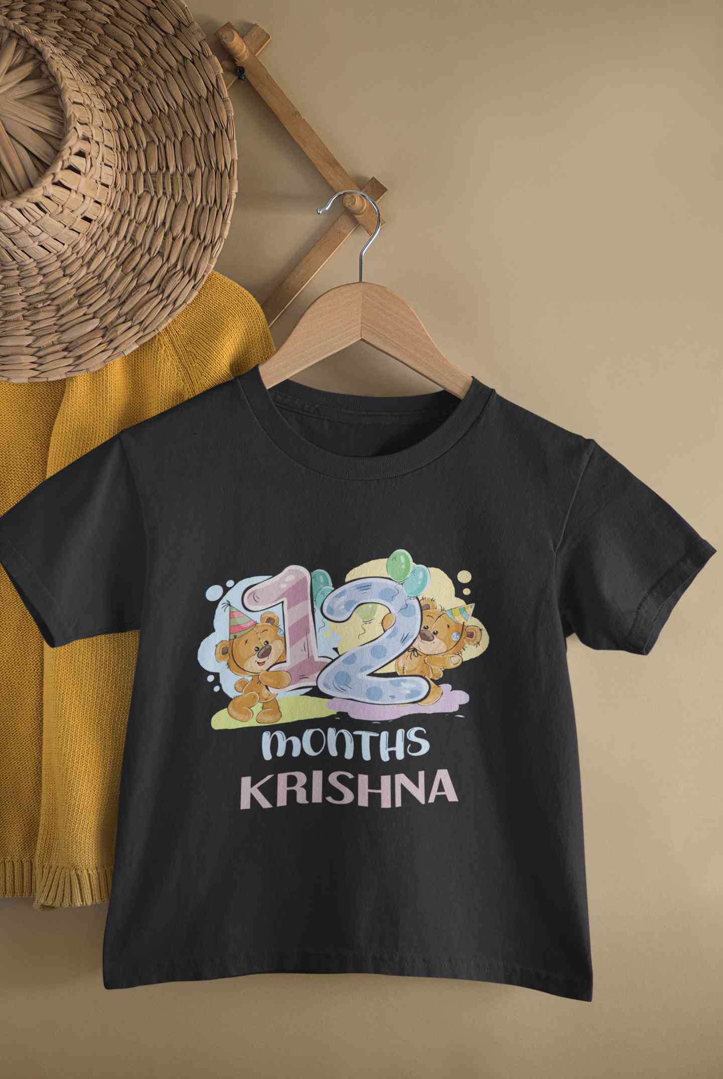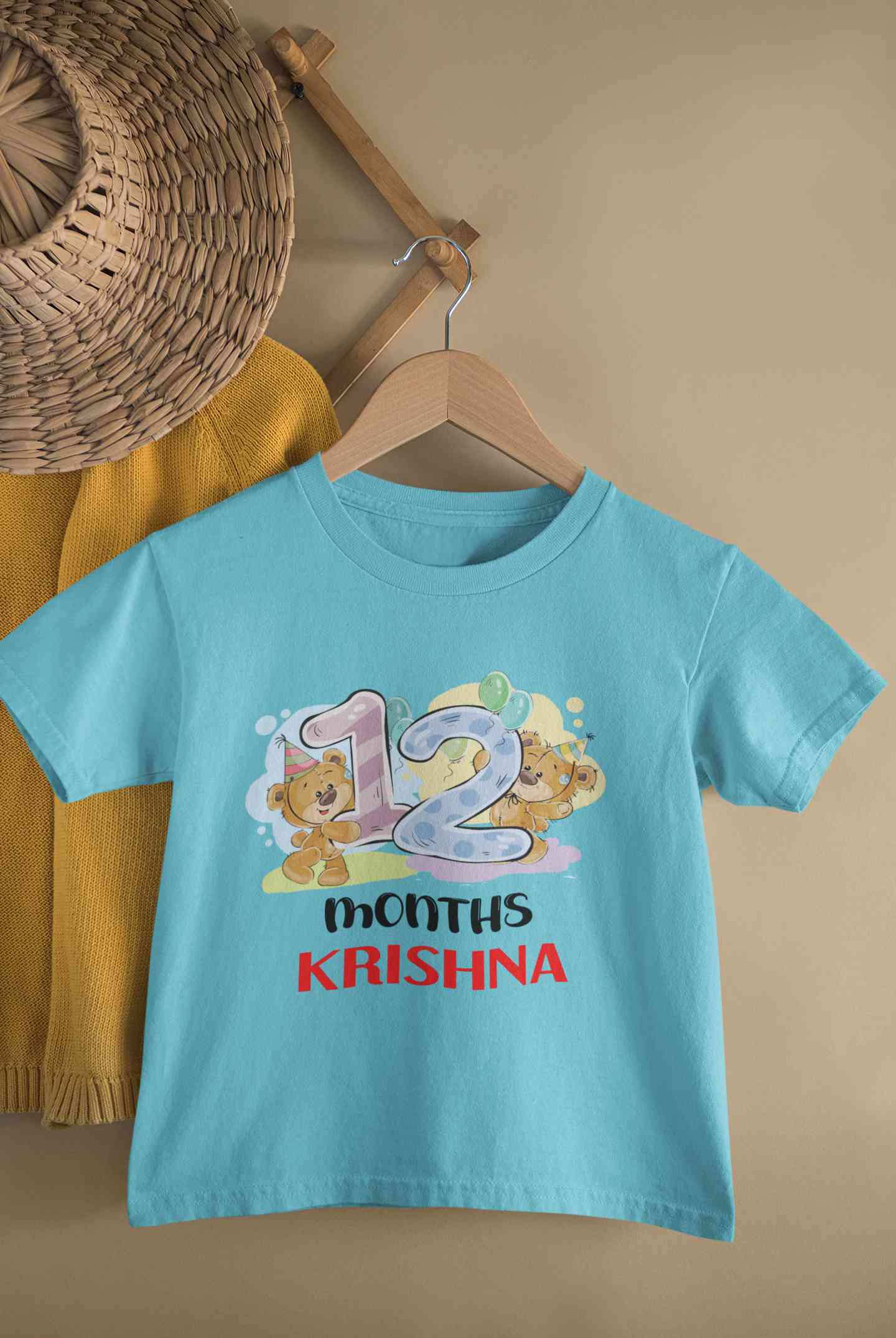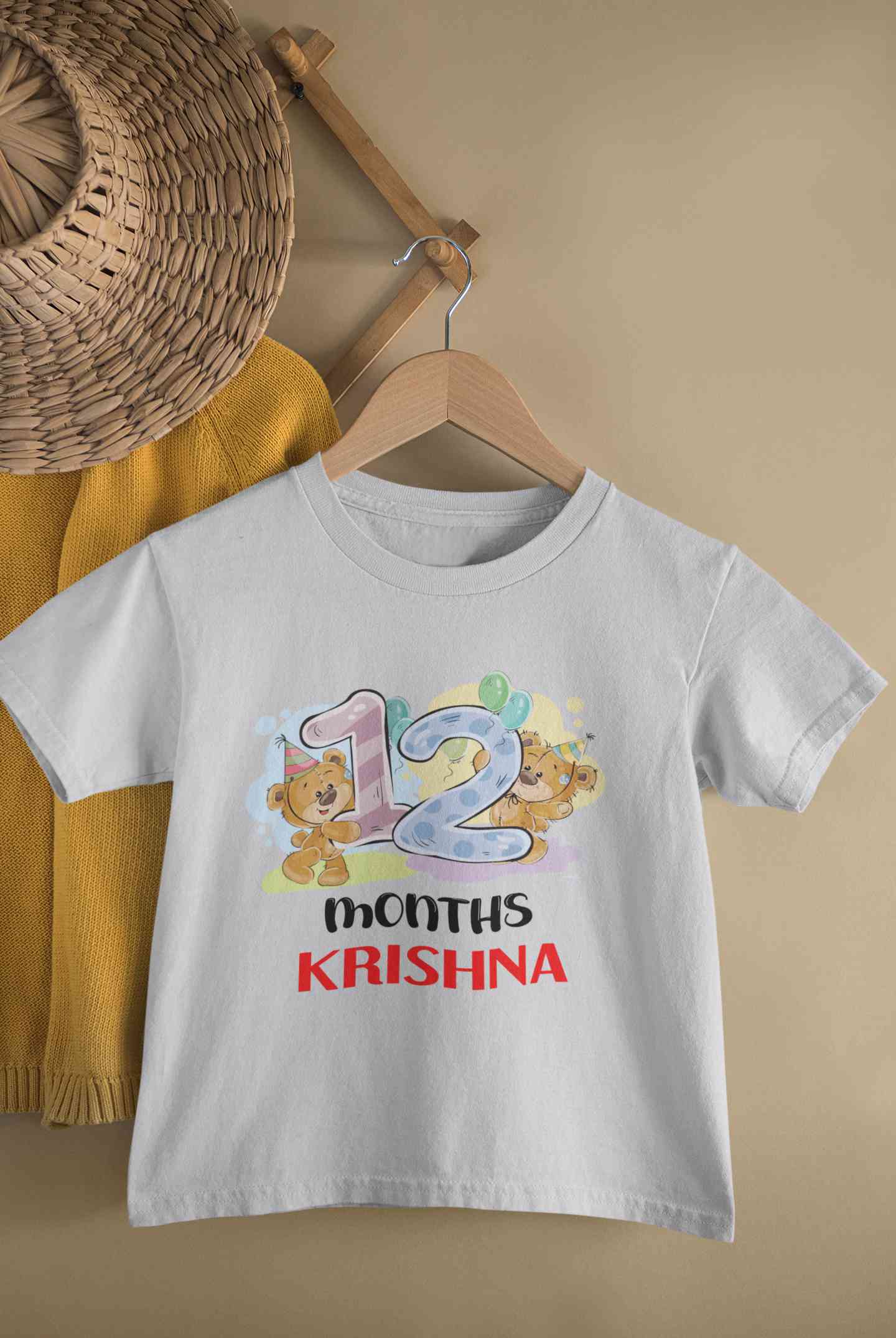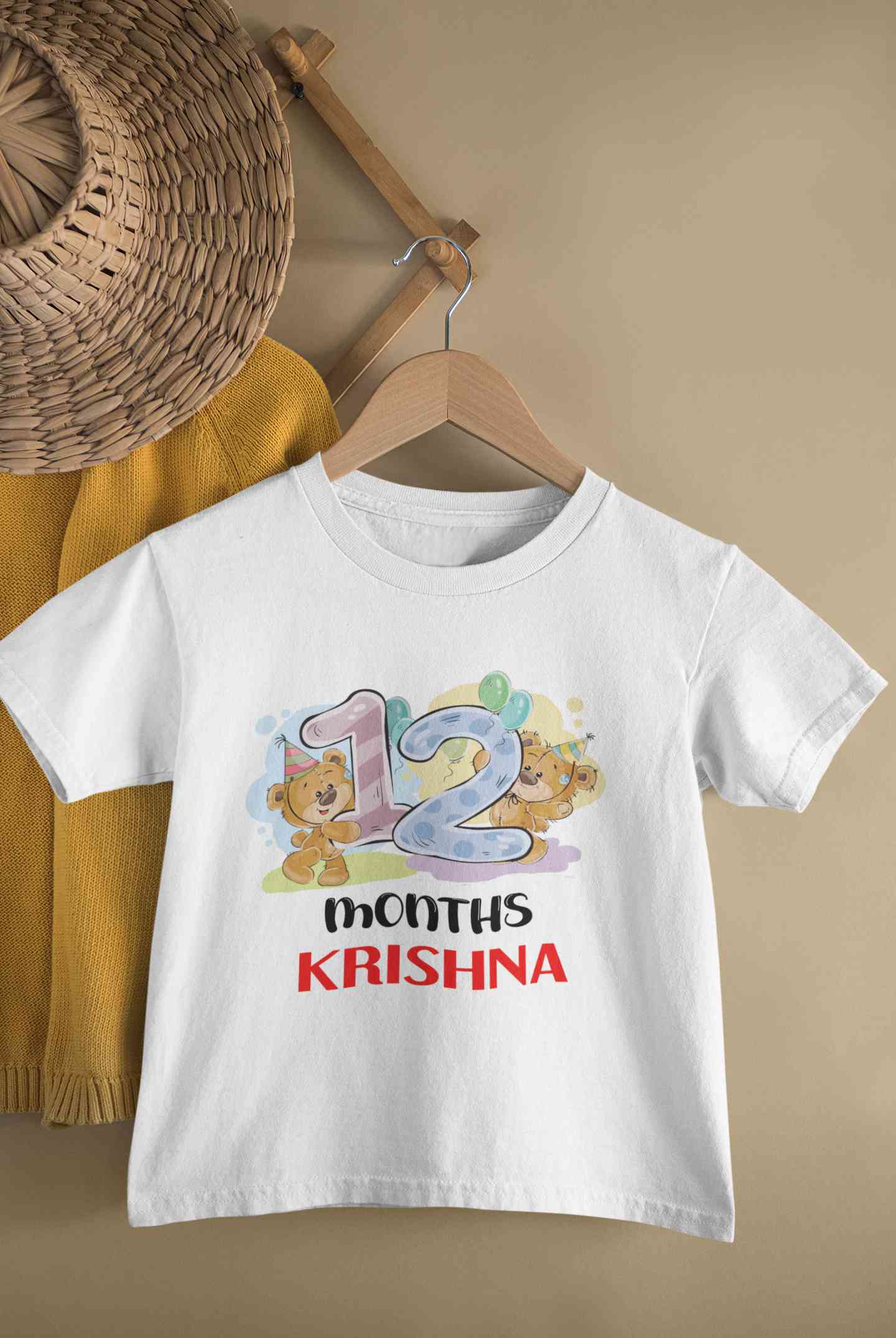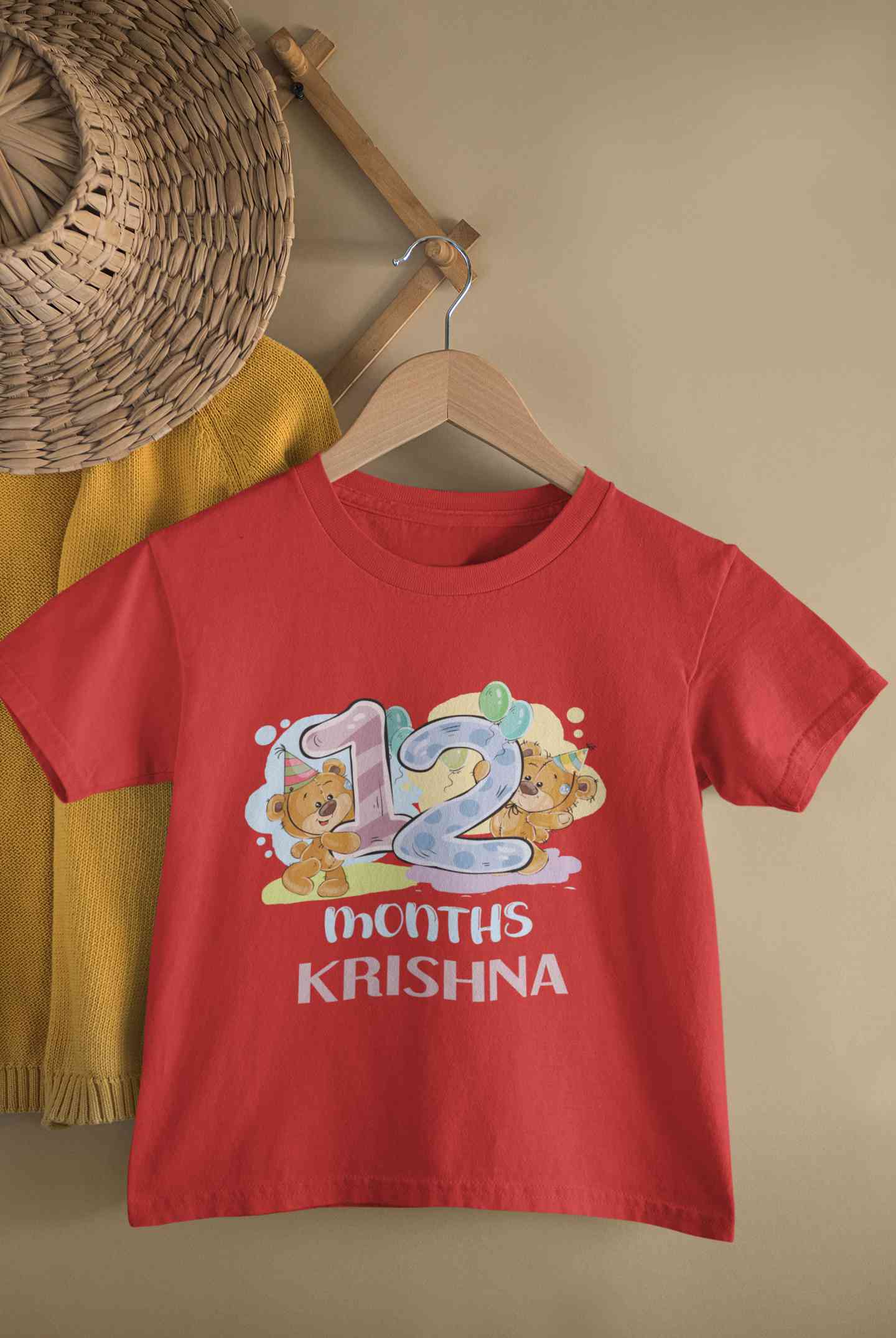 Custom Name 12 Month Birthday Teddy Design Half Sleeves T-Shirt for Boy-FashionRazor