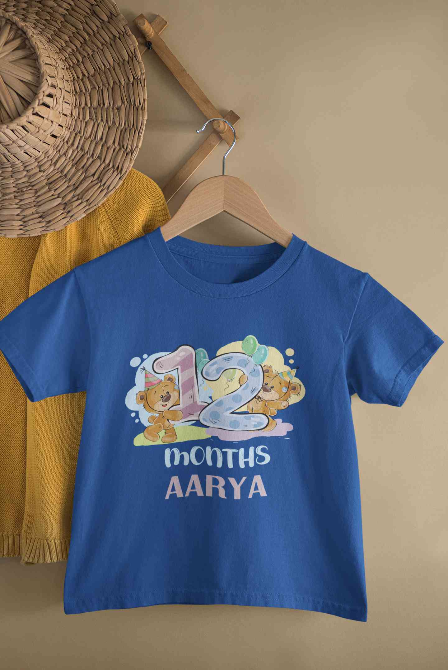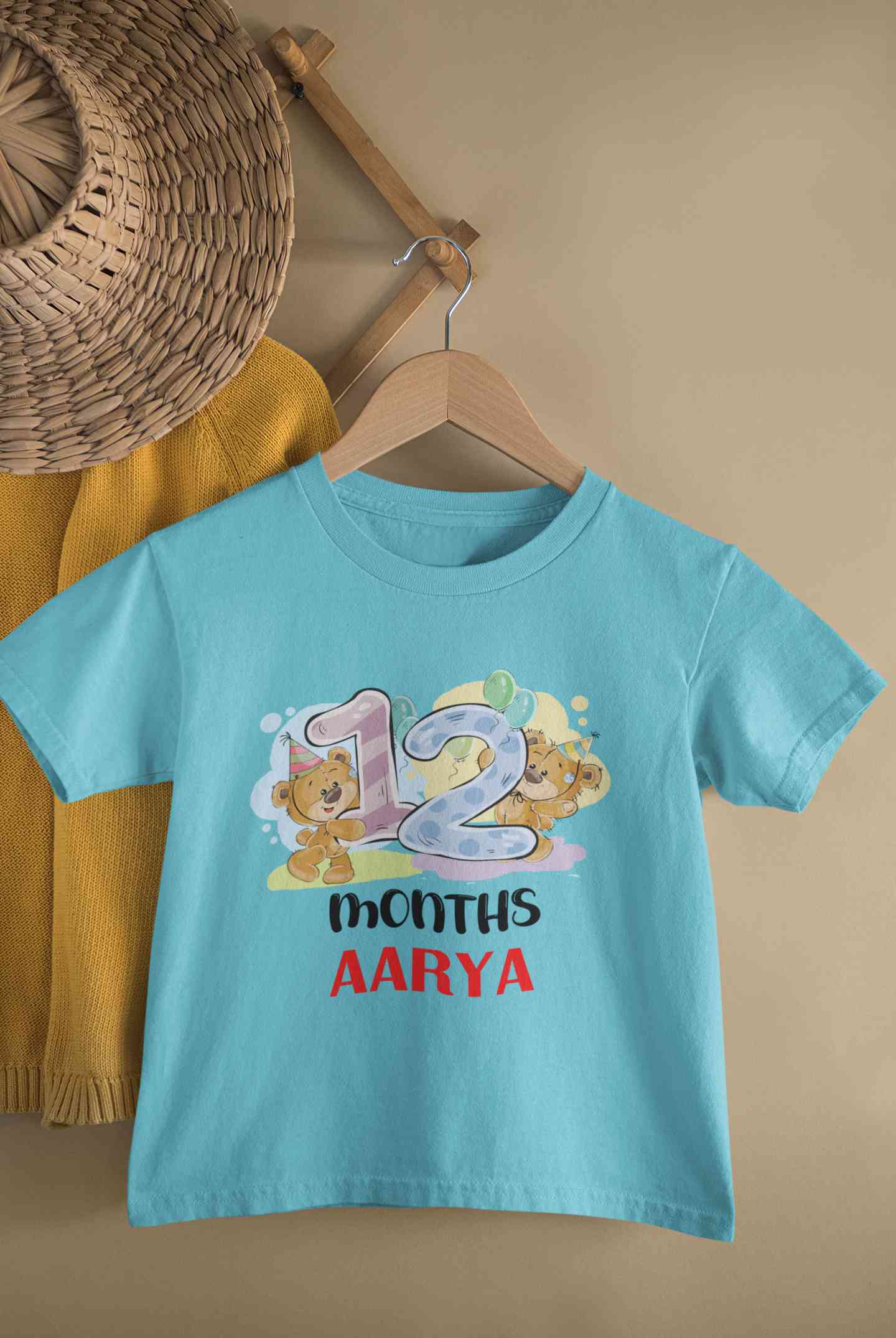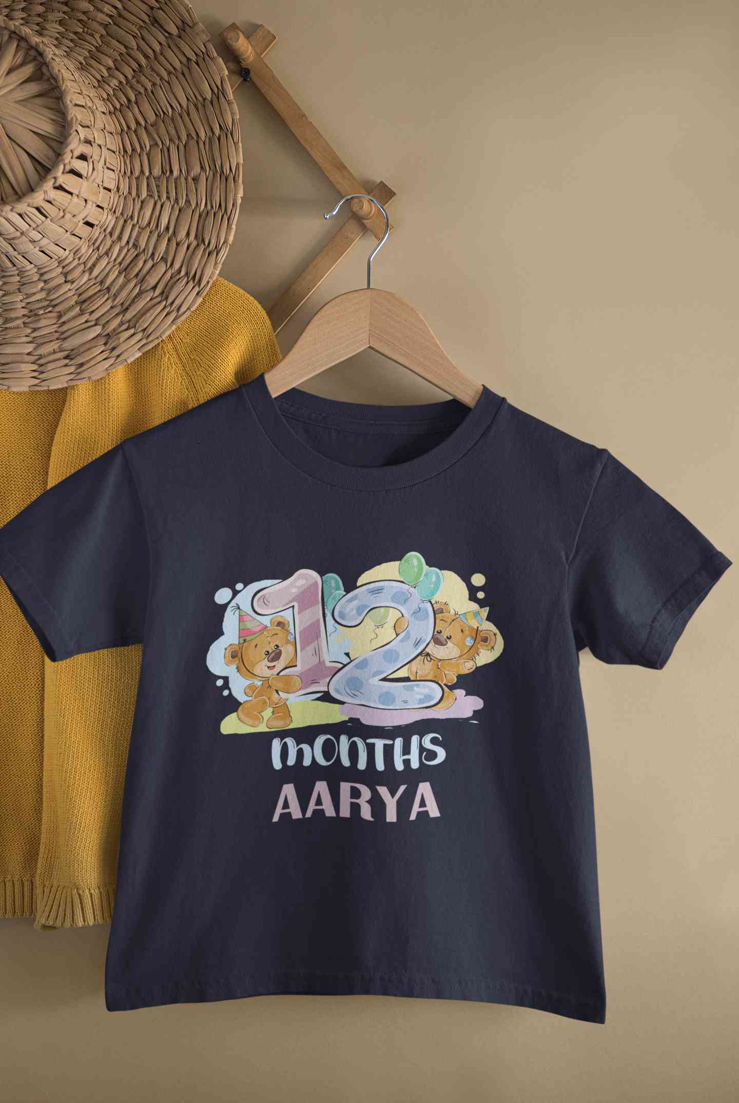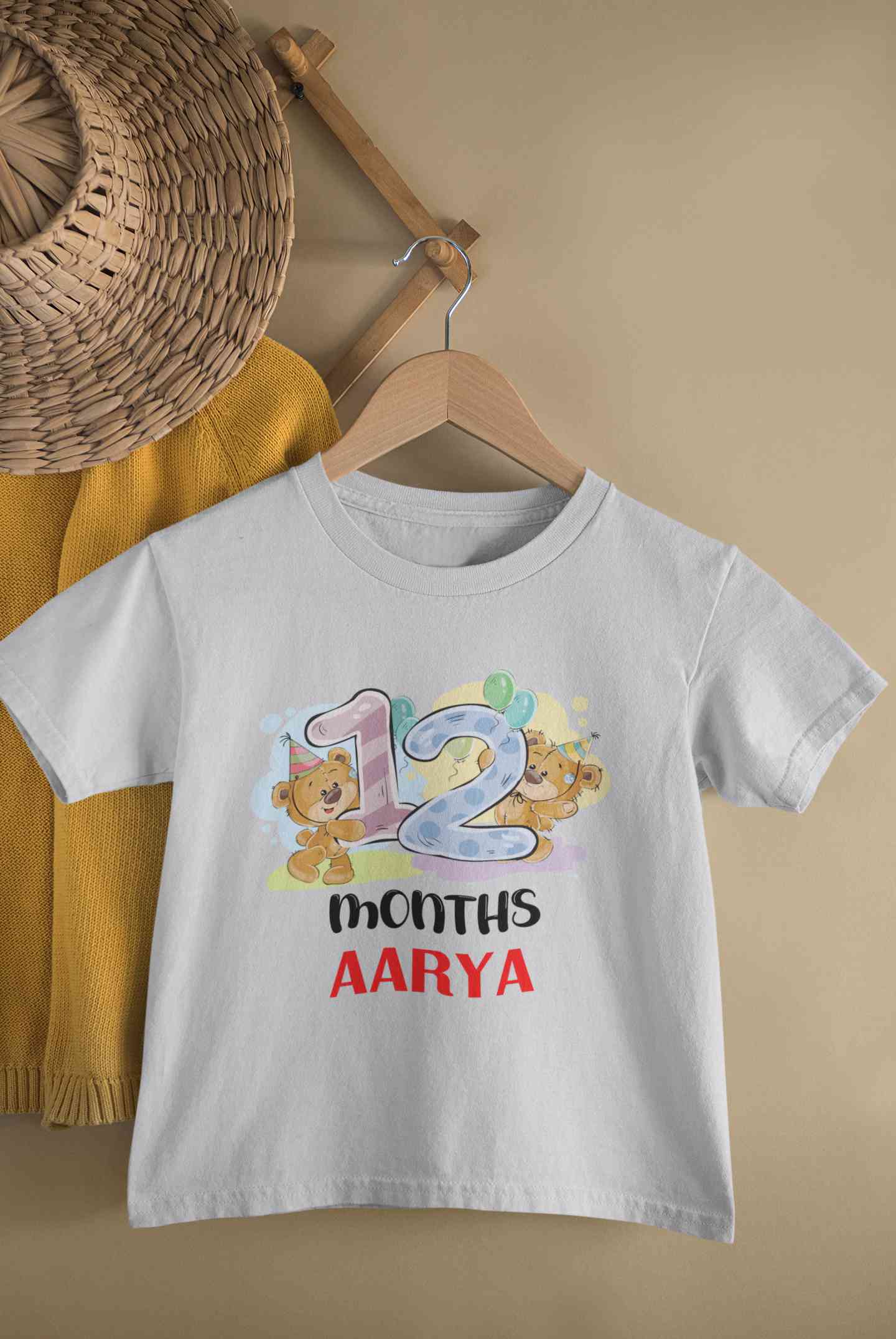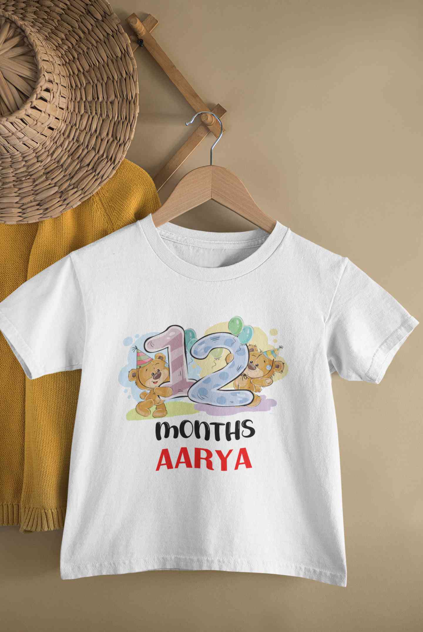 Custom Name 12 Month Birthday Teddy Design Half Sleeves T-Shirt For Girls -FashionRazor