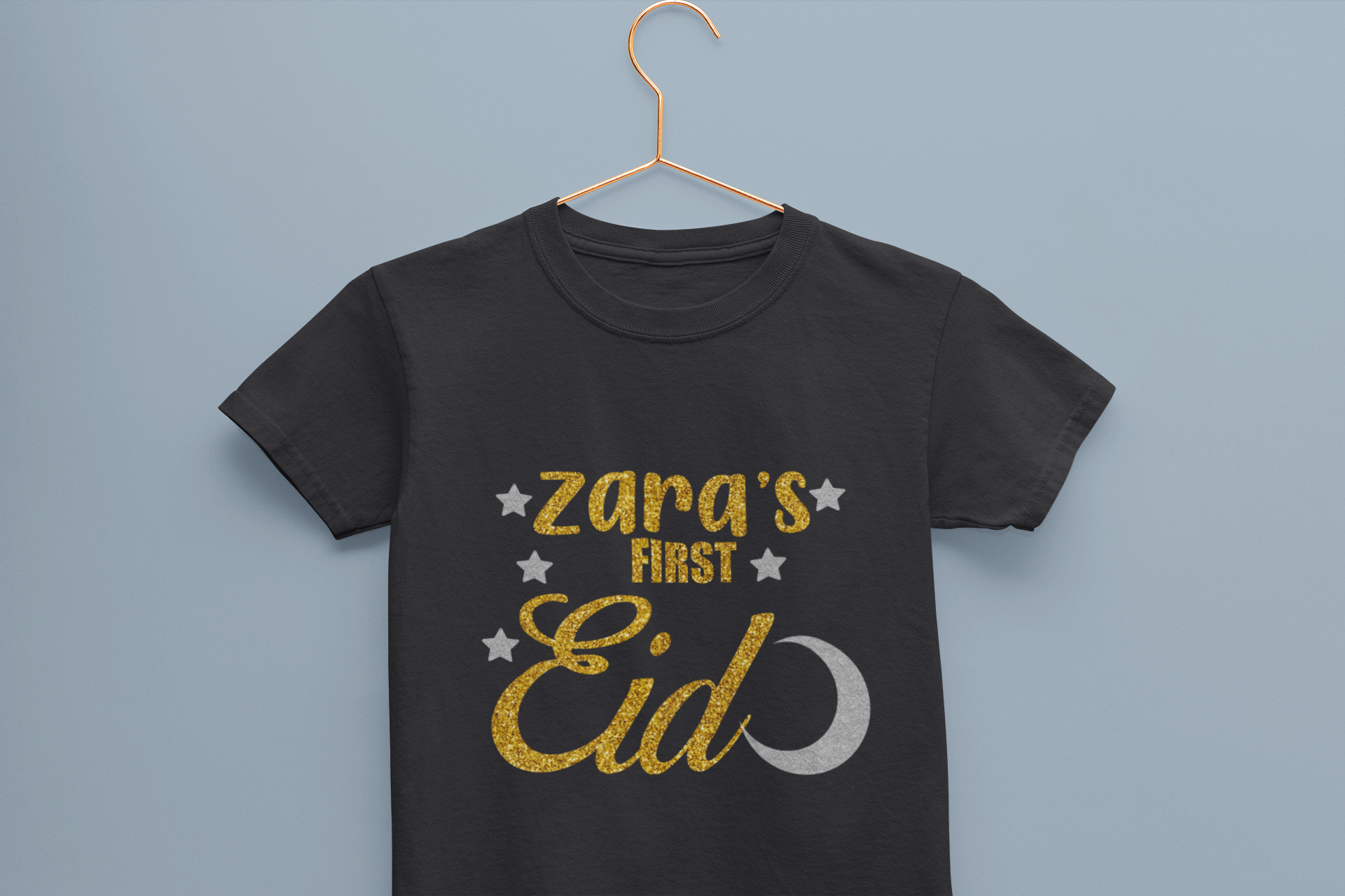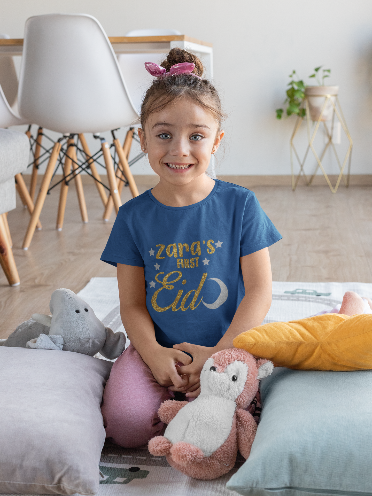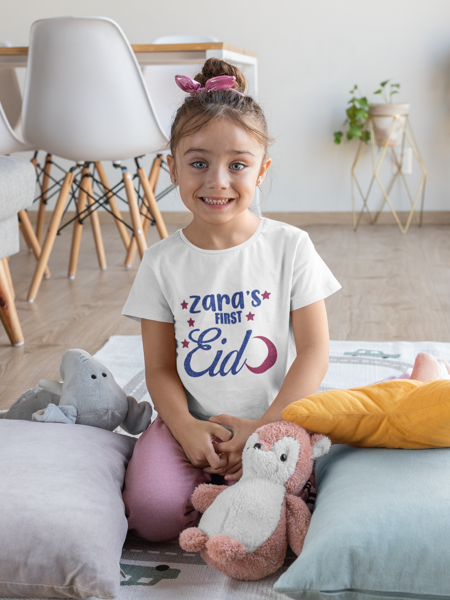 1st Eid Custom Name Half Sleeves T-Shirt For Girls -FashionRazor