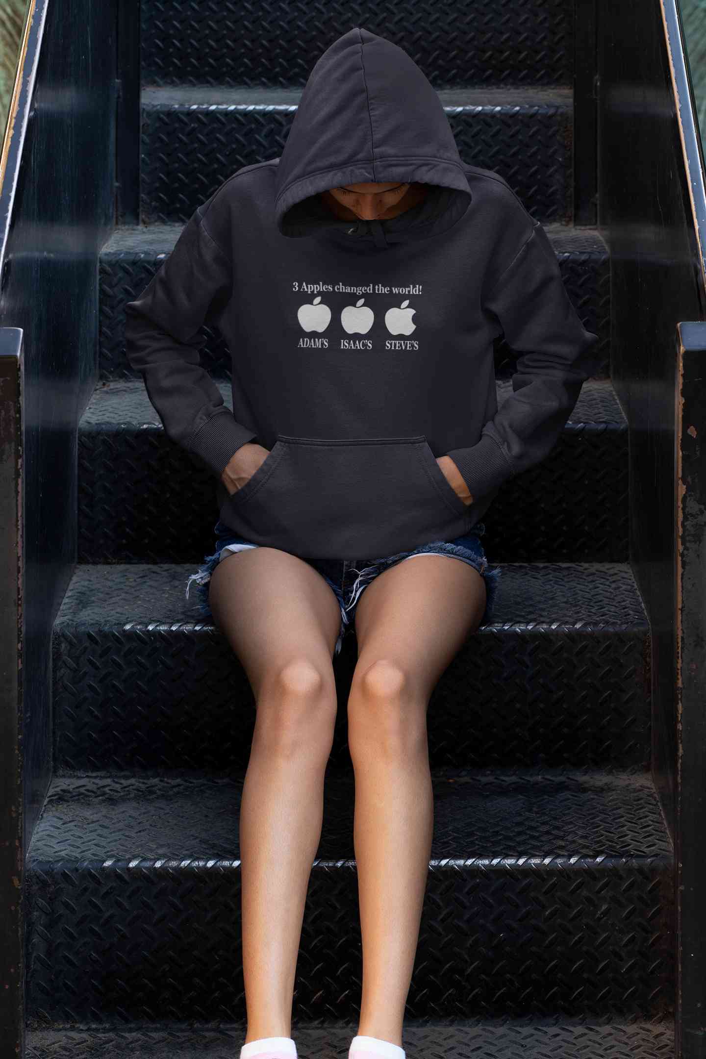 3 Apples Changed The World Typography Hoodies for Women-FashionRazor