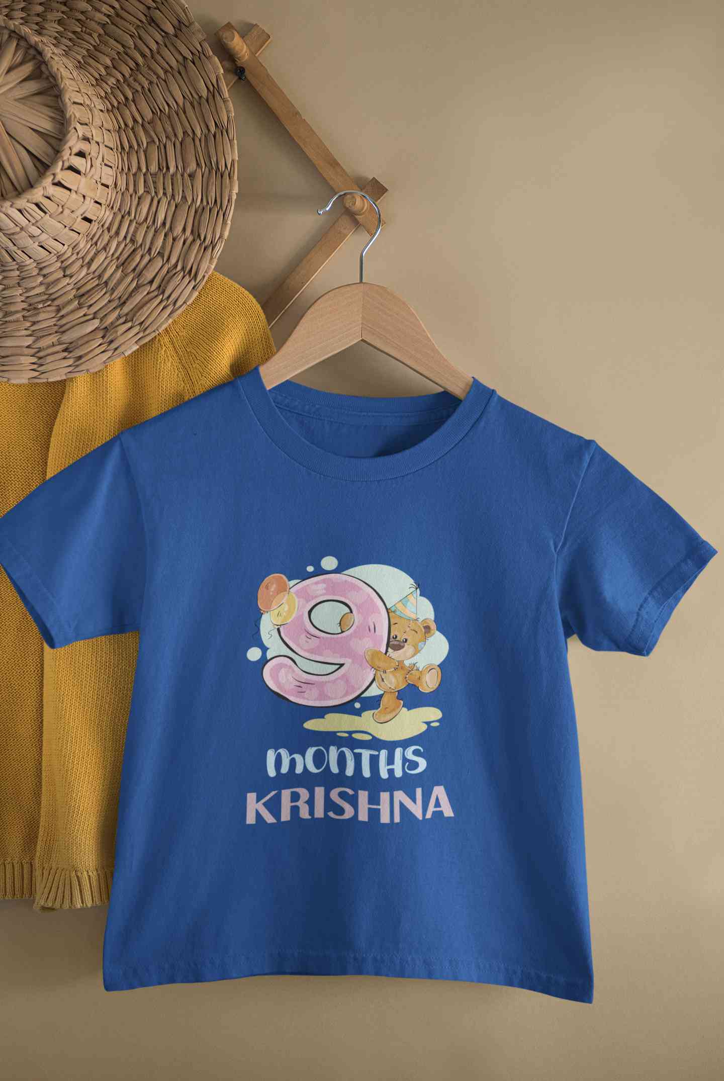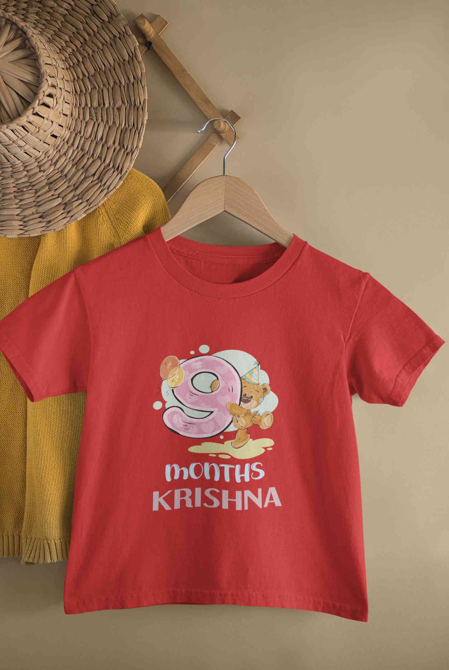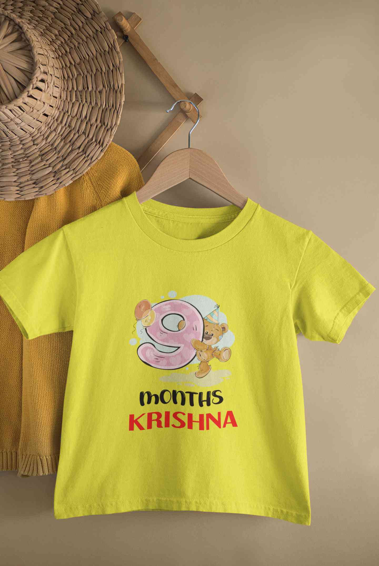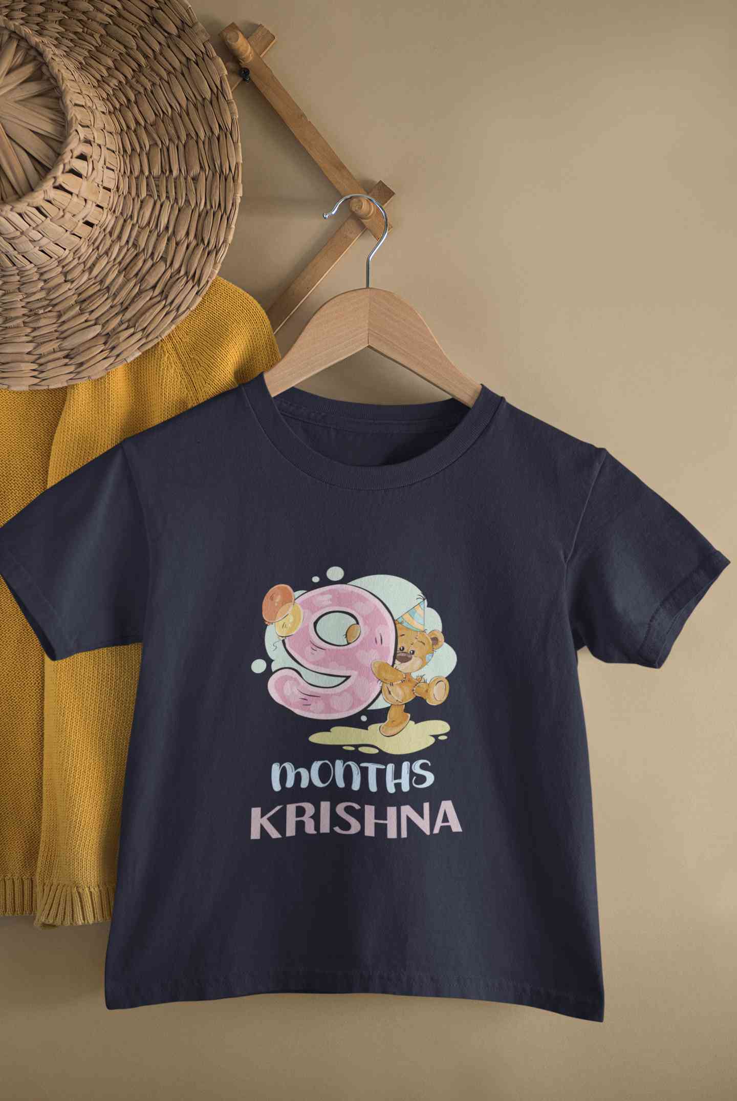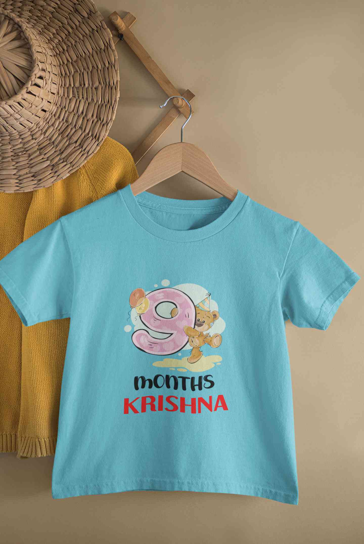 Custom Name 9 Month Birthday Teddy Design Half Sleeves T-Shirt for Boy-FashionRazor