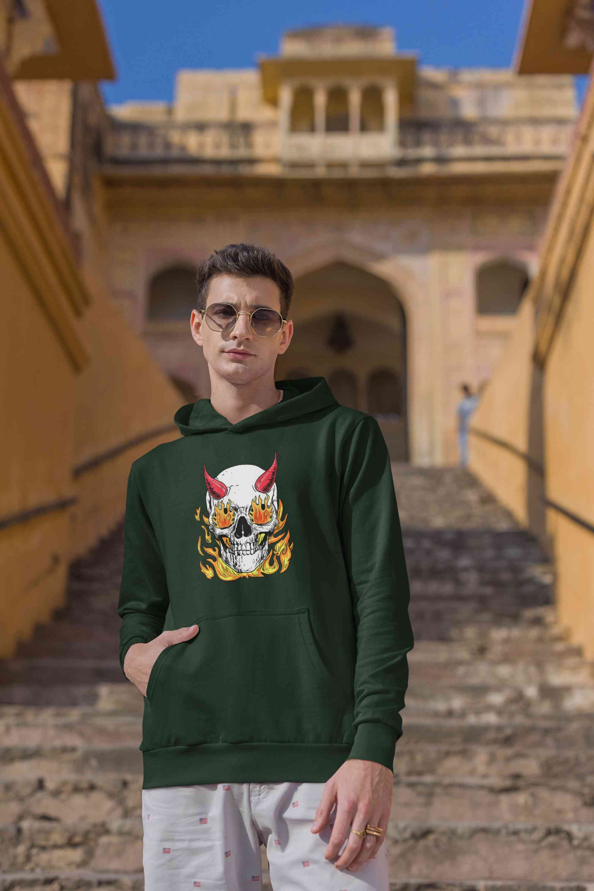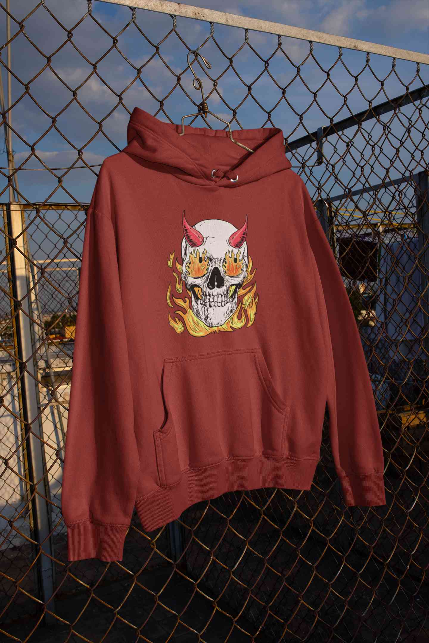 A Horned Skull In Flames Men Hoodies-FashionRazor
