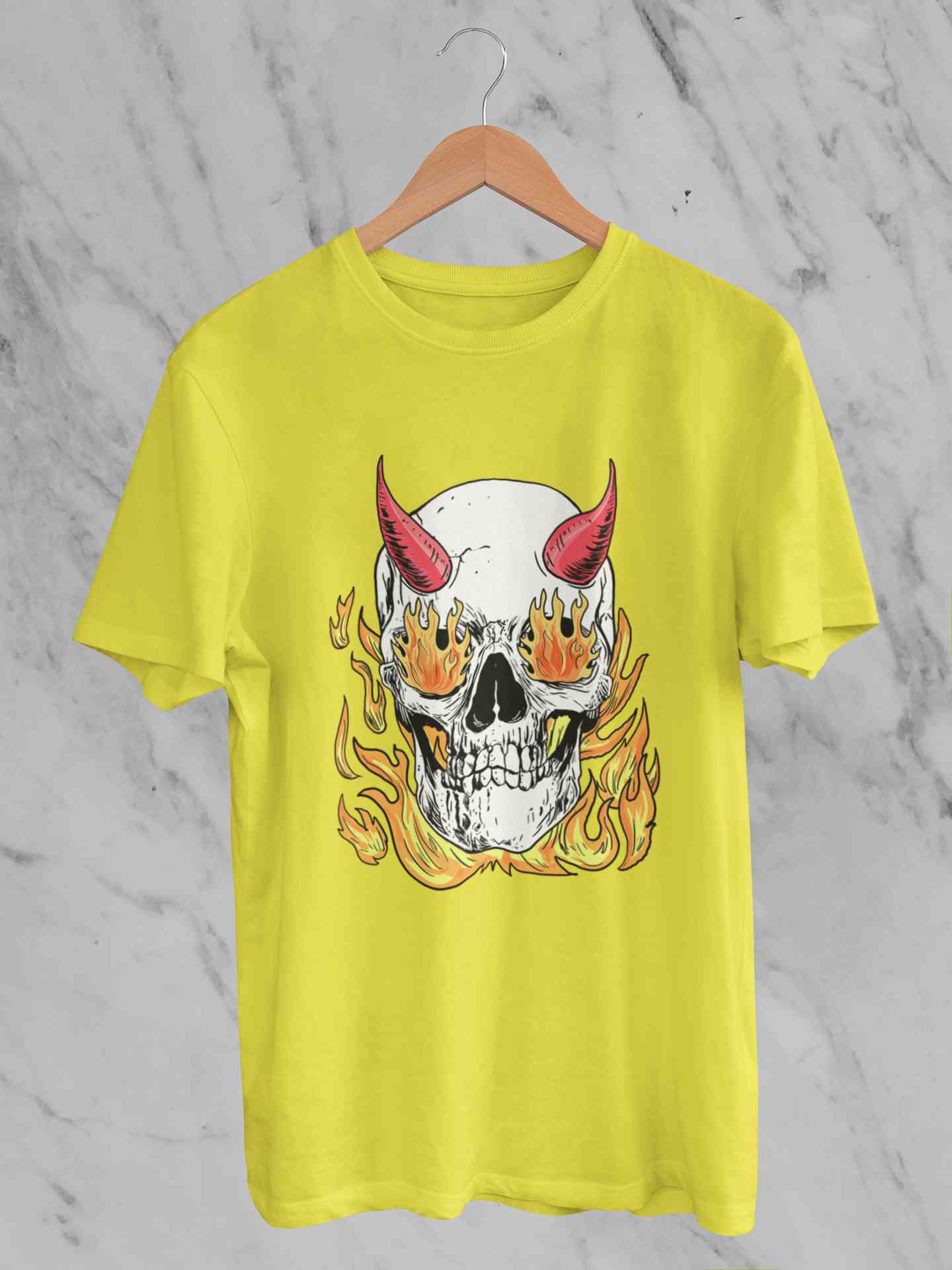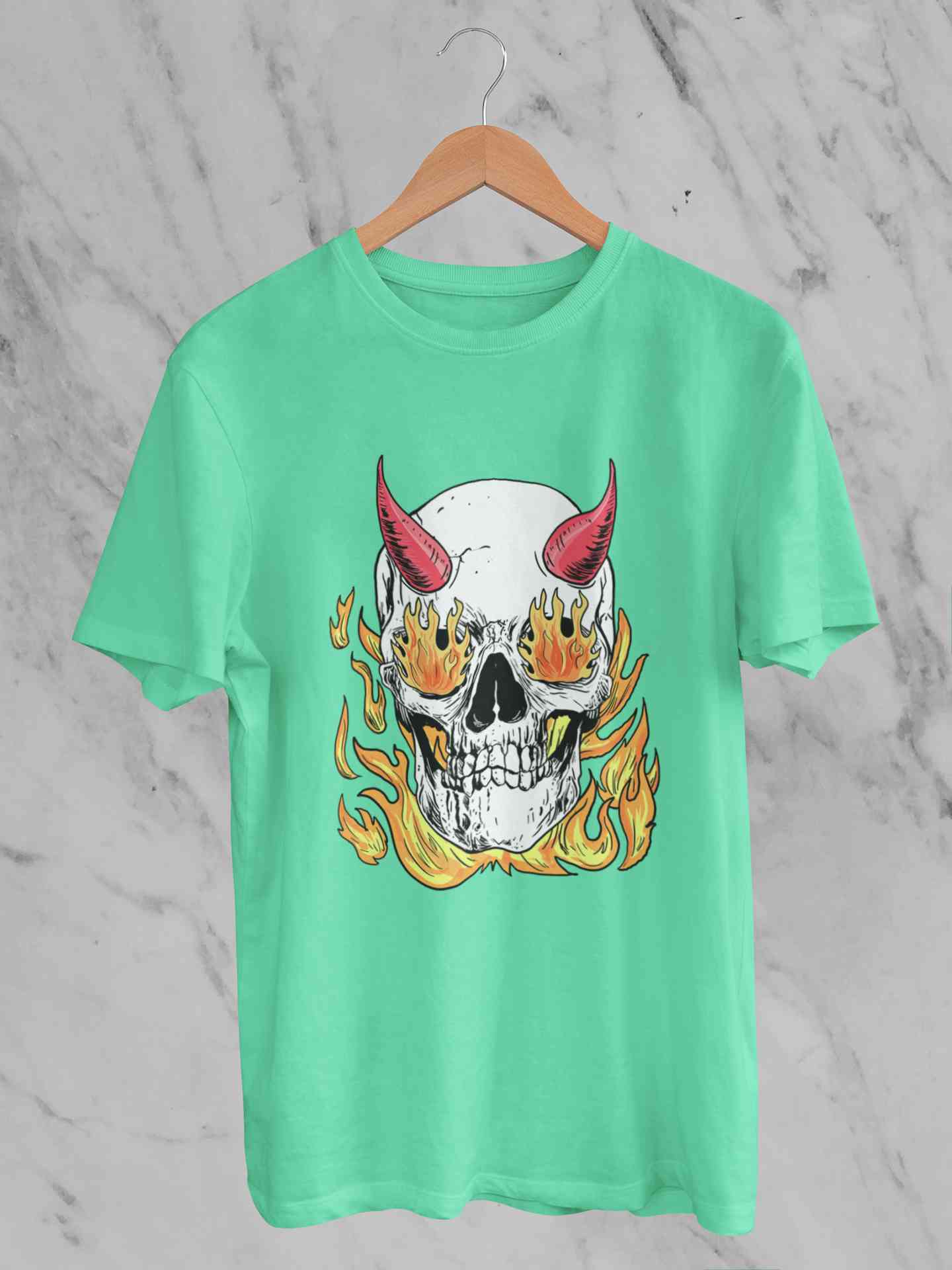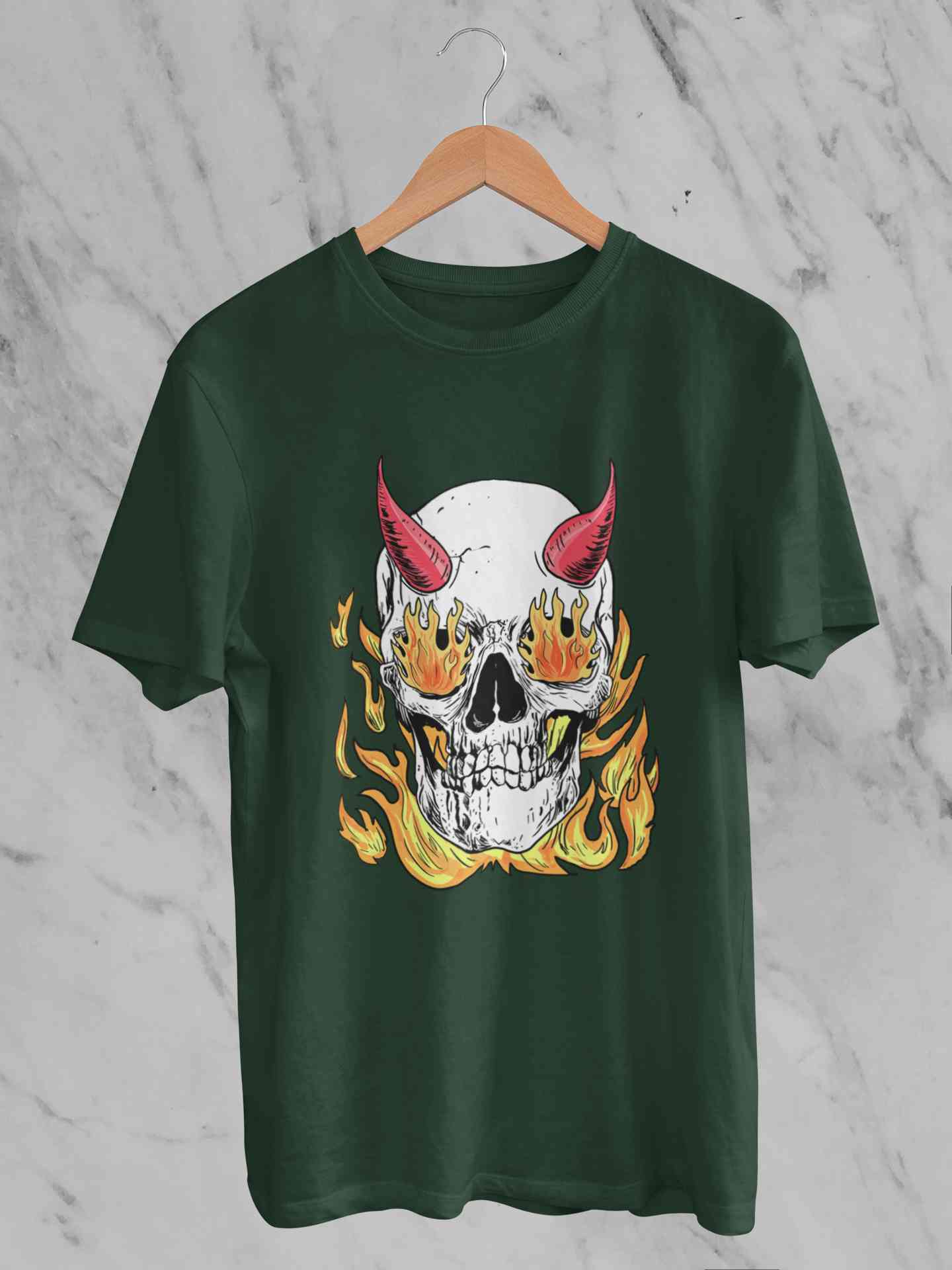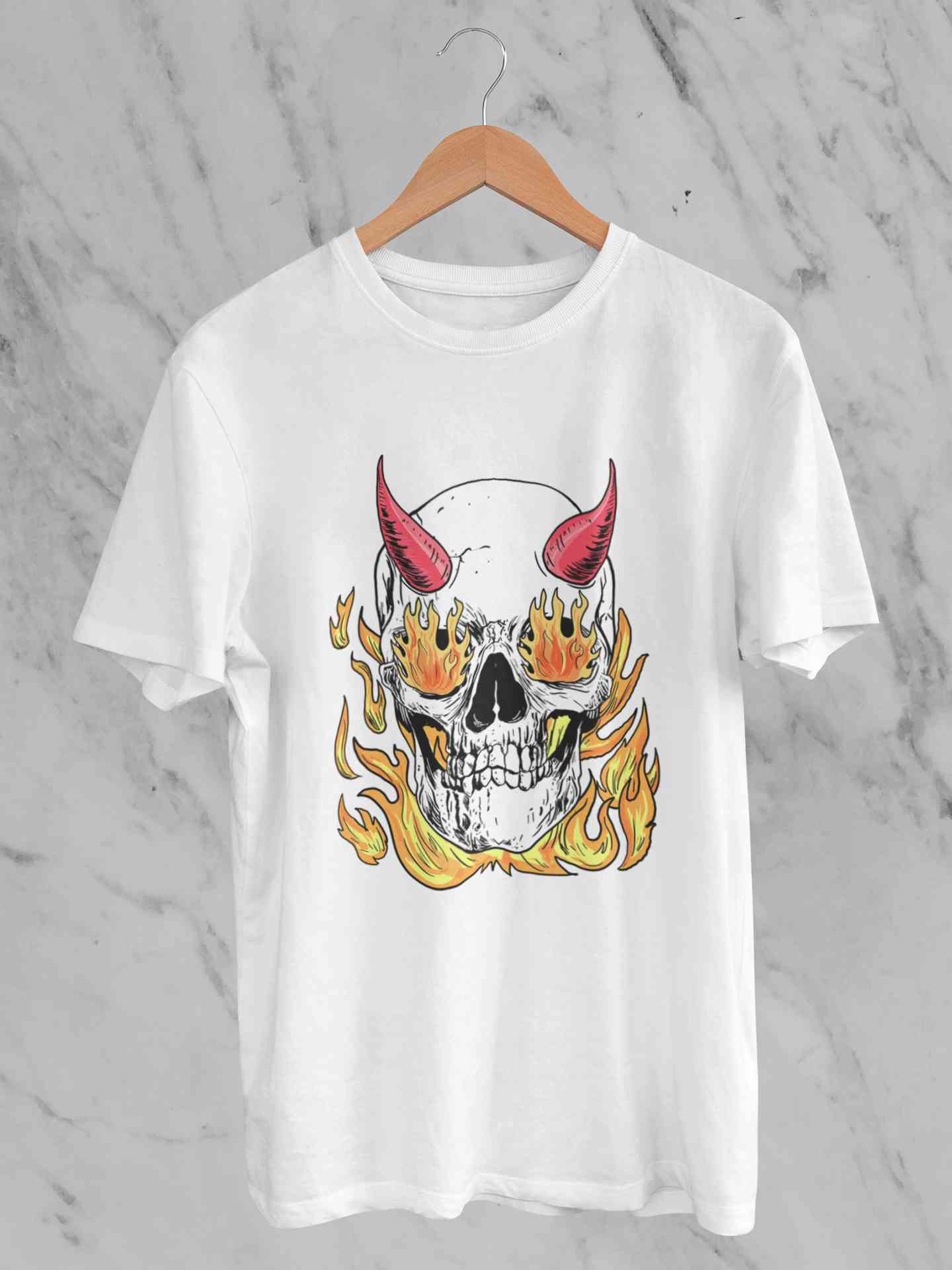 A Horned Skull In Flames Women Half Sleeves T-shirt- FashionRazor