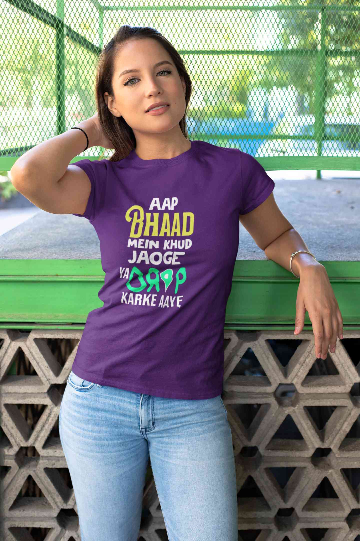 Aap Bhaad Mein Khud Jaoge Ya Drop Karke Ke Aaye Funny Dialogue Women Half Sleeves T-shirt- FashionRazor