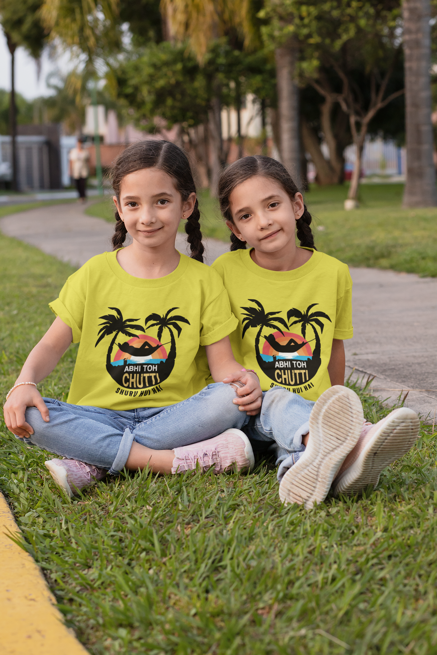 Abhi Toh Chutti Suru Hui Hai Matching Sister-Sister Kids Half Sleeves T-Shirts -FashionRazor