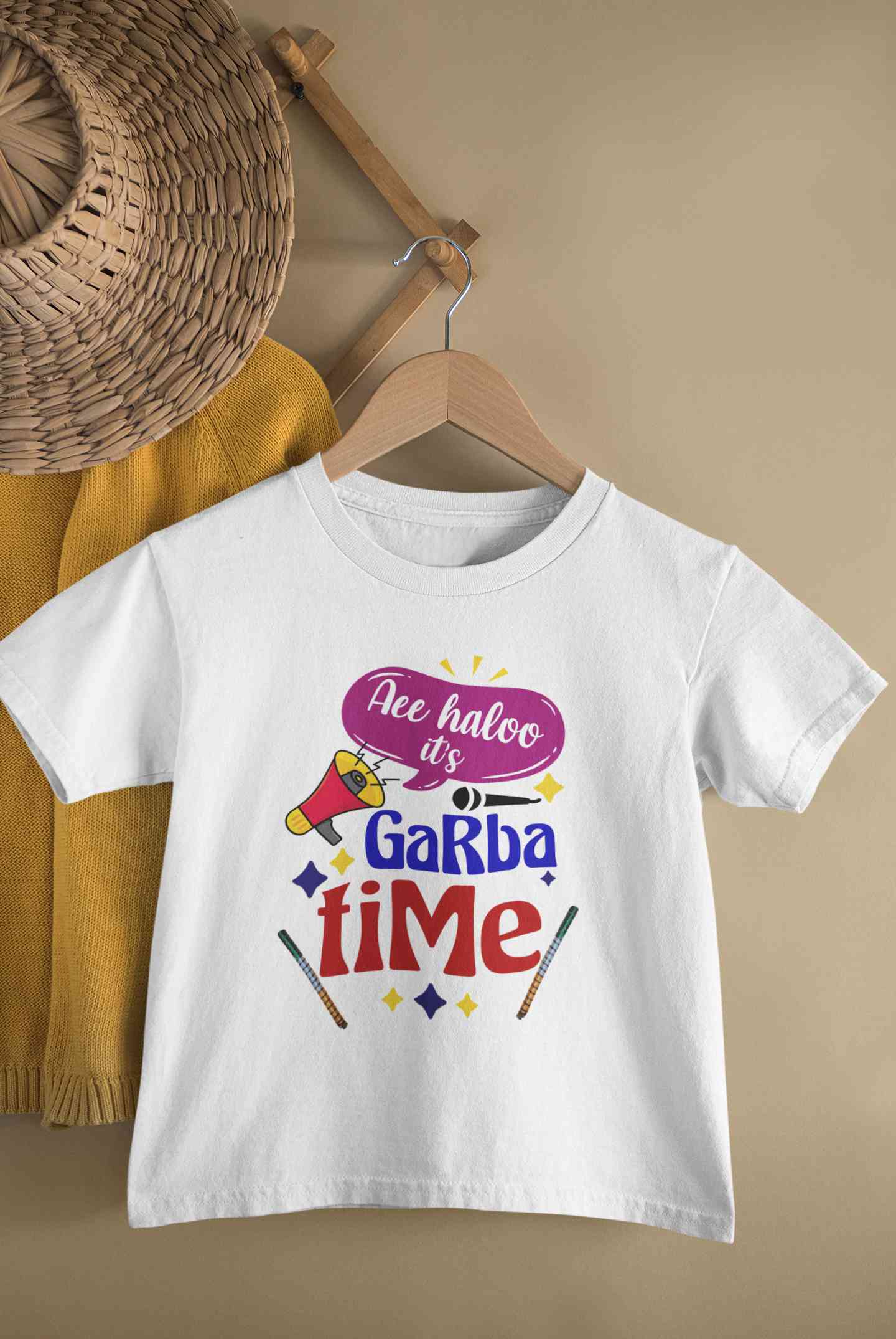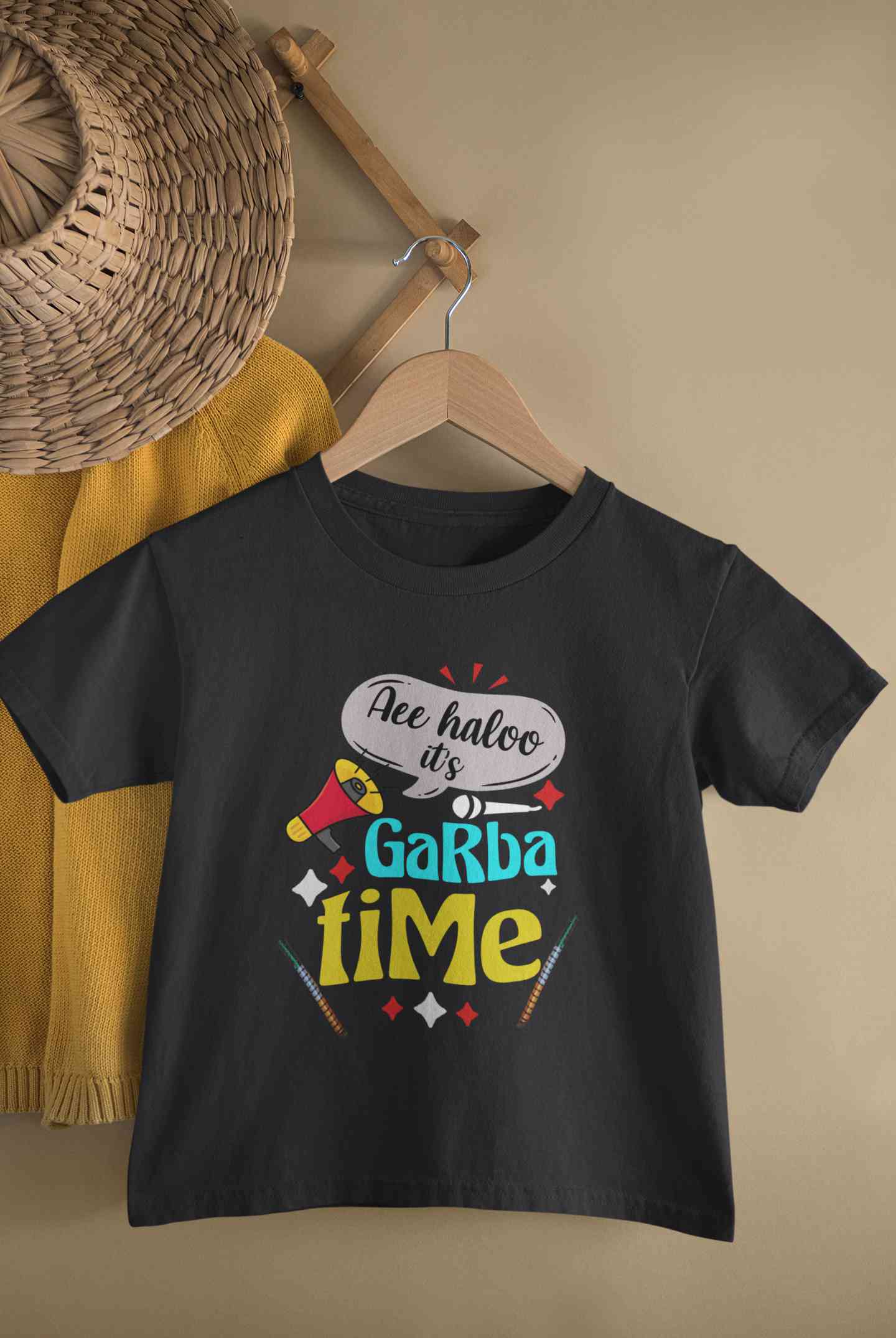 Ae Haloo Its Garba Time Navratri Half Sleeves T-Shirt For Girls -FashionRazor