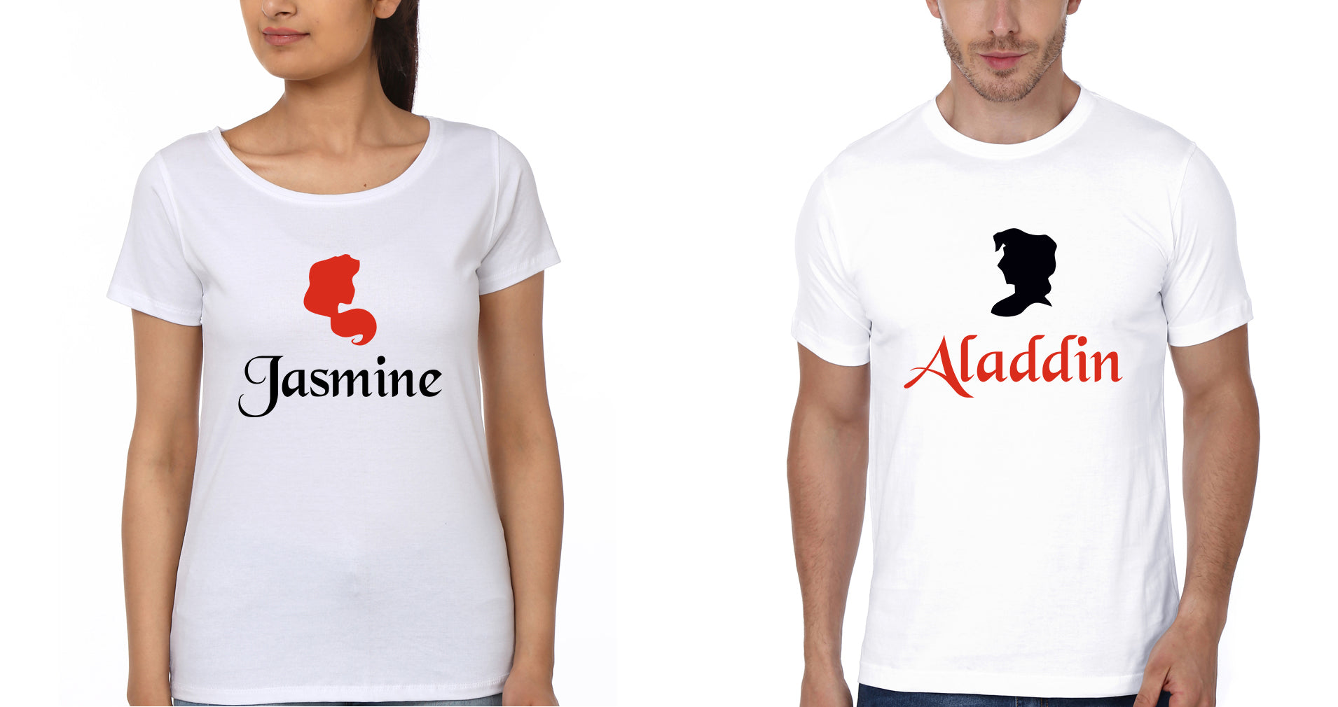 Aladdin And Jasmine Couple Half Sleeves T-Shirts -FashionRazor