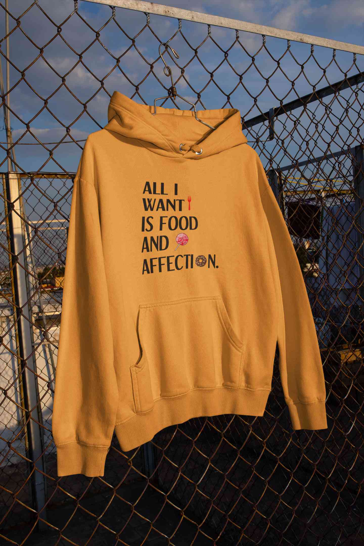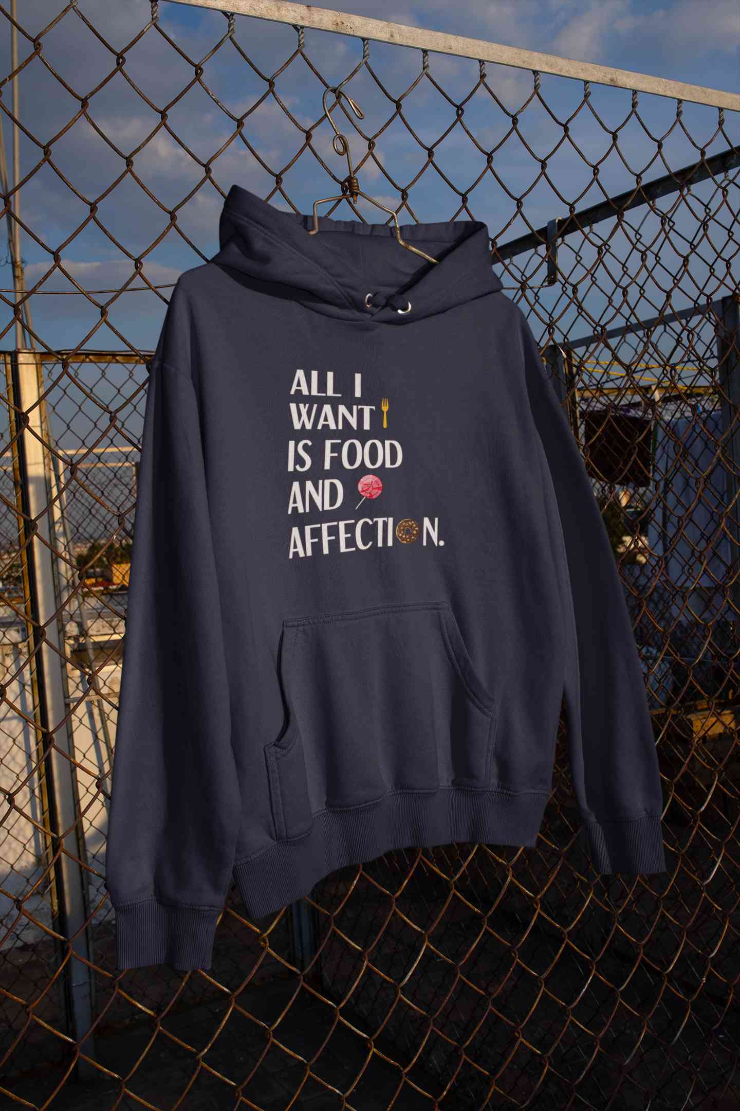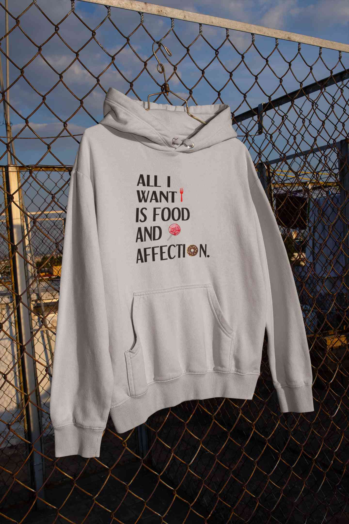 All I Want Is Food And Affection Typography Hoodies for Women-FashionRazor