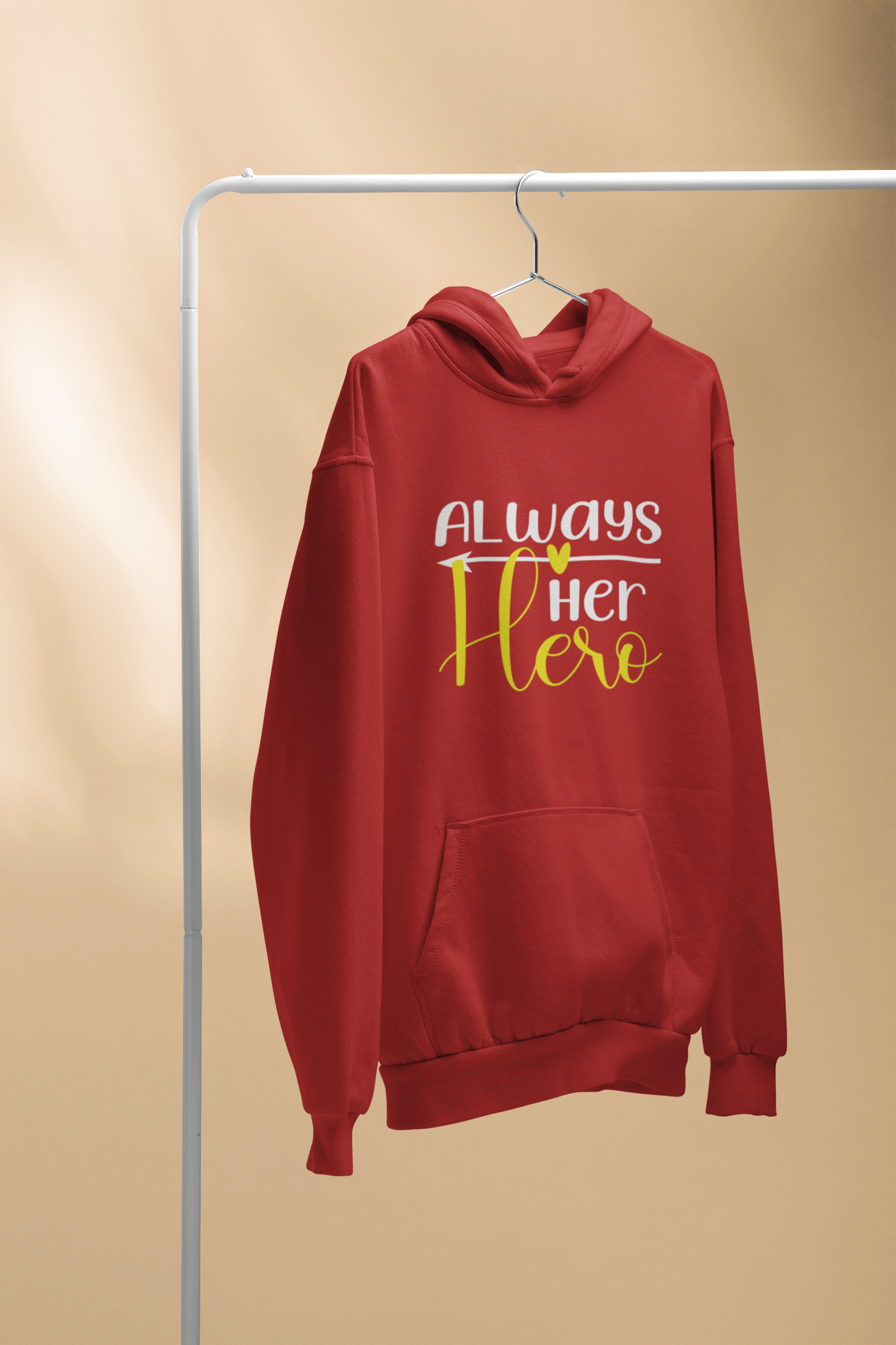 Always Her Hero Father and Daughter Red Matching Hoodies- FashionRazor