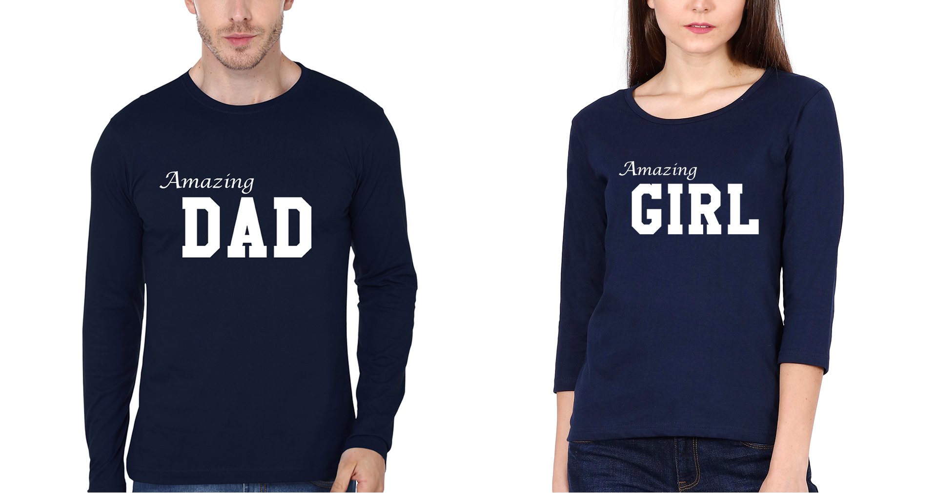 Amazing Dad Amazing Girl Father and Daughter Matching Full Sleeves T-Shirt- FashionRazor