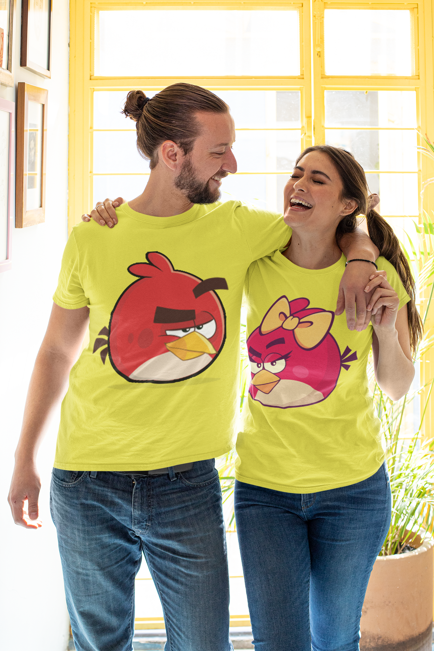 Angry Bird Couple Half Sleeves T-Shirts -FashionRazor