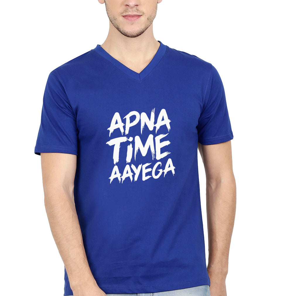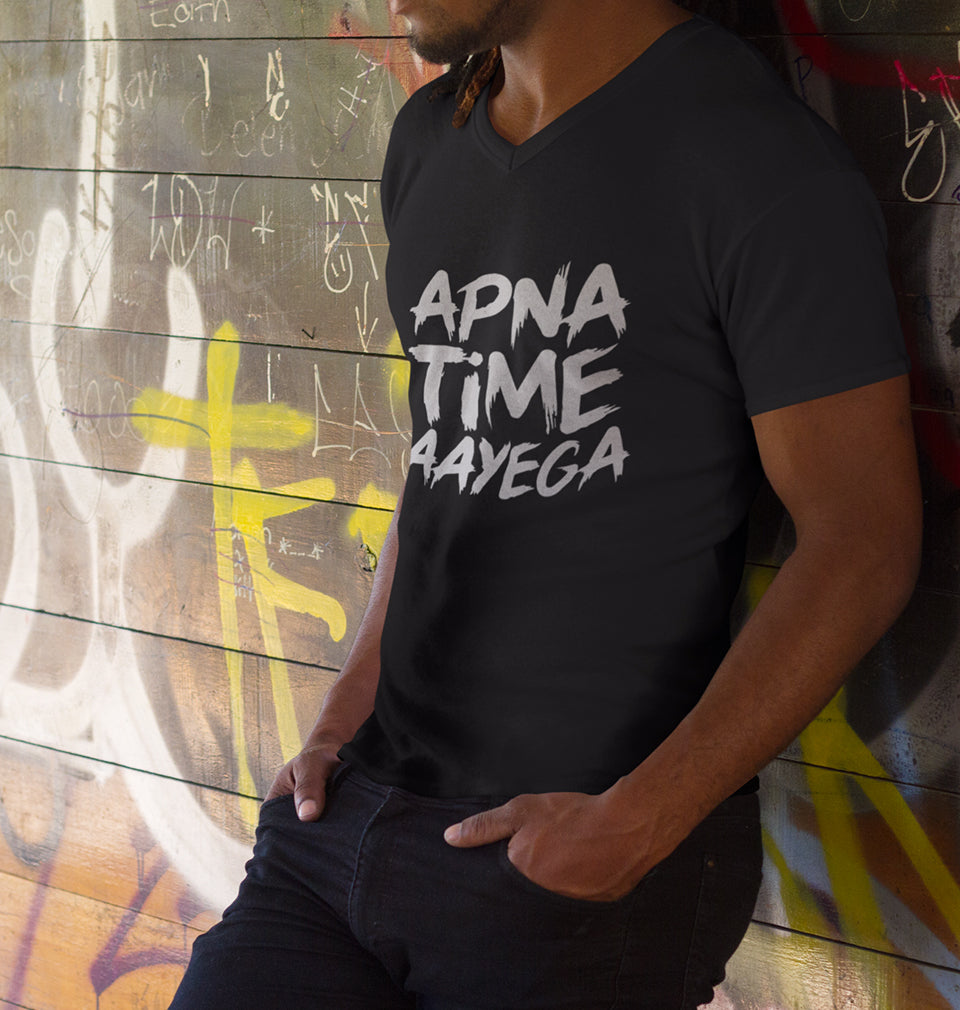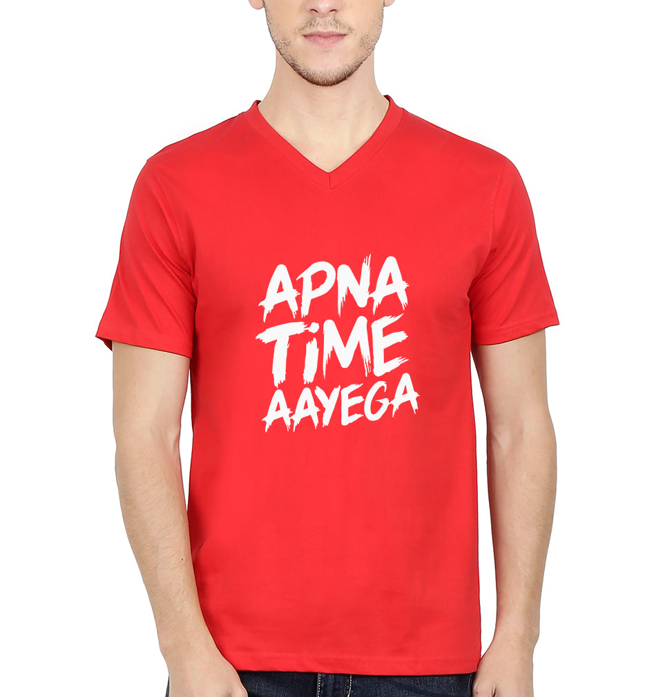 Apna Time Aayega Men V Neck Half Sleeves T-Shirts-FashionRazor