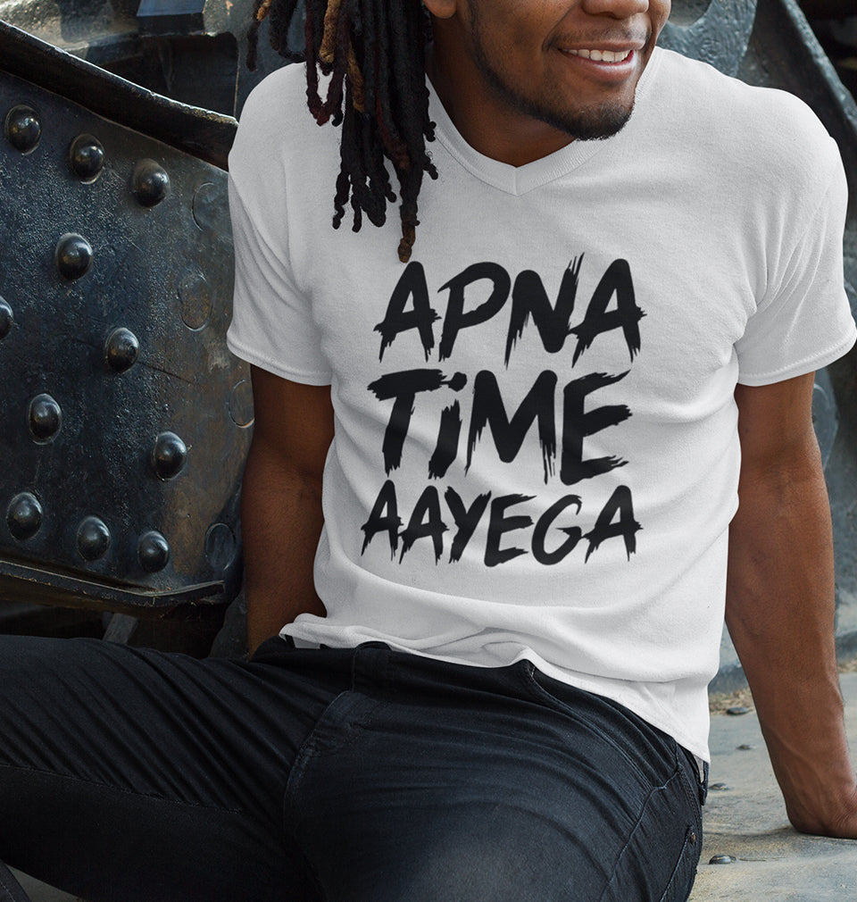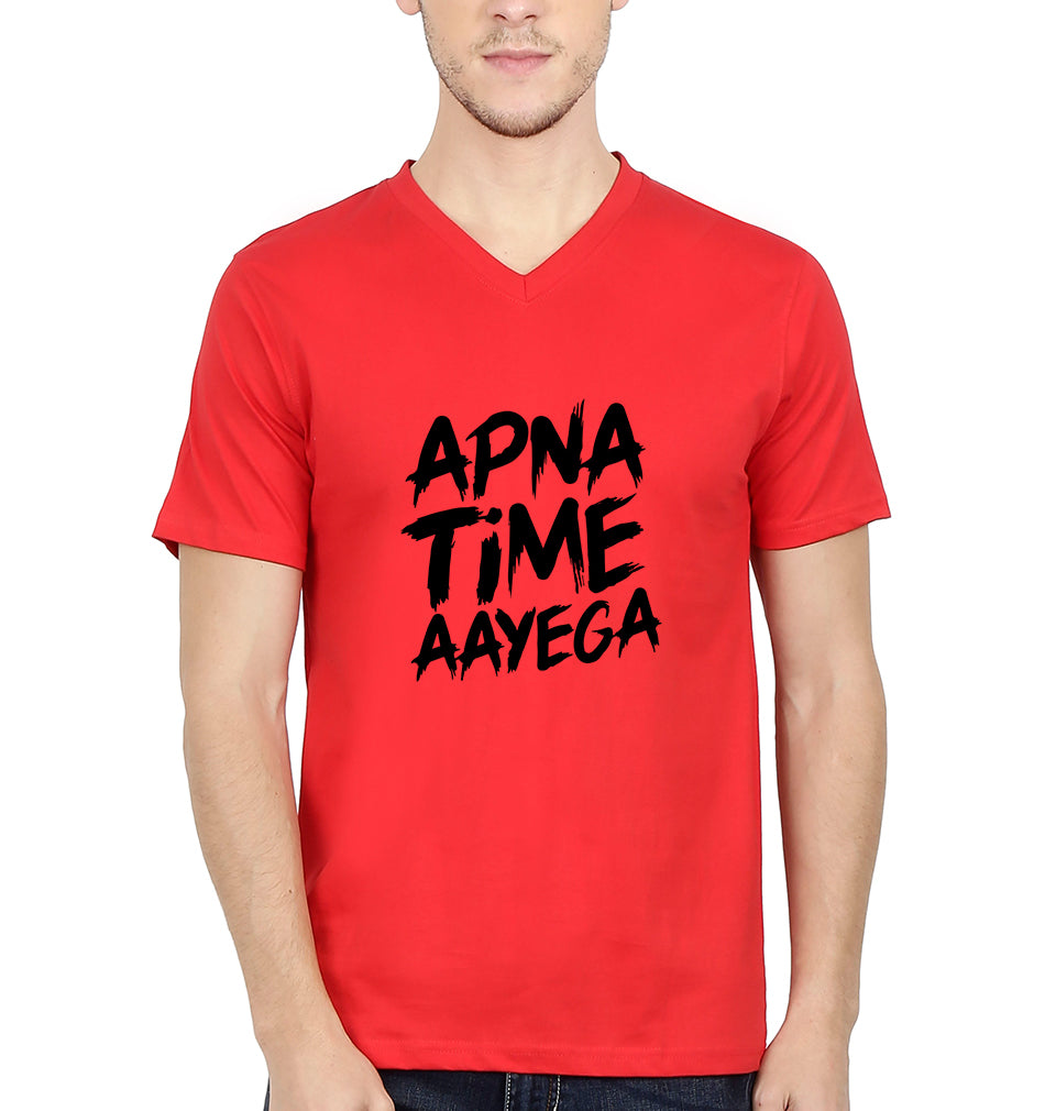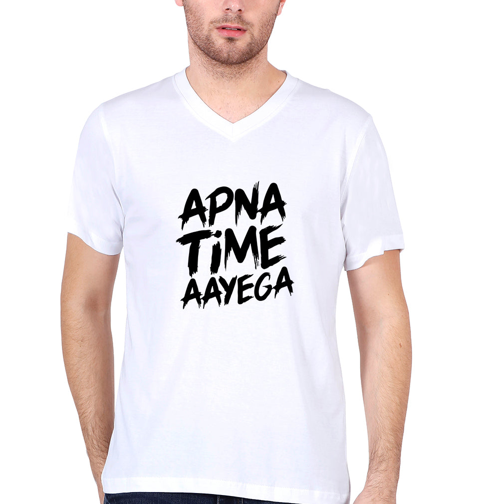 Apna Time Aayega Men V Neck Half Sleeves T-Shirts-FashionRazor