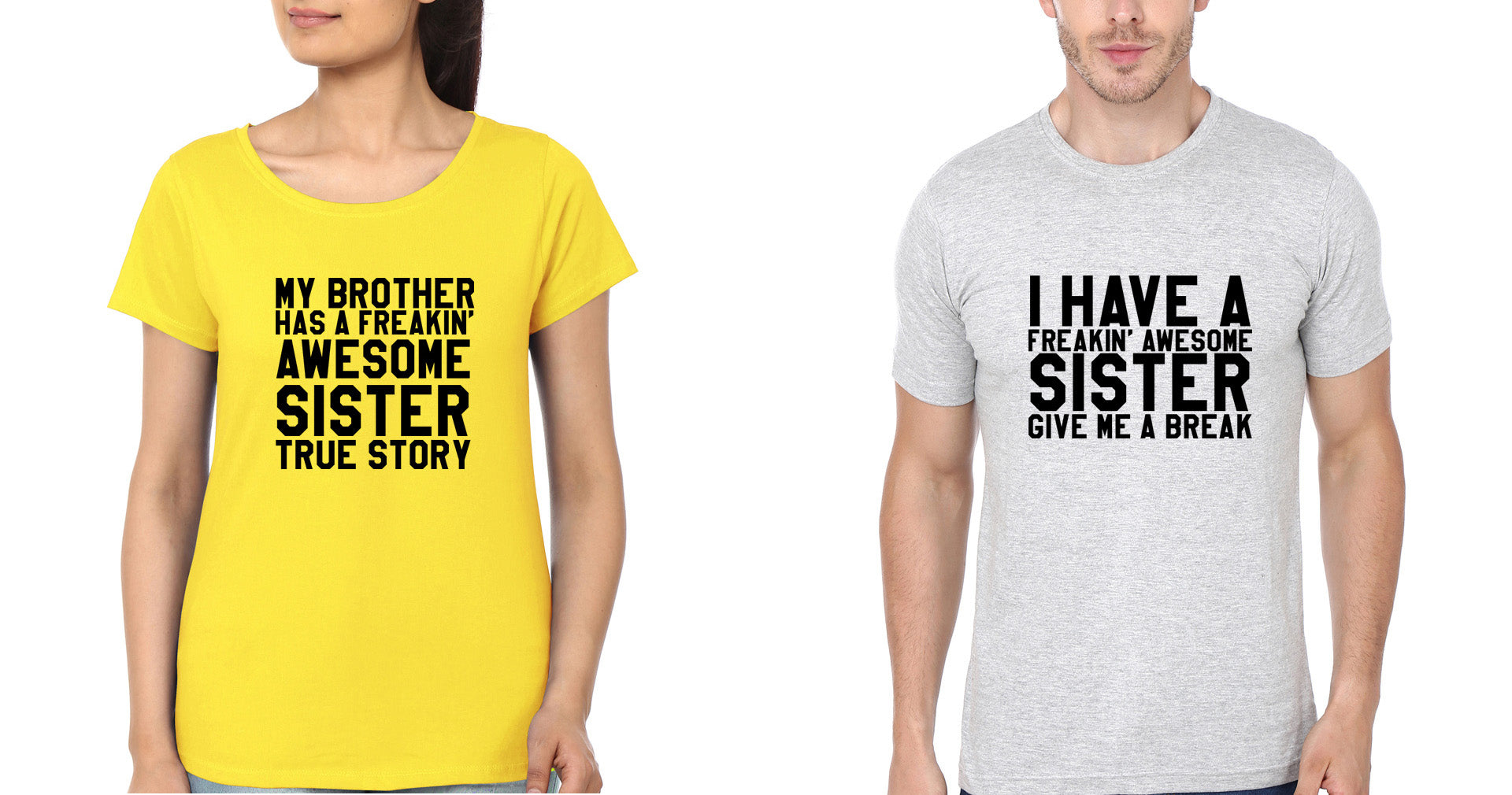 AWESOME SISTER Brother-Sister Half Sleeves T-Shirts -FashionRazor