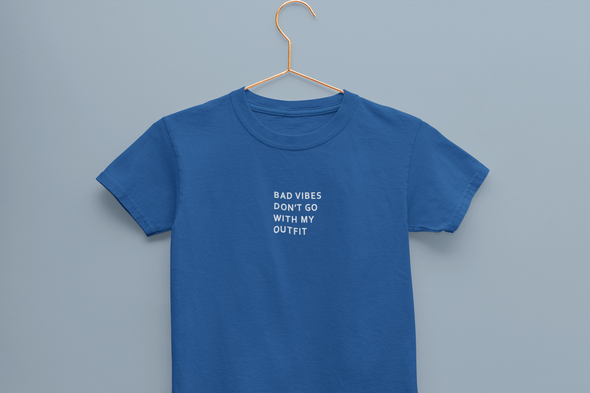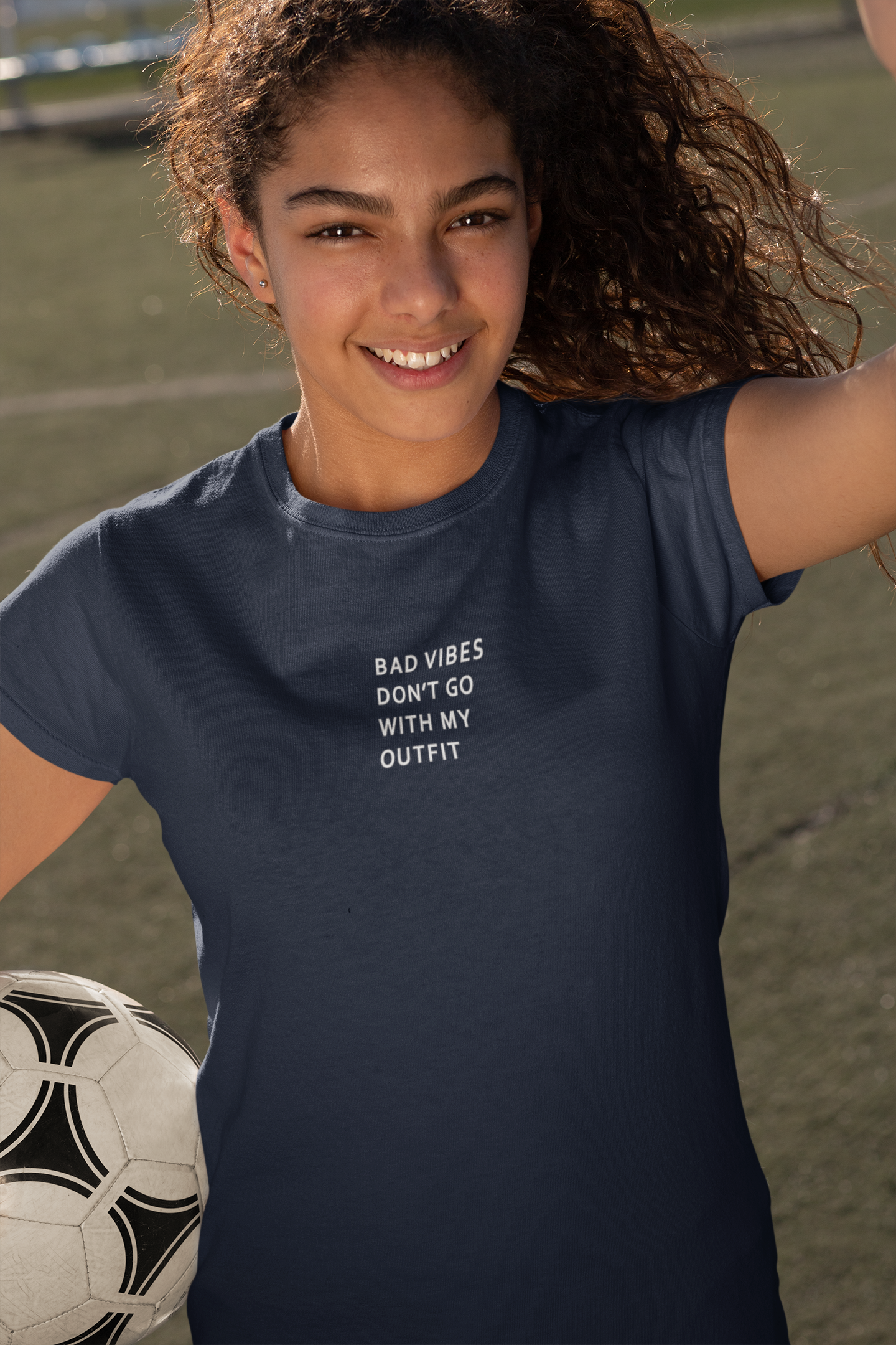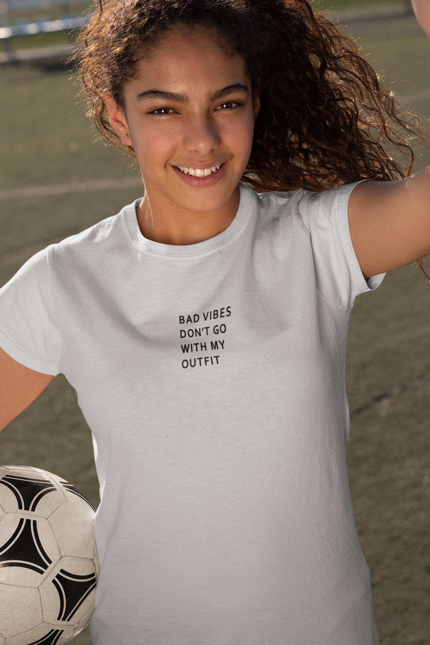 Bad Vibes Minimals Half Sleeves T-Shirt For Girls -FashionRazor