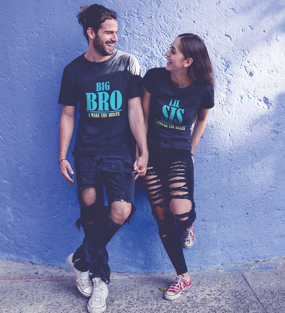 Big Bro Make The Rules Lil Sis Break The Rules Brother-Sister Half Sleeves T-Shirts -FashionRazor