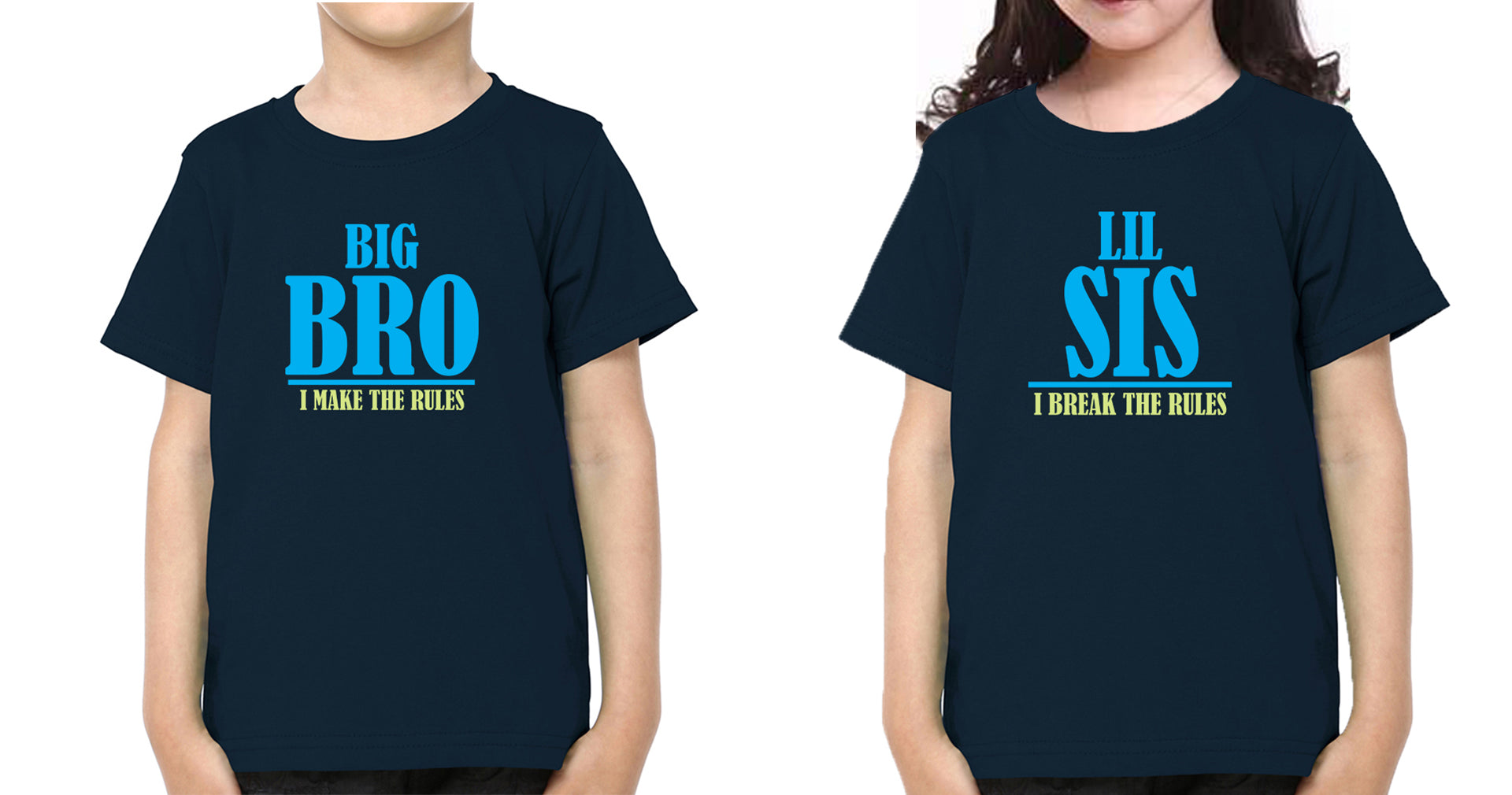 Big Bro make The Rules Lil Sis Break The Rules Brother-Sister Kid Half Sleeves T-Shirts -FashionRazor
