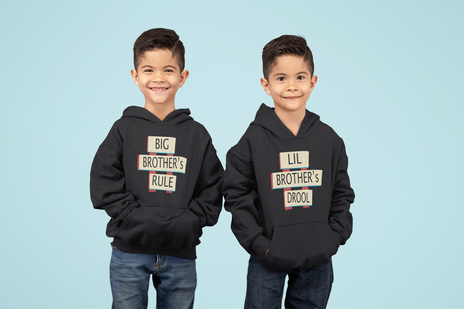 Big Brothers Rule Lil Brothers Rule Kids Matching Hoodies -FashionRazor