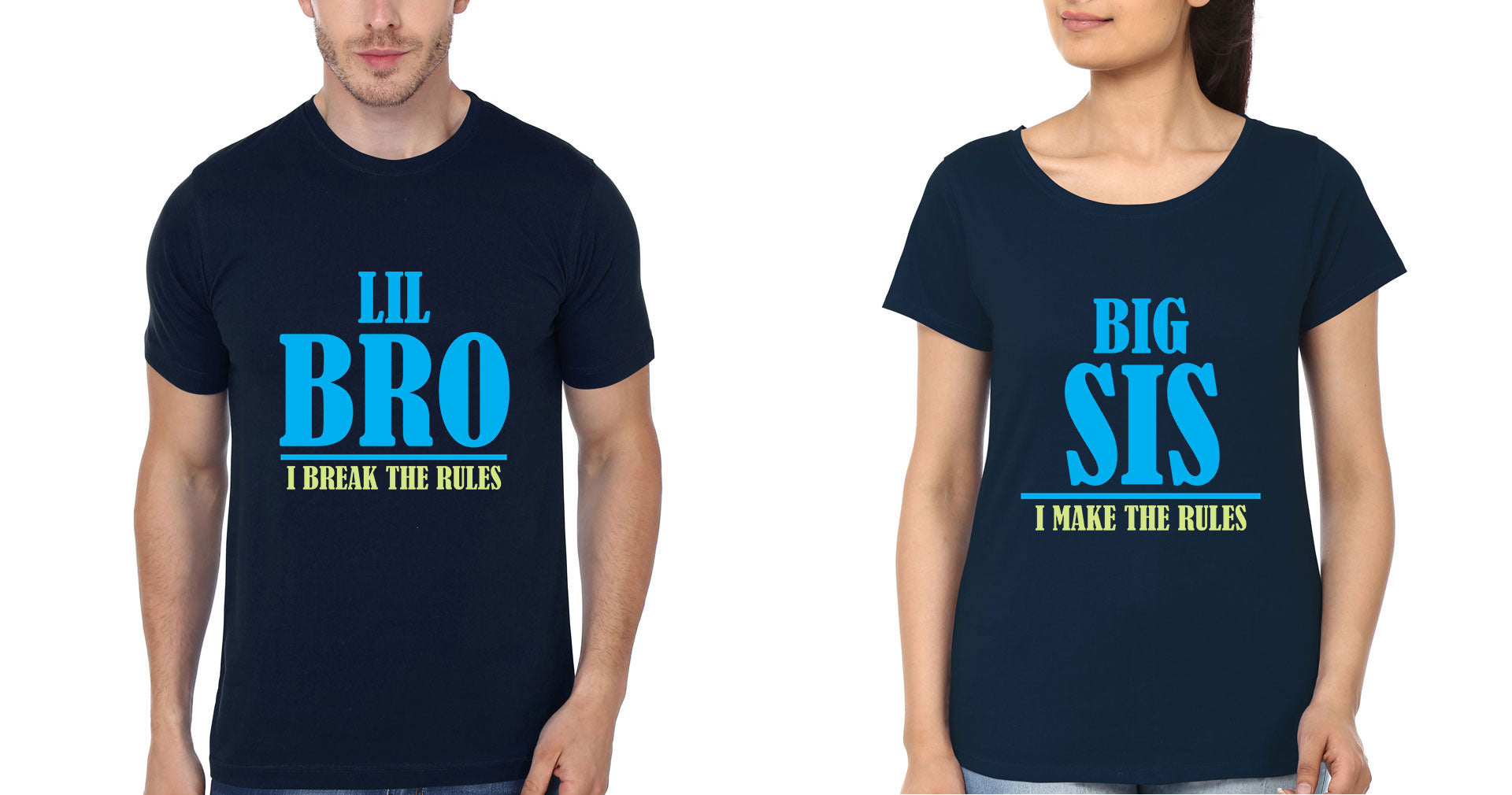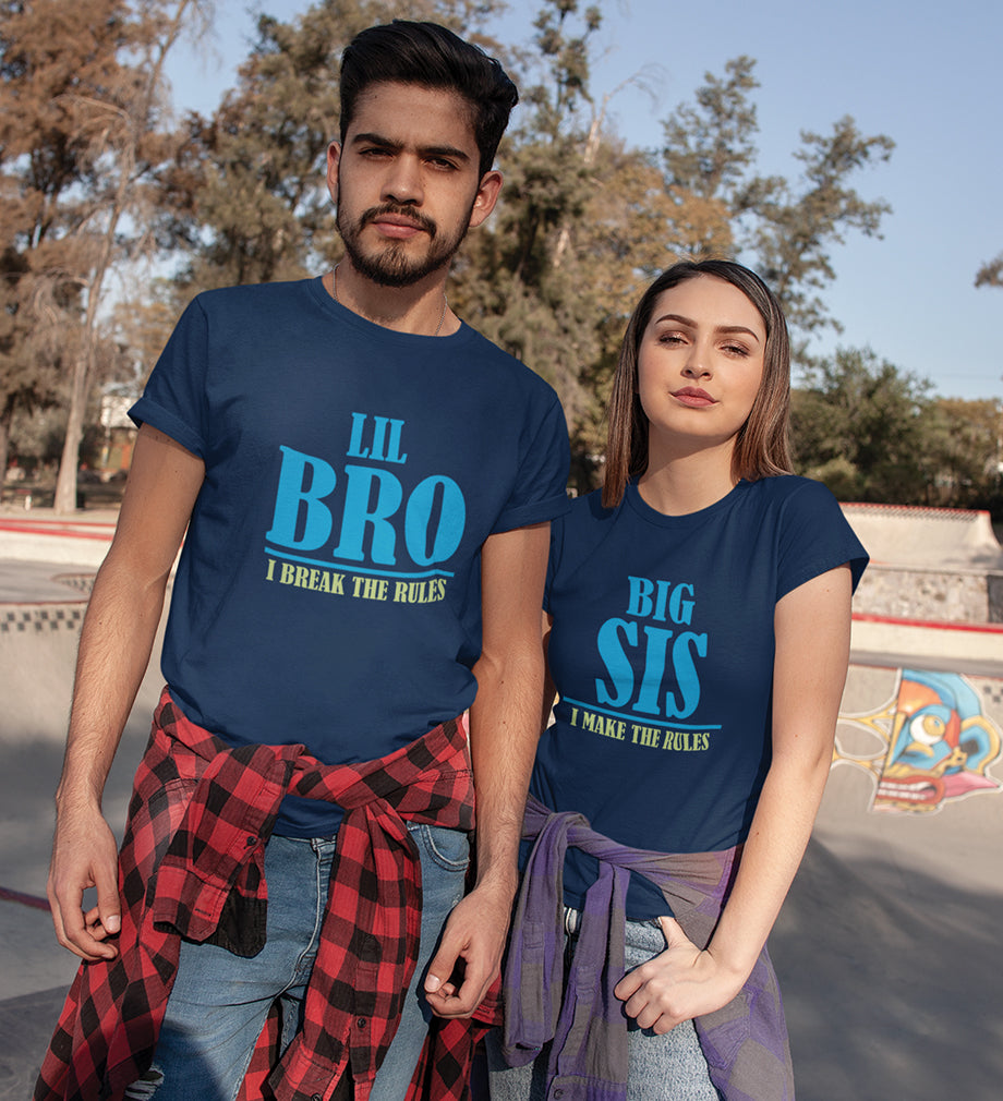 Big Sis Make The Rules Lil Bro Break The Rules Brother-Sister Half Sleeves T-Shirts -FashionRazor