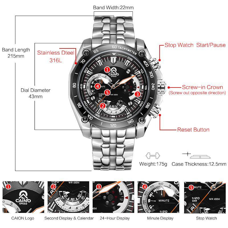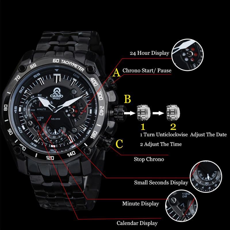 Buy CAINO Men Fashion Business Quartz Wrist Watch Luxury Top Brand Full Steel Strap Sports Watch-FashionRazor