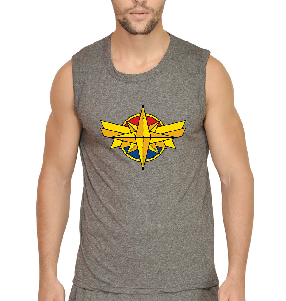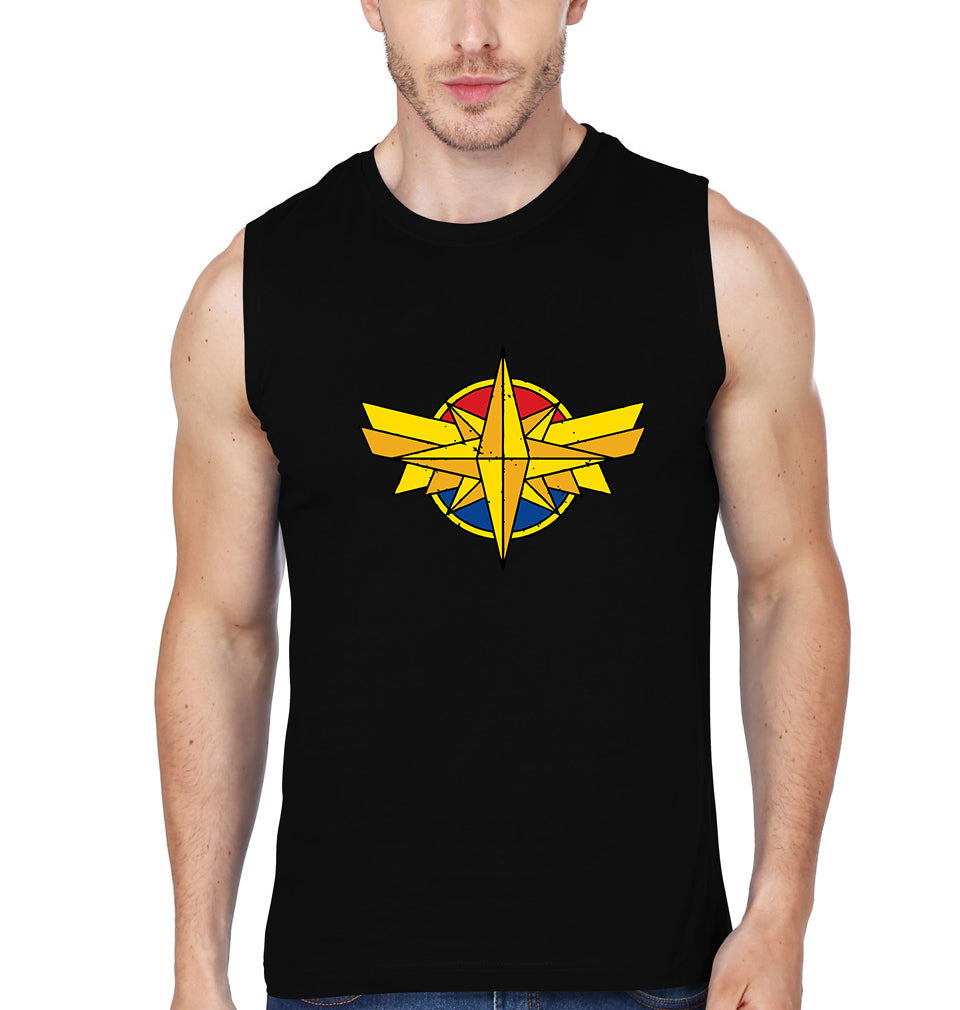 Captain Marvel Logo Men Sleeveless T-Shirts-FashionRazor
