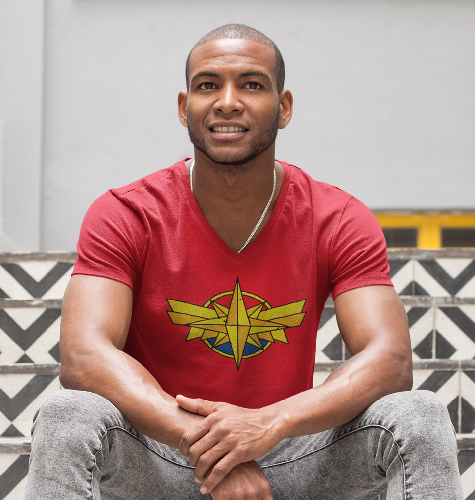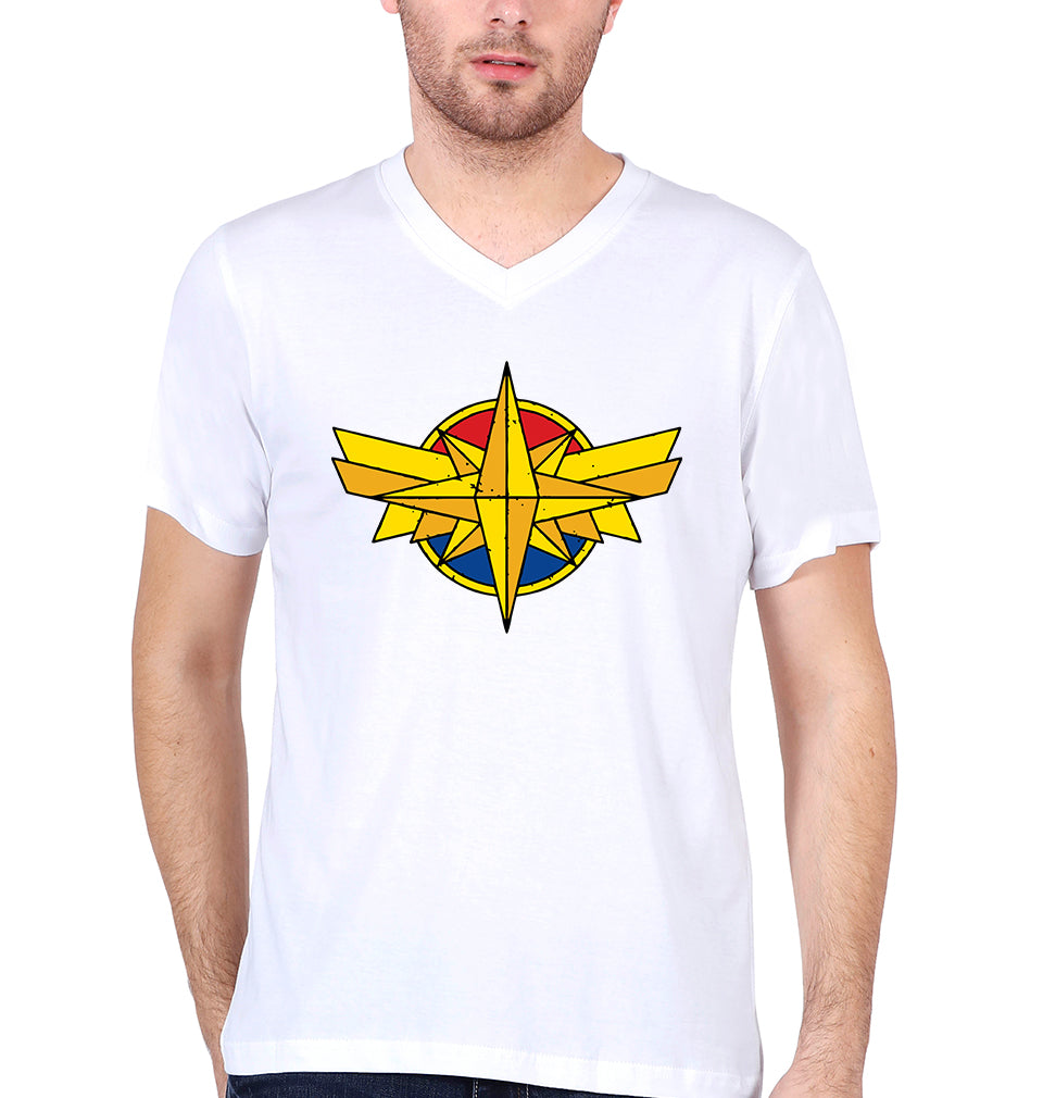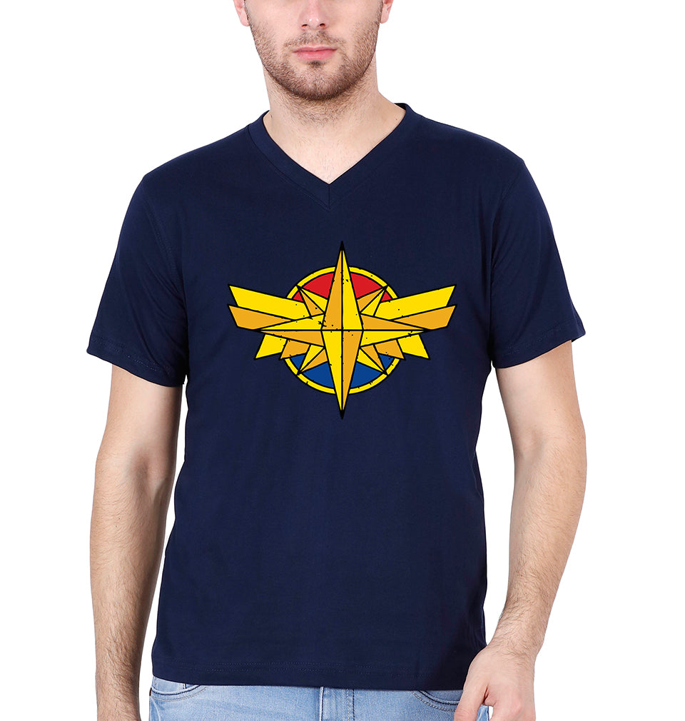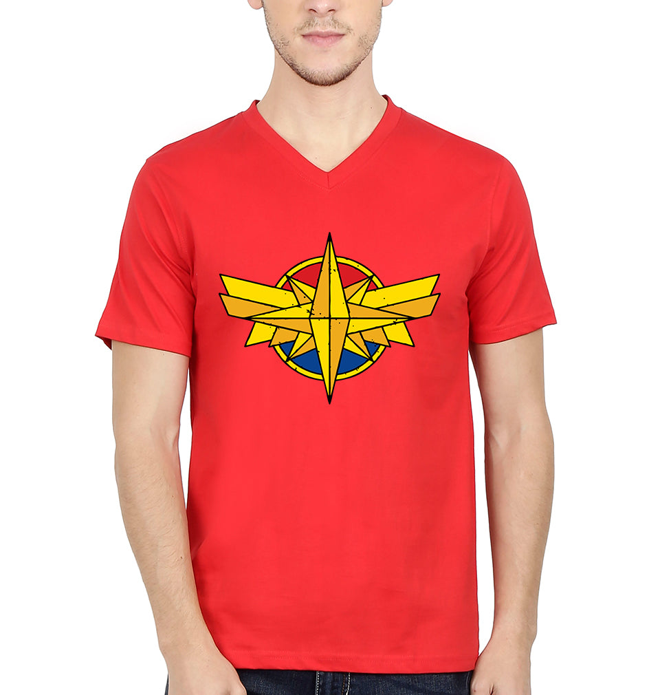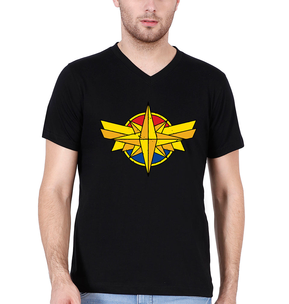 Captain Marvel Logo Men V Neck Half Sleeves T-Shirts-FashionRazor