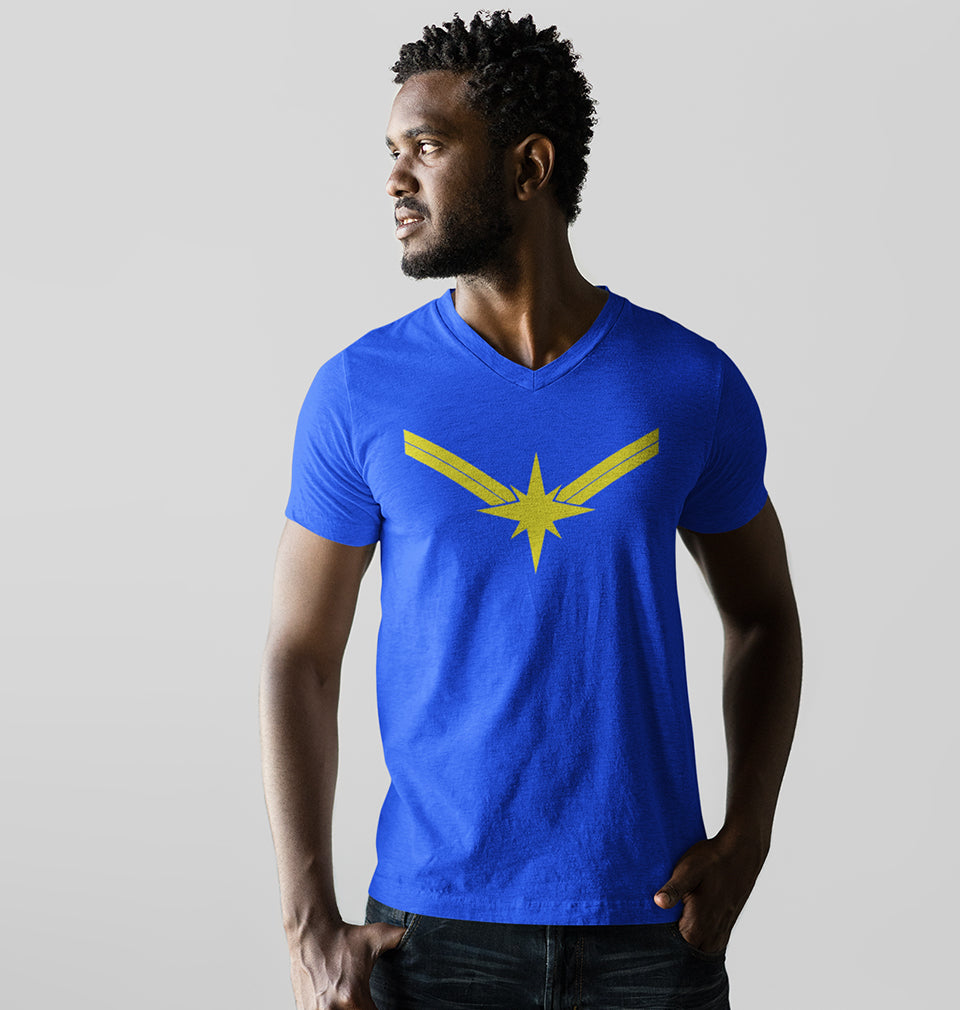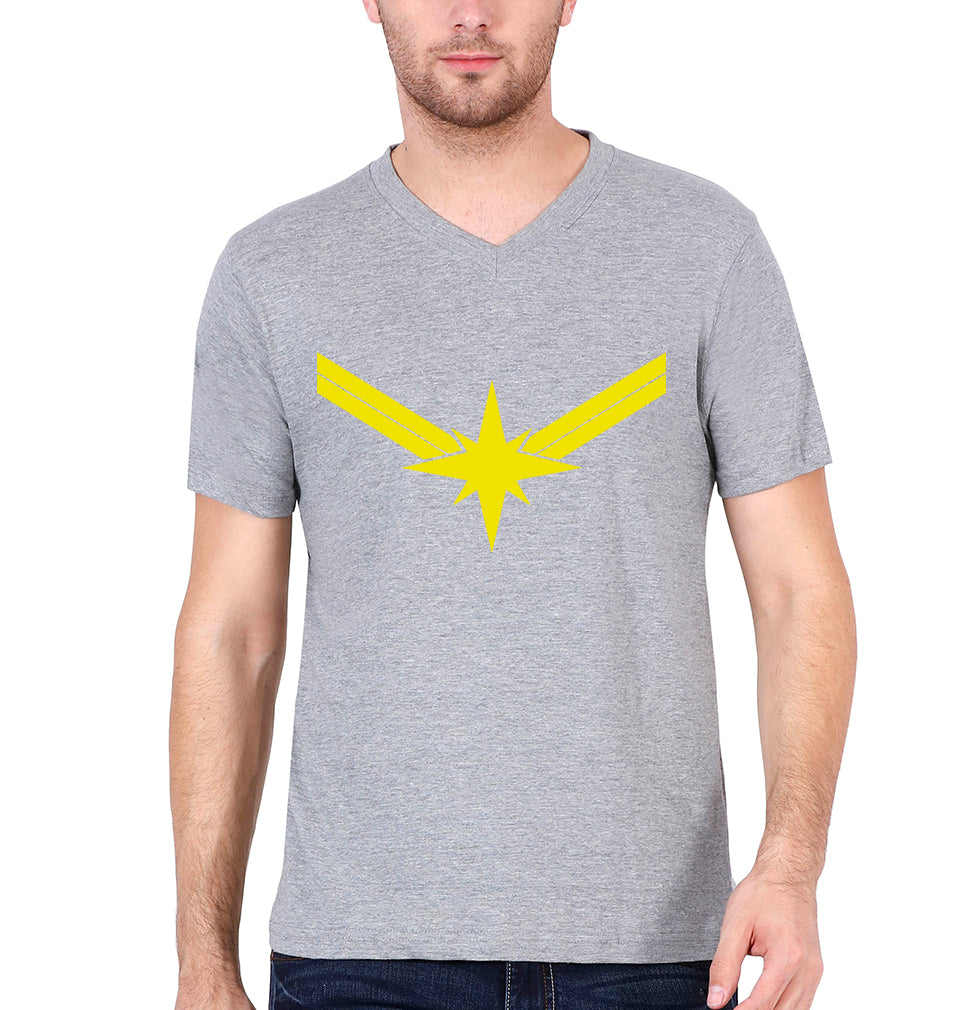 Captain Marvel Logo Men V Neck Half Sleeves T-Shirts-FashionRazor