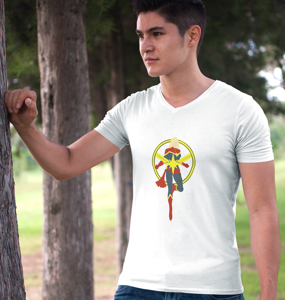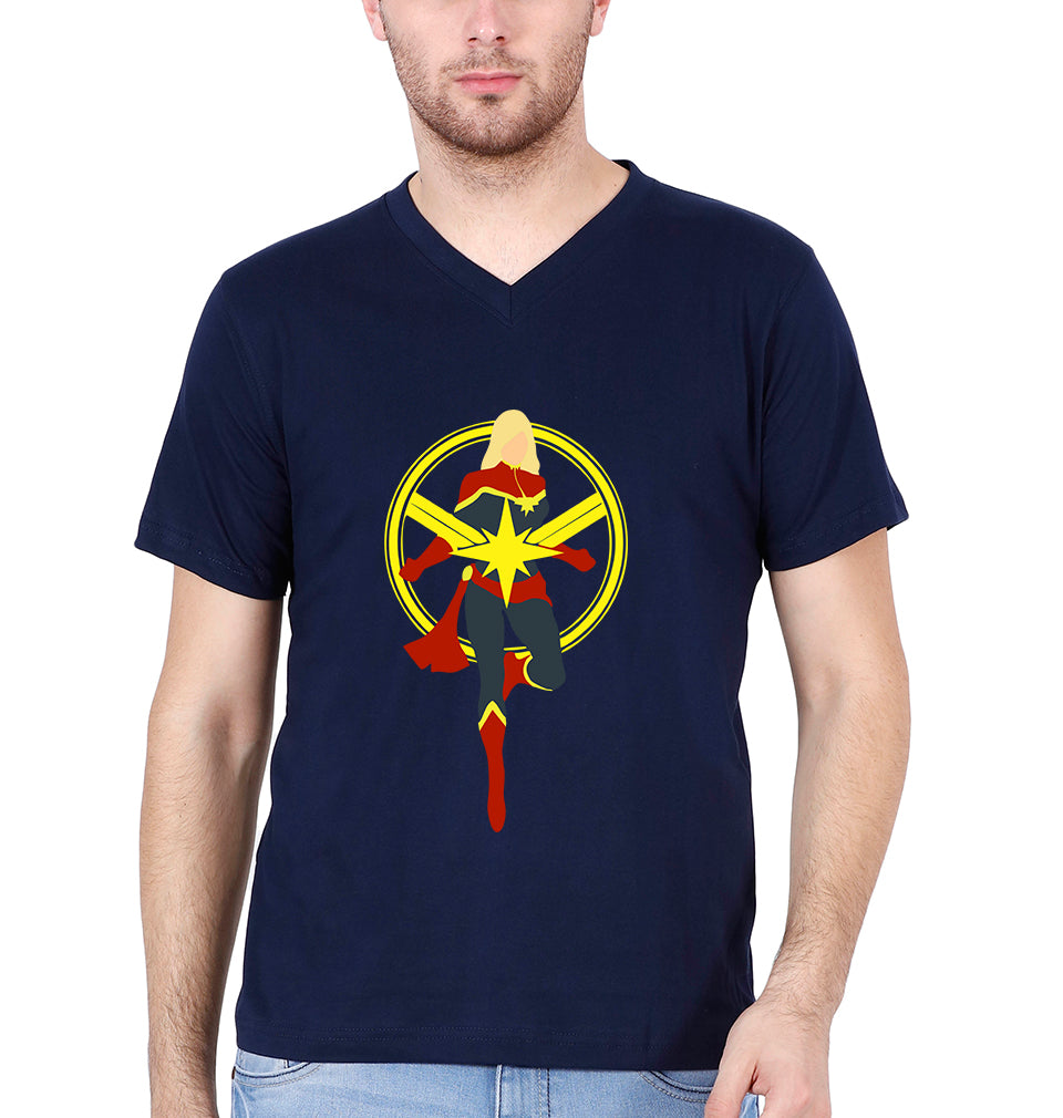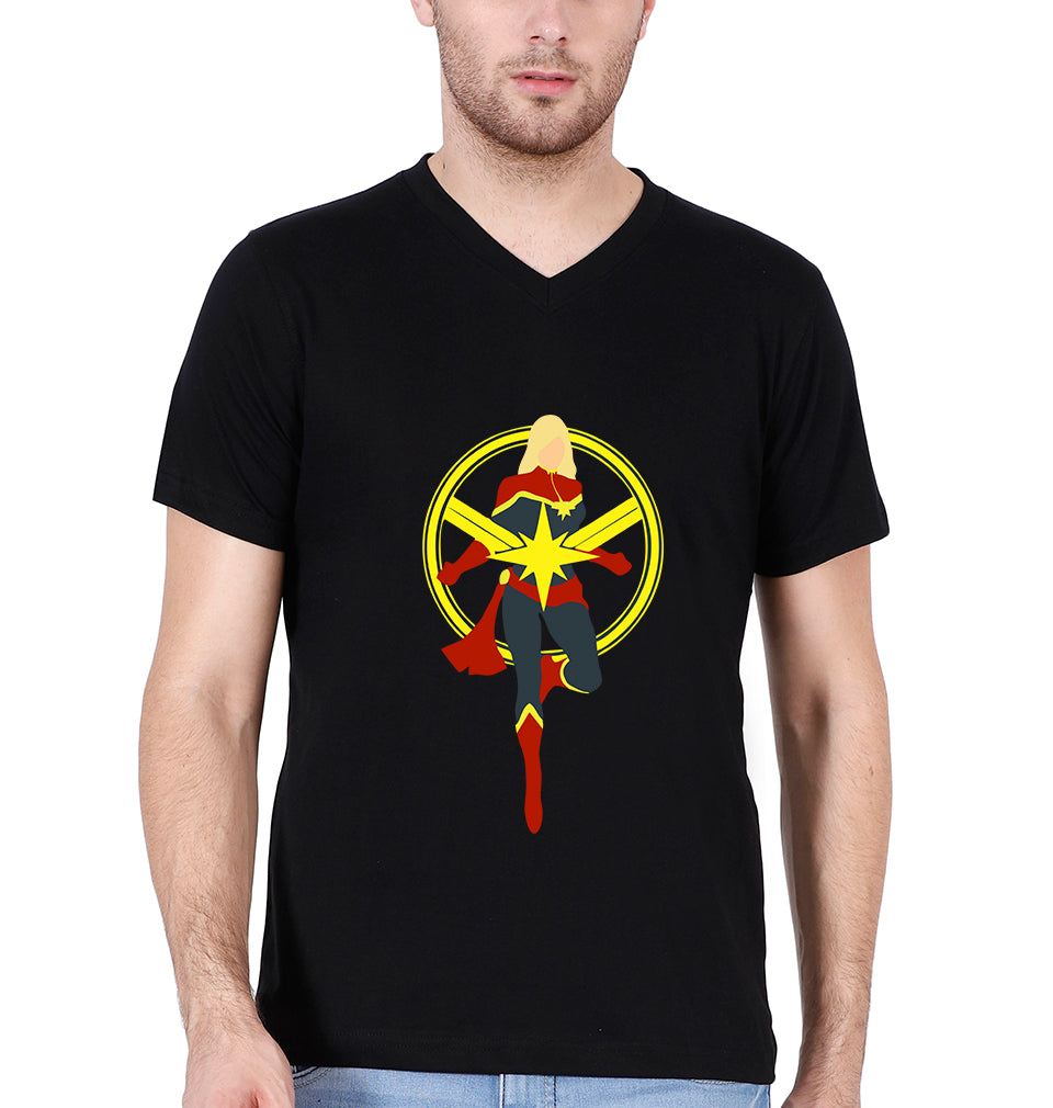 Captain Marvel Men V Neck Half Sleeves T-Shirts-FashionRazor