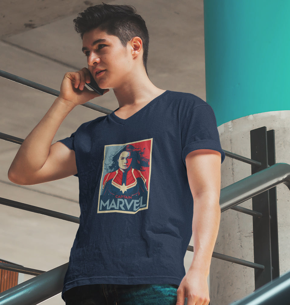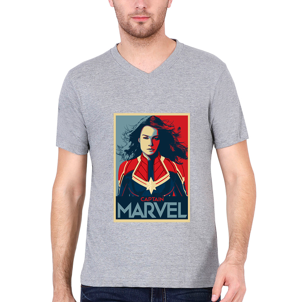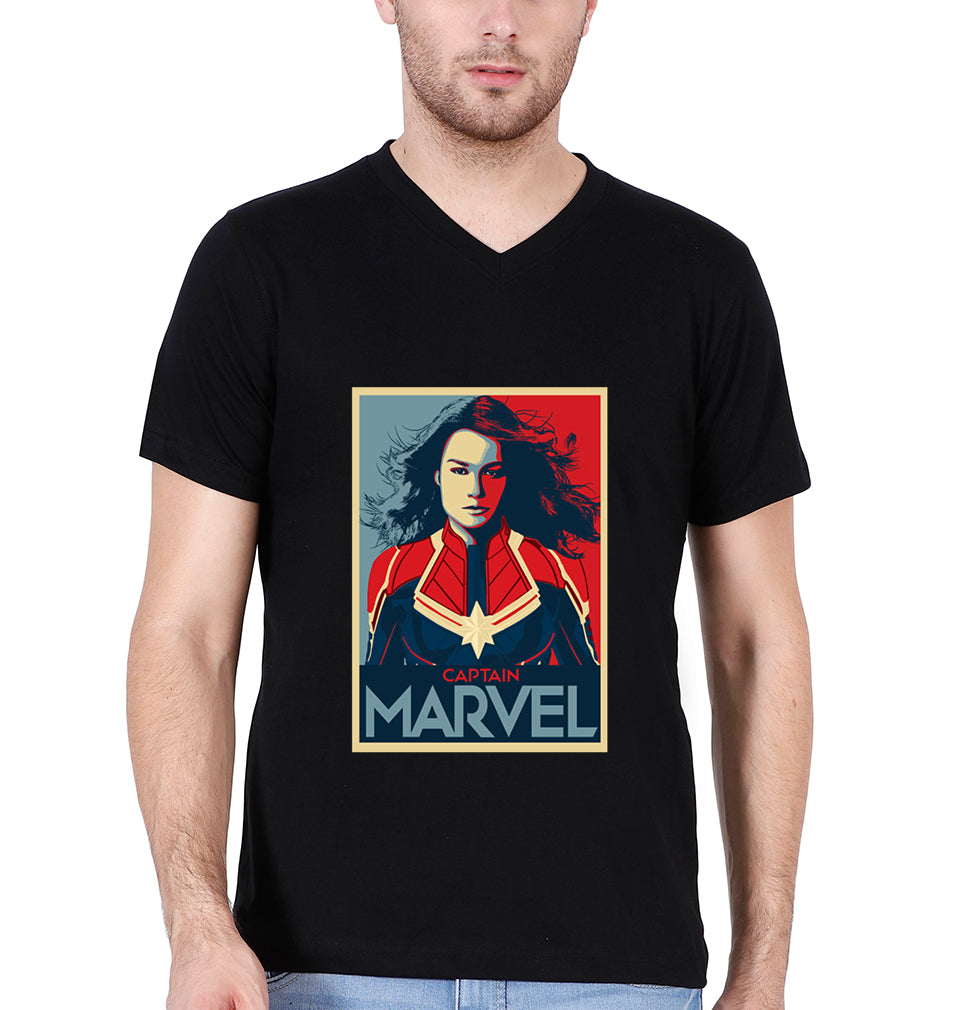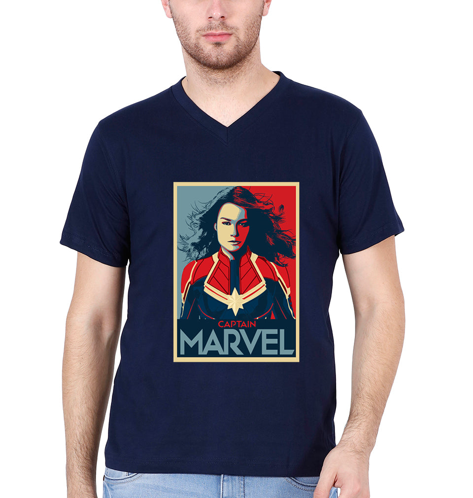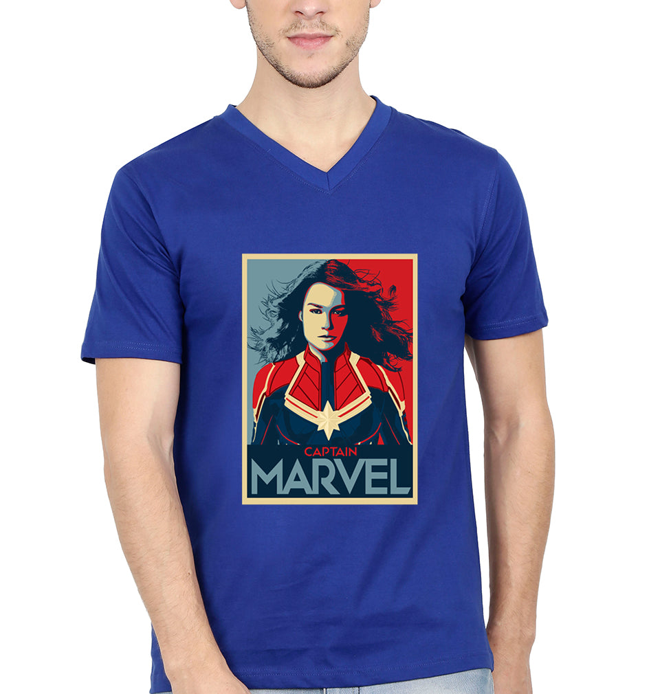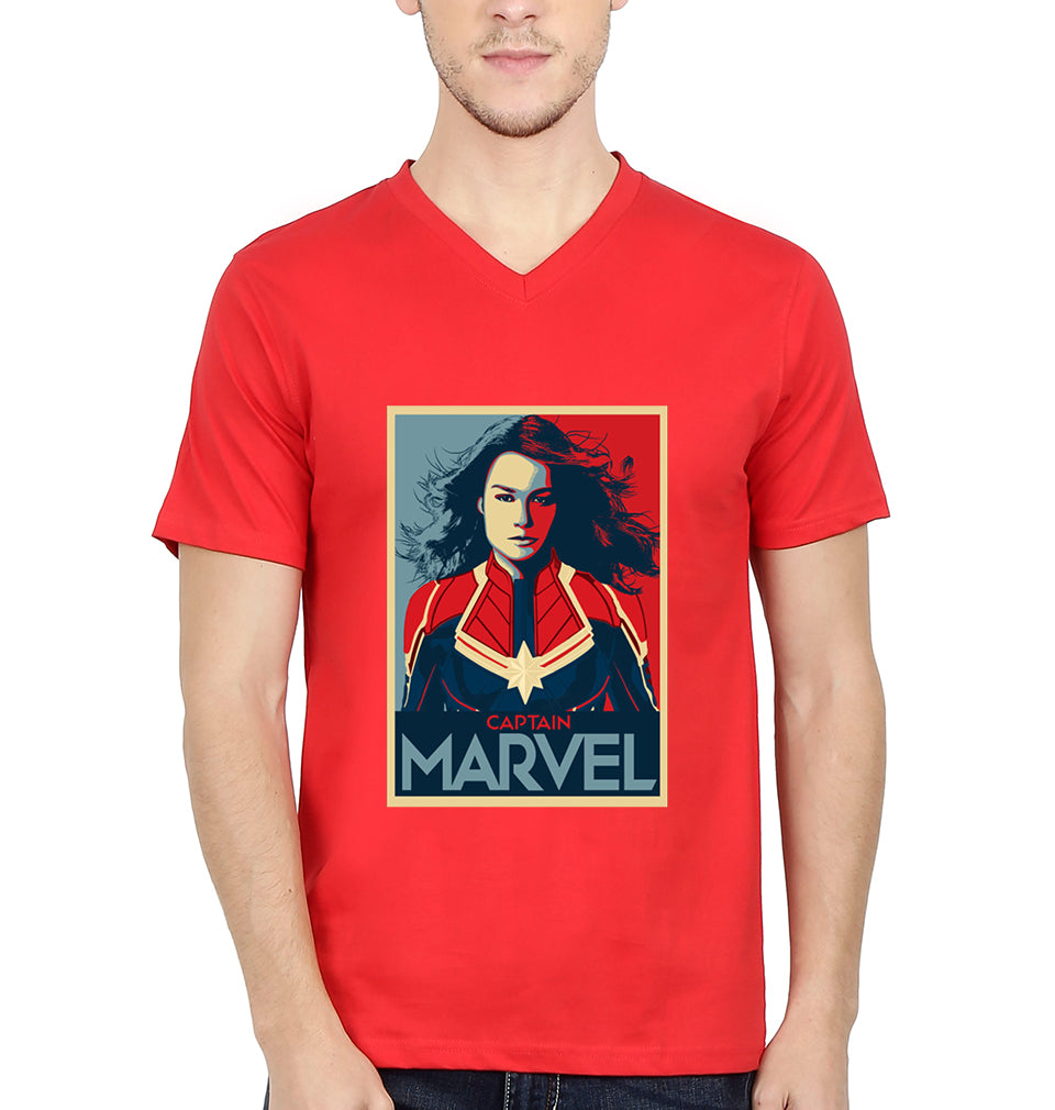 Captain Marvel Superhero Men V Neck Half Sleeves T-Shirts-FashionRazor