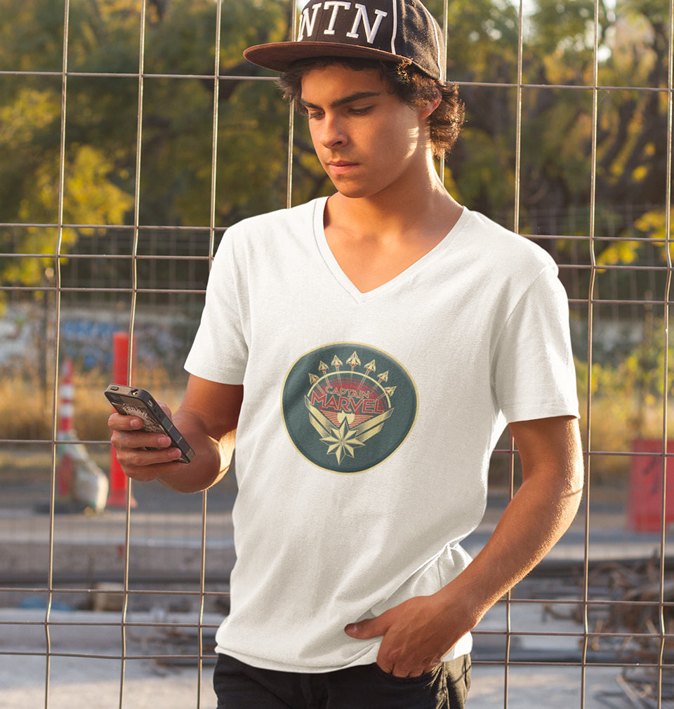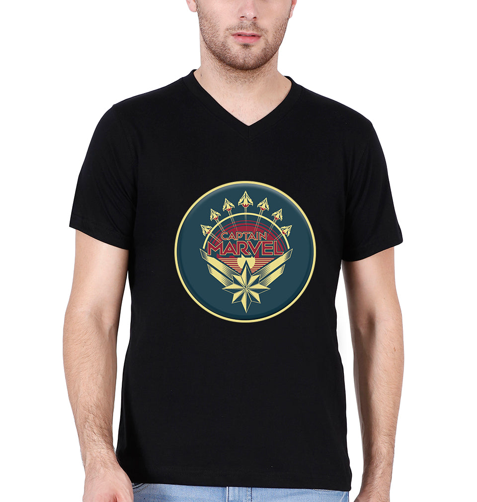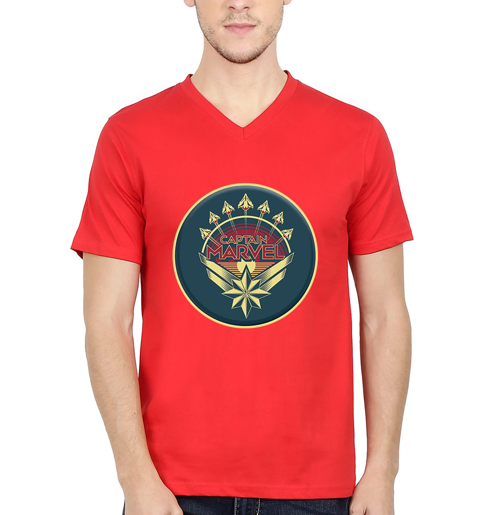 Captain Marvel Superhero Men V Neck Half Sleeves T-Shirts-FashionRazor
