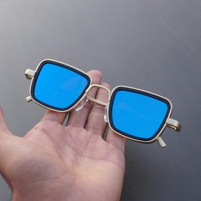 Buy Aqua Blue And Gold Retro Square Sunglasses For Men And Women-FashionRazor