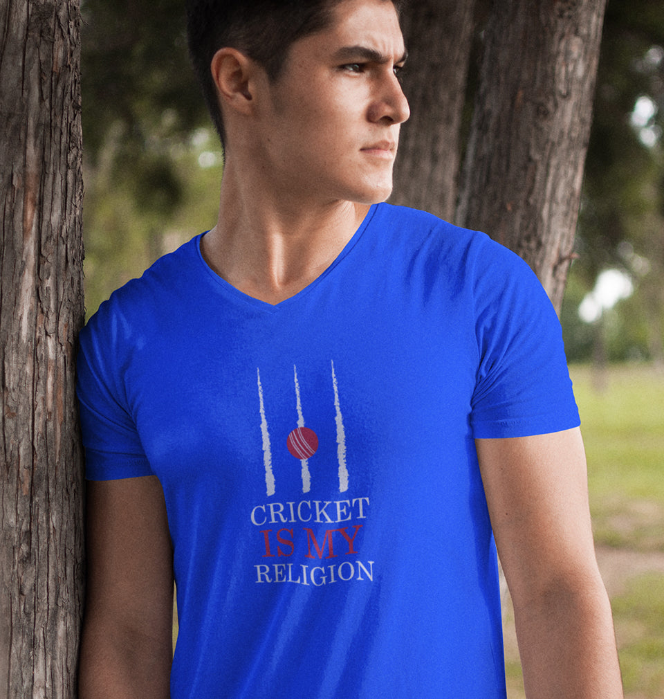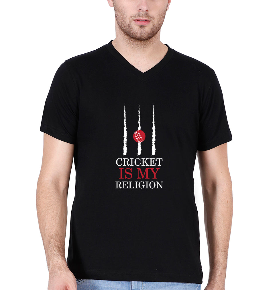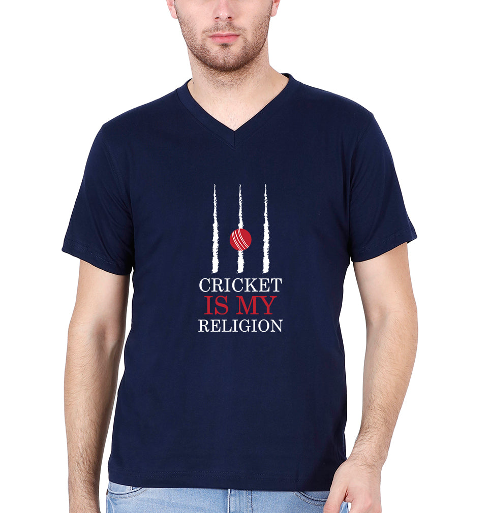Cricket Is My Religion Men V Neck Half Sleeves T-Shirts-FashionRazor