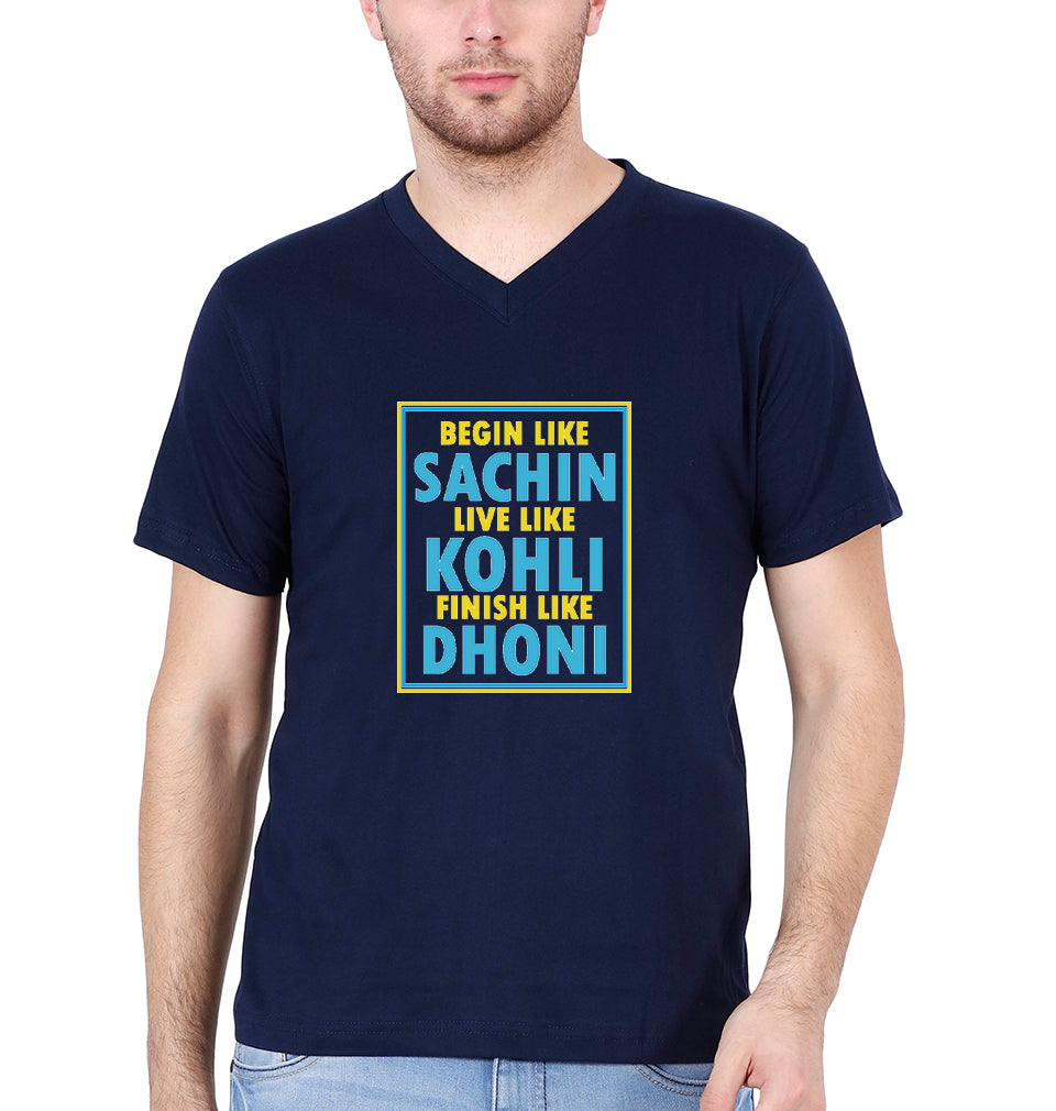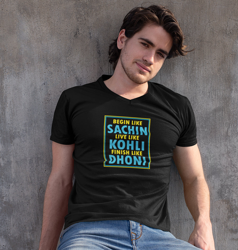 CRICKET Sachin Kohli Dhoni Men V Neck Half Sleeves T-Shirts-FashionRazor