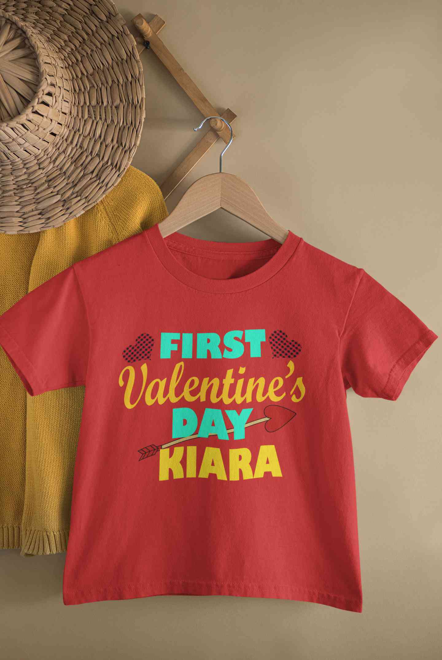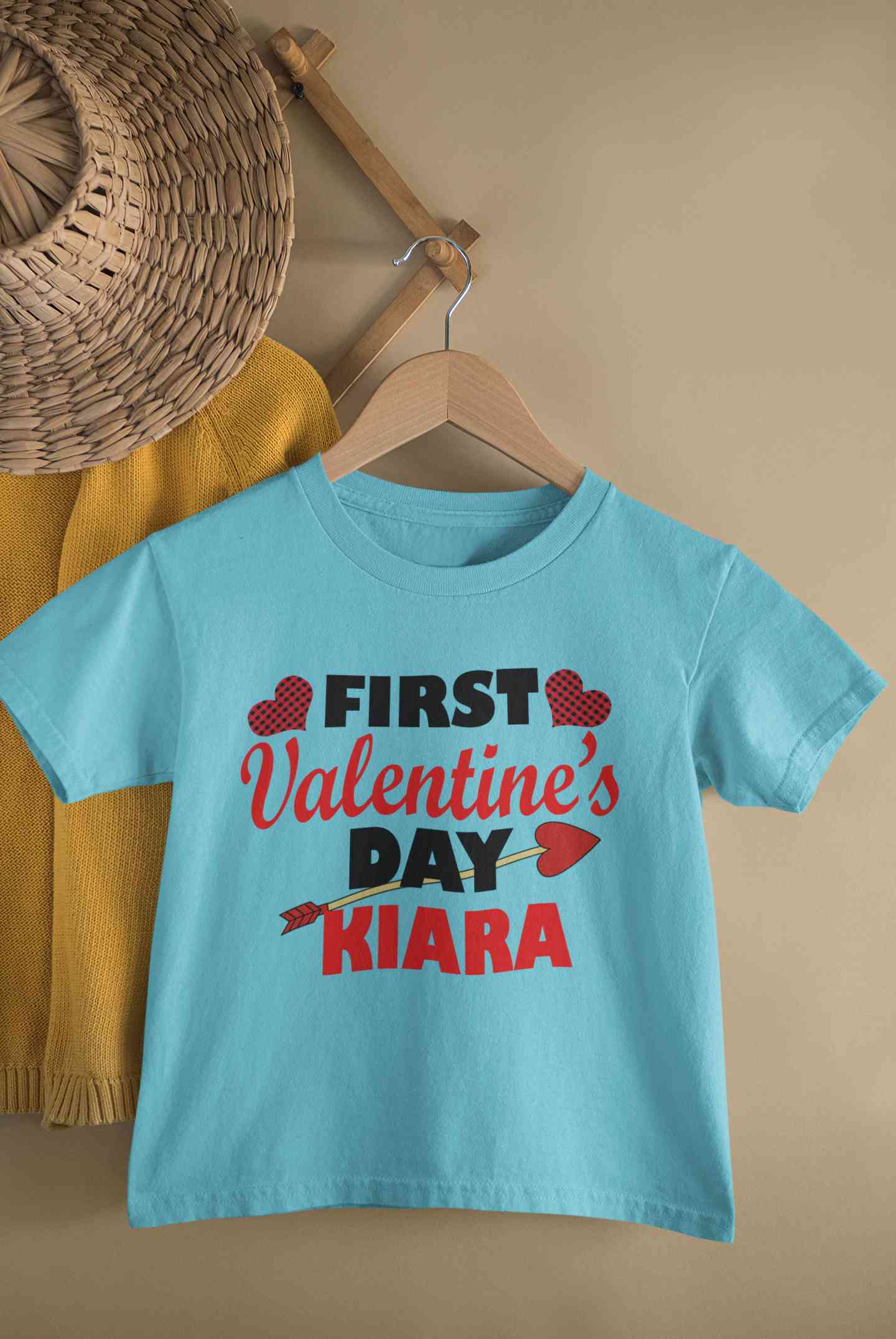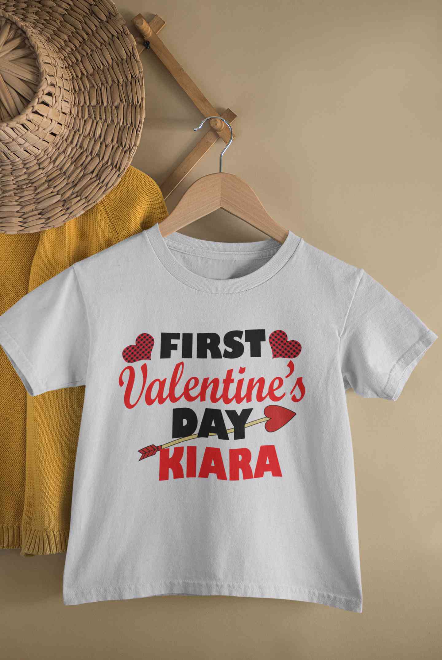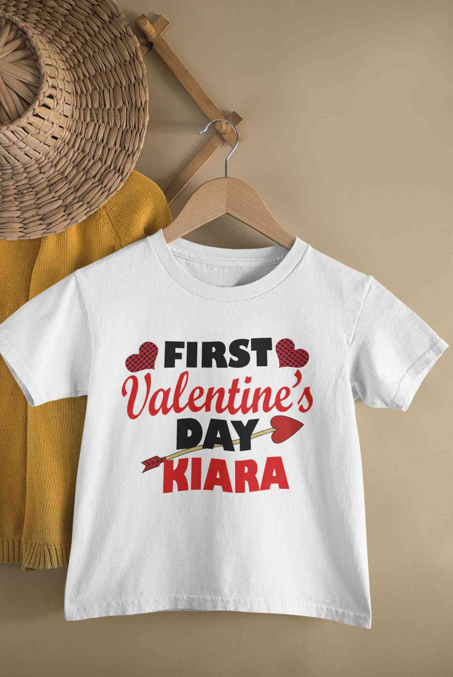 Custom Name First Valentine Half Sleeves T-Shirt For Girls -FashionRazor