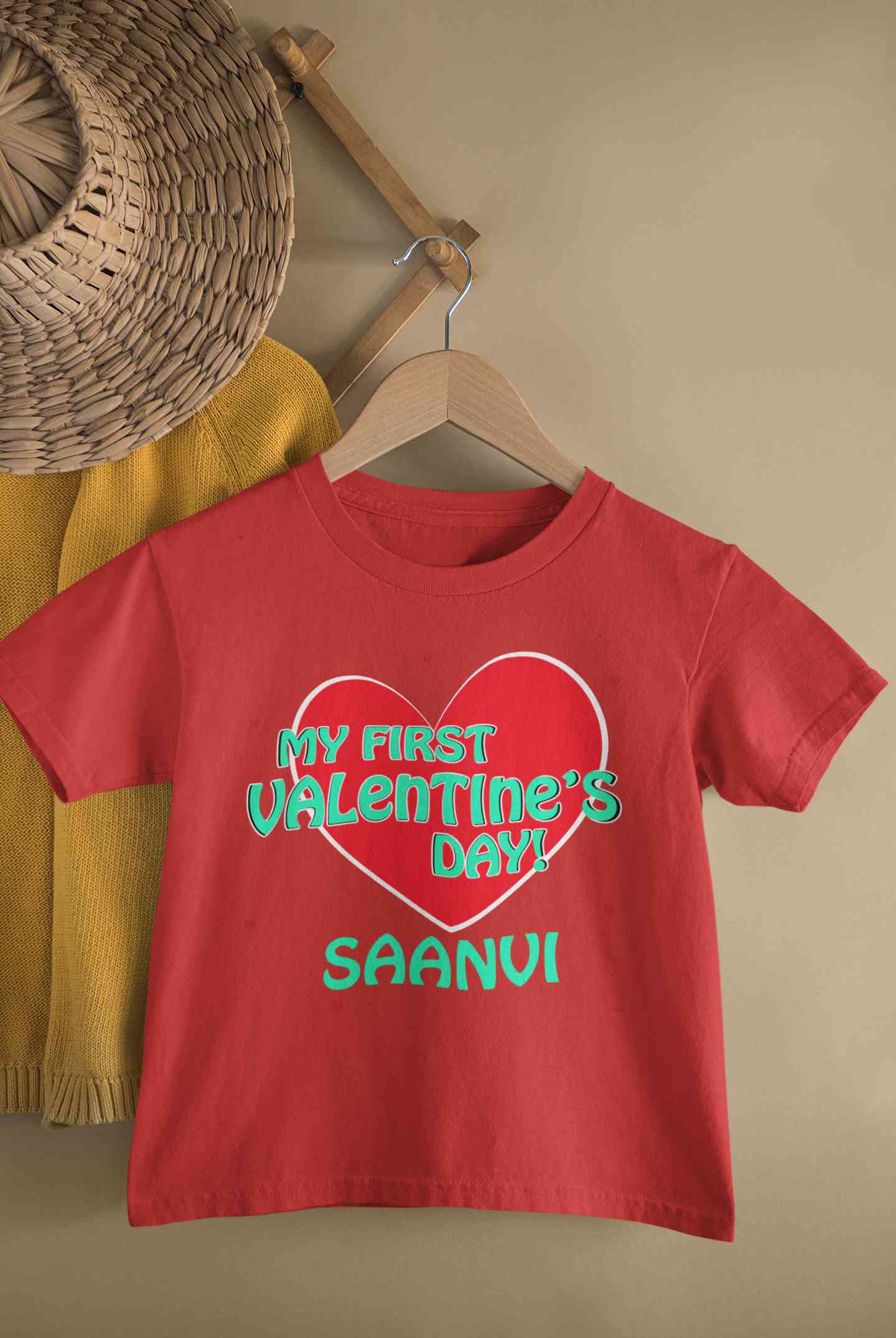 Custom Name 1st Valentine Half Sleeves T-Shirt For Girls -FashionRazor