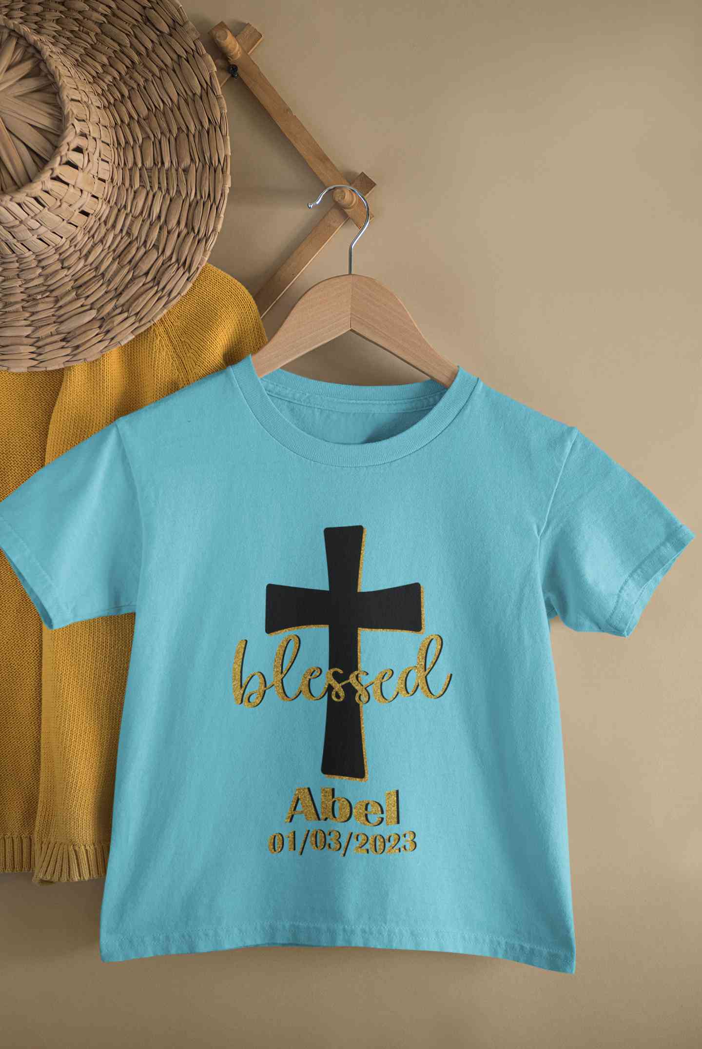 Custom Name And Date Blessed Baptism Christening Day Half Sleeves T-Shirt for Boy-FashionRazor