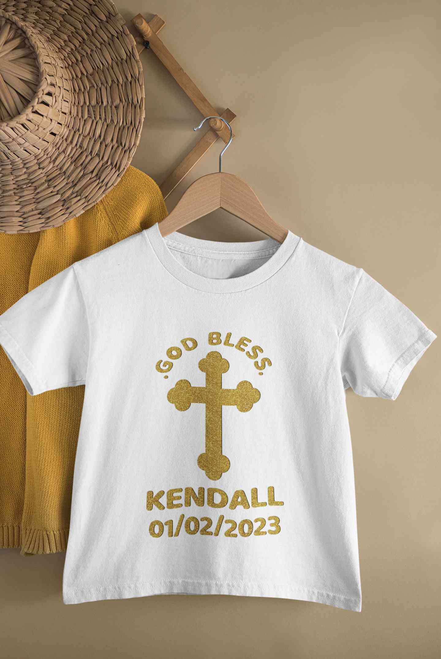 Custom Name And Date God Bless Baptism Christening Day Half Sleeves T-Shirt For Girls -FashionRazor