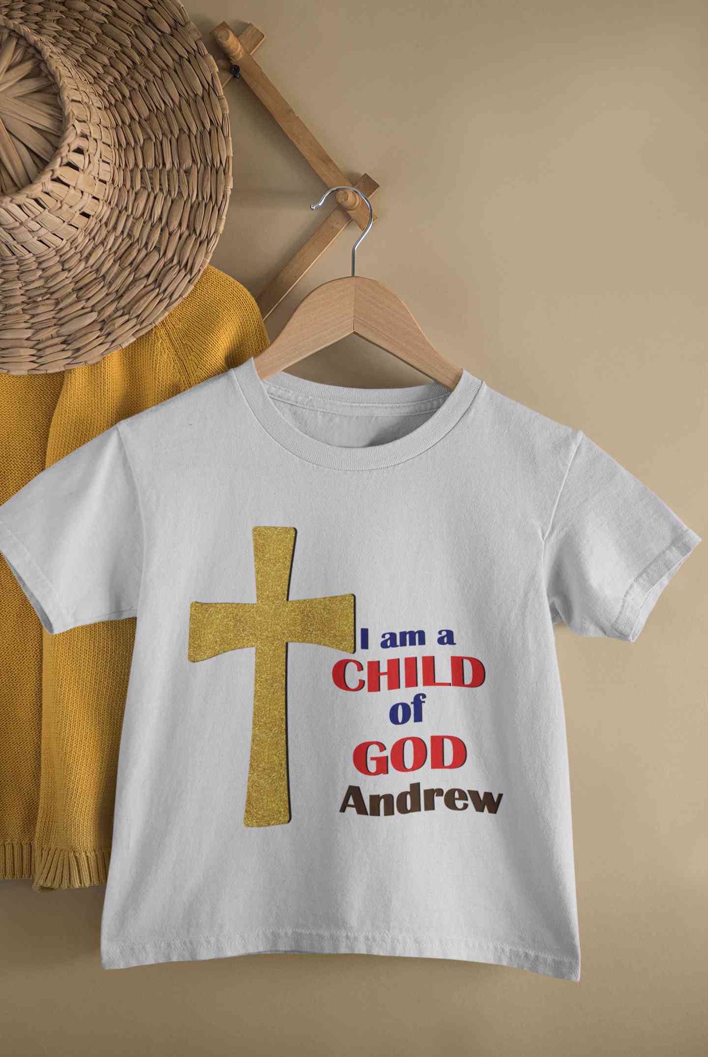 Custom Name Child Of God Baptism Christening Day Half Sleeves T-Shirt for Boy-FashionRazor