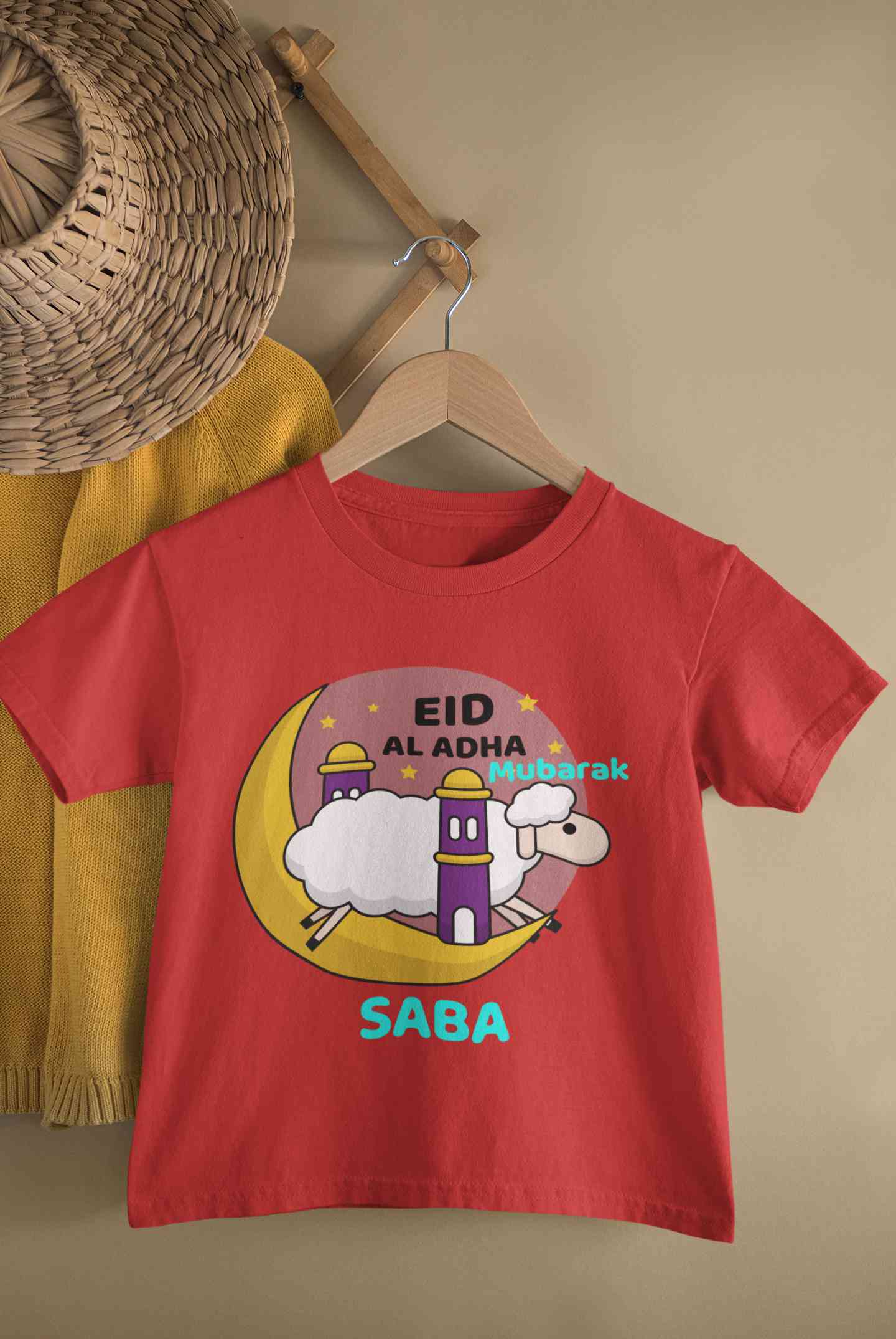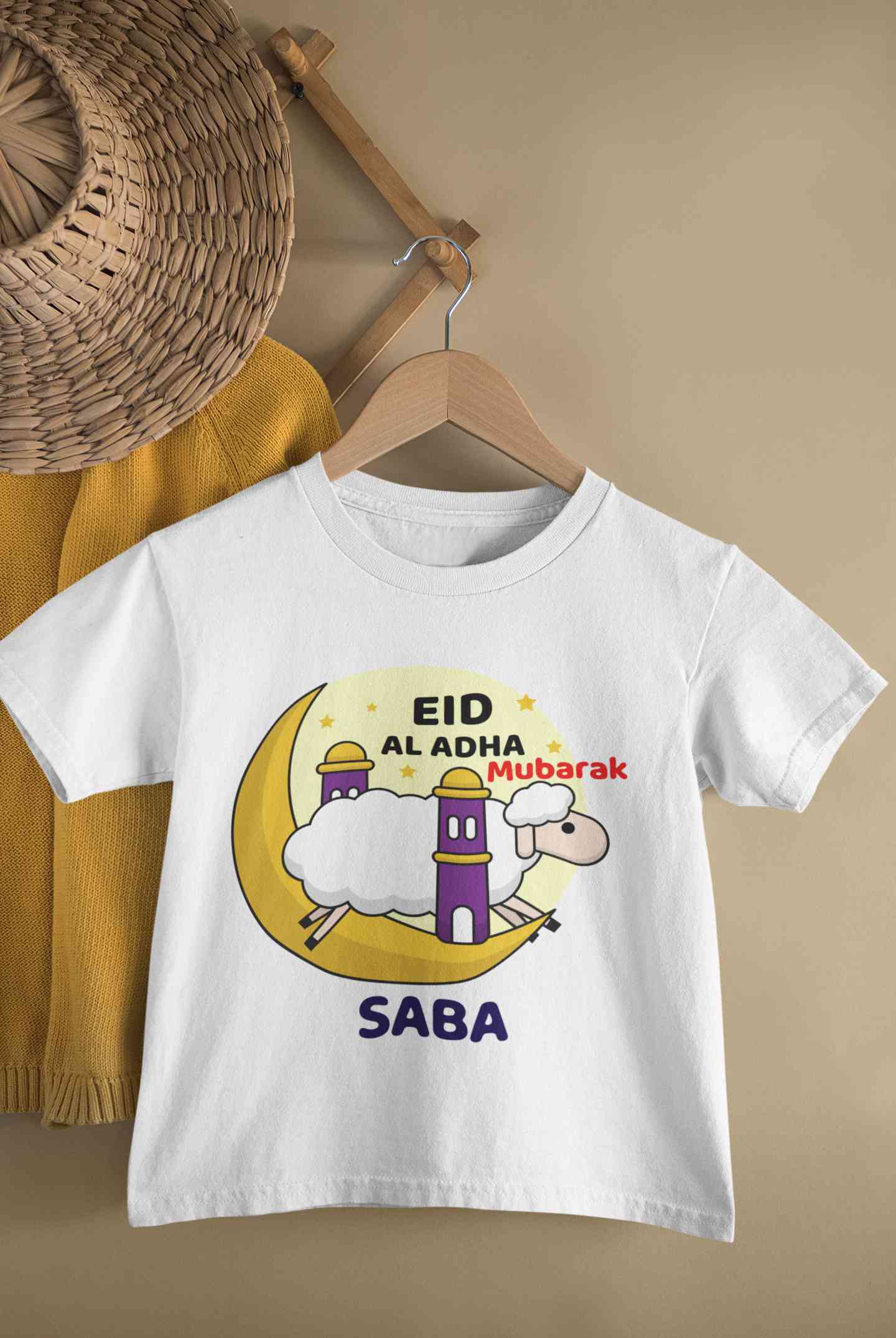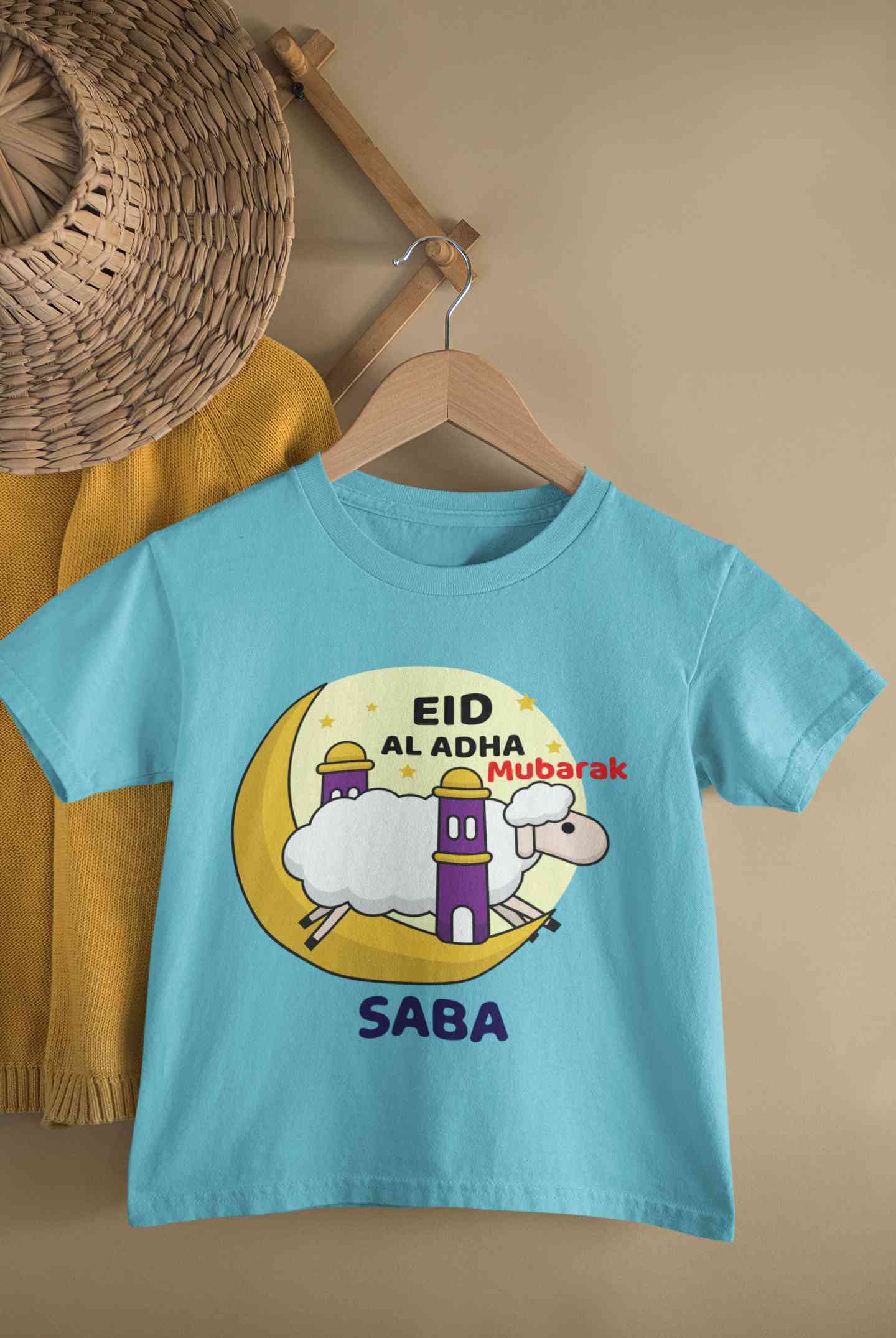 Custom Name Eid Al Adha Bakra Eid Mubarak Half Sleeves T-Shirt For Girls -FashionRazor