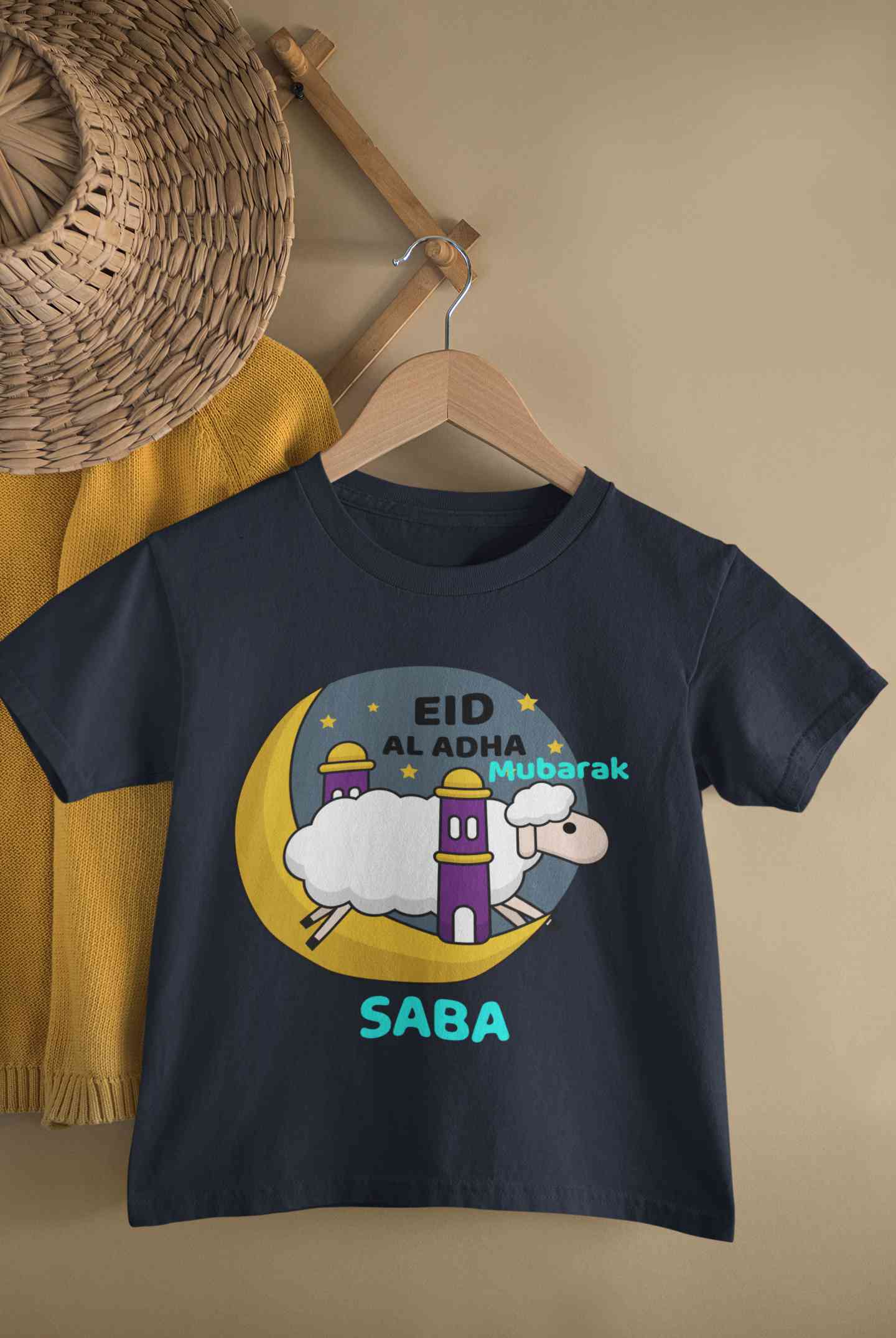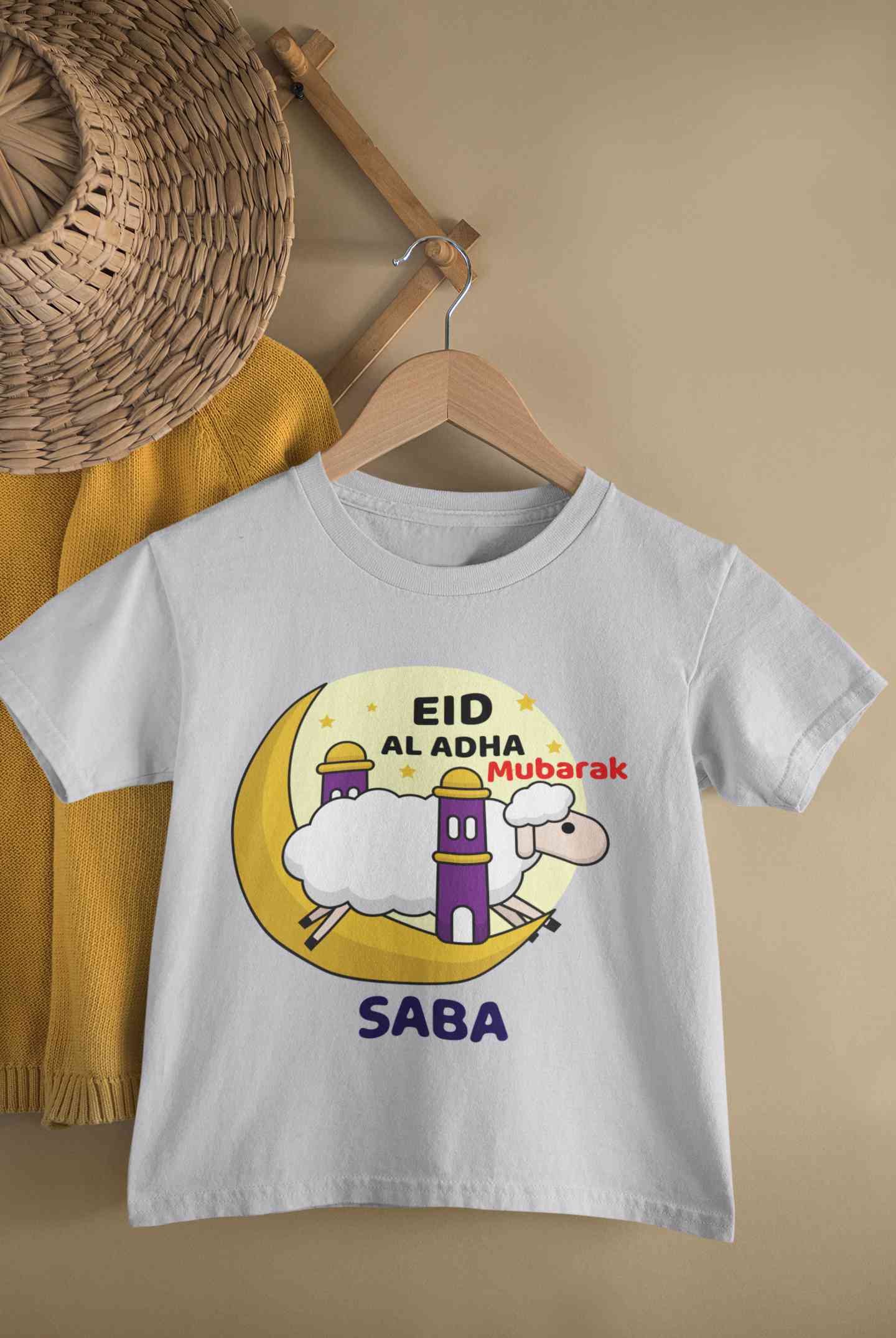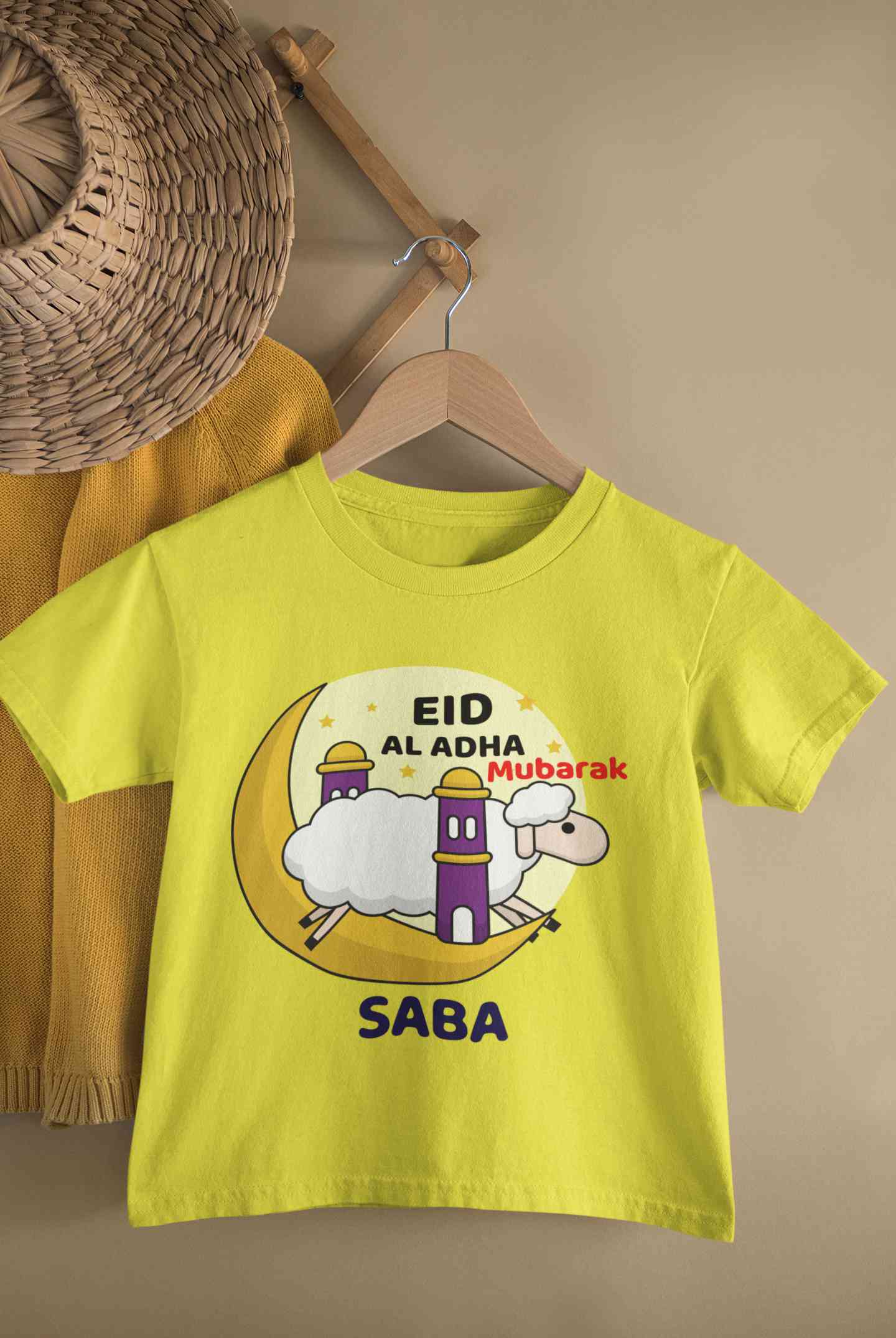 Custom Name Eid Al Adha Bakra Eid Mubarak Half Sleeves T-Shirt For Girls -FashionRazor