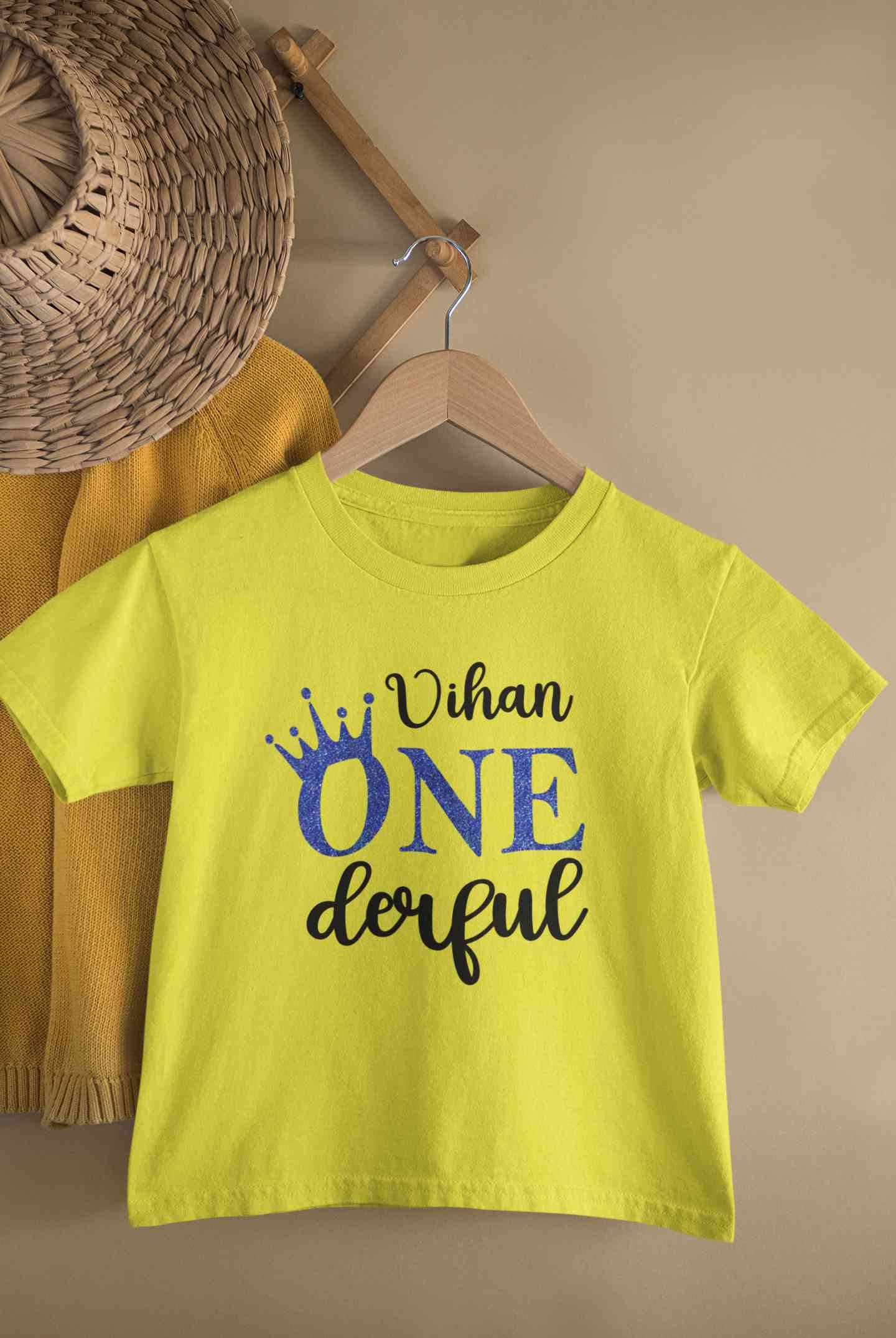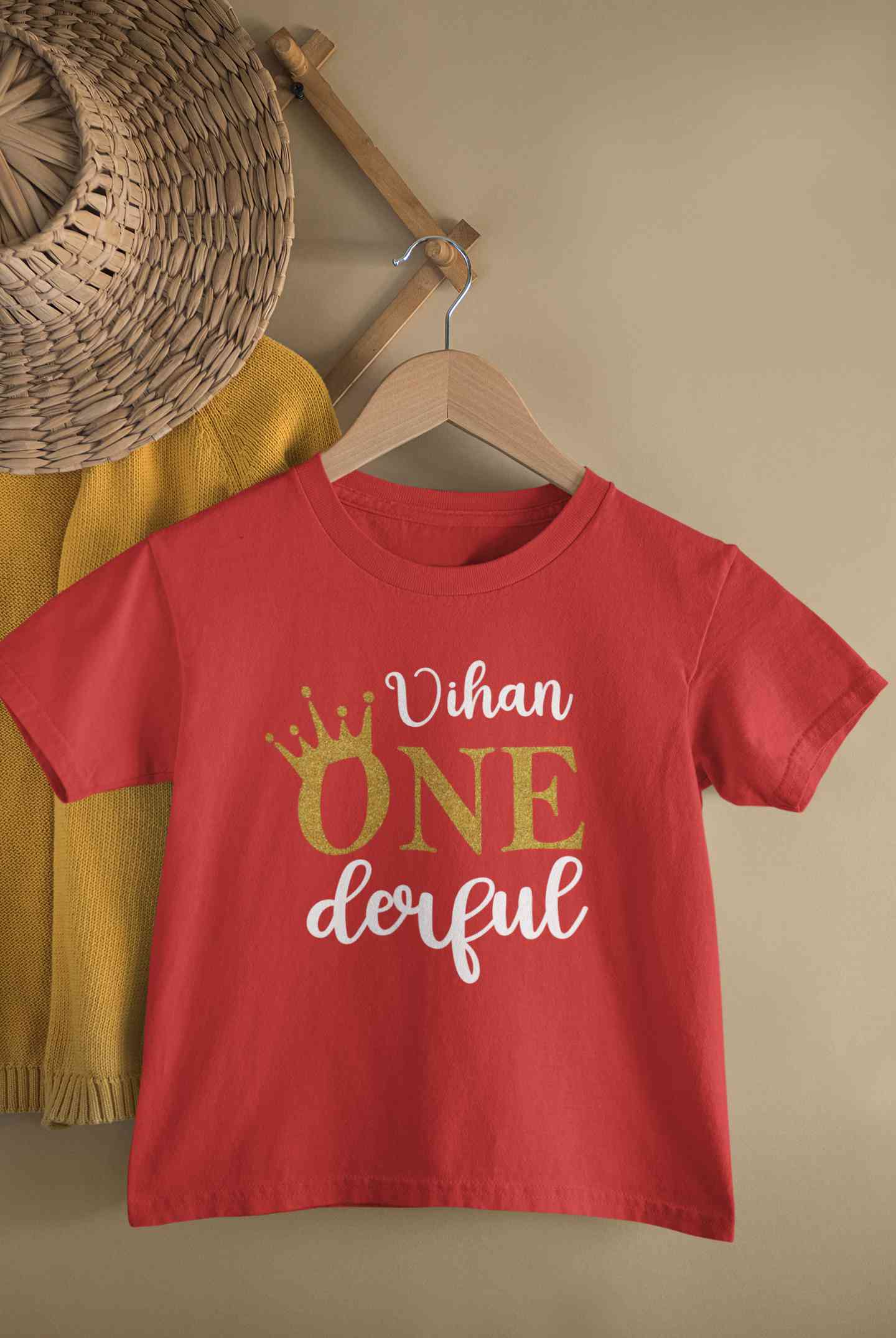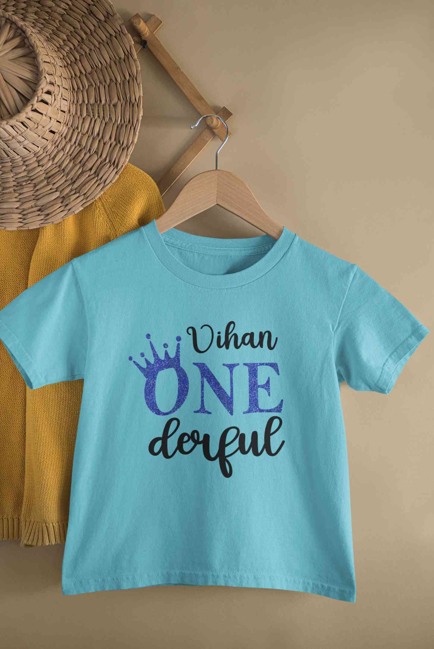 Custom Name First Birthday Half Sleeves T-Shirt for Boy-FashionRazor