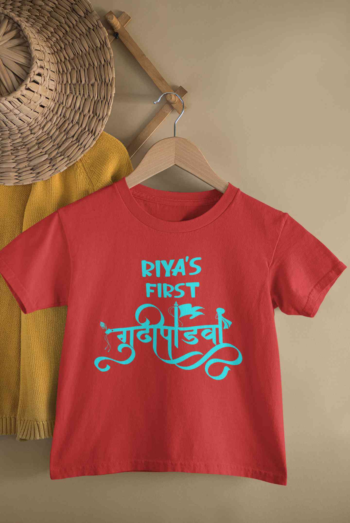 Custom Name First Gudipadwa Half Sleeves T-Shirt For Girls -FashionRazor