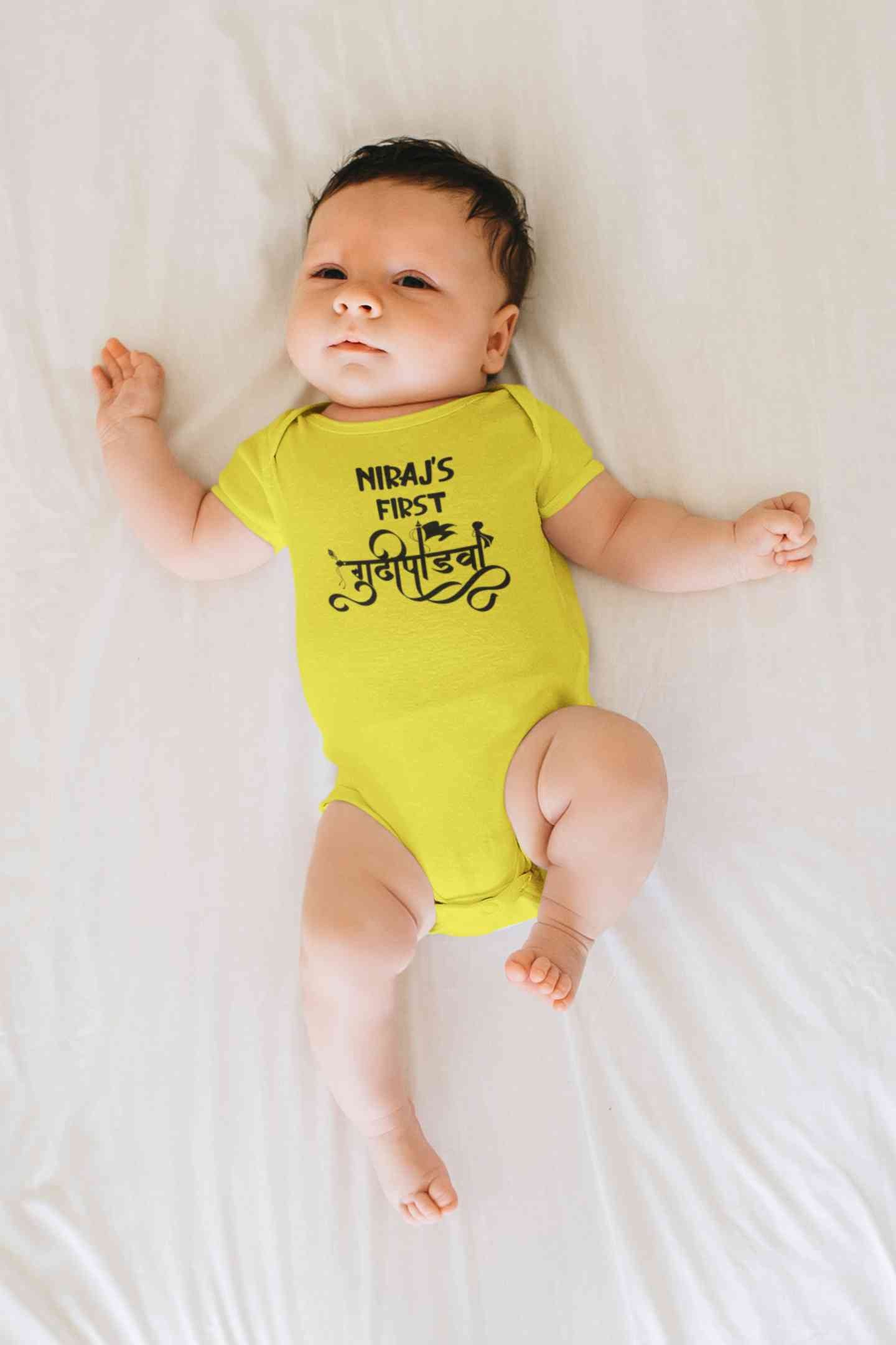 Custom Name First Gudipadwa Rompers for Baby Boy- FashionRazor