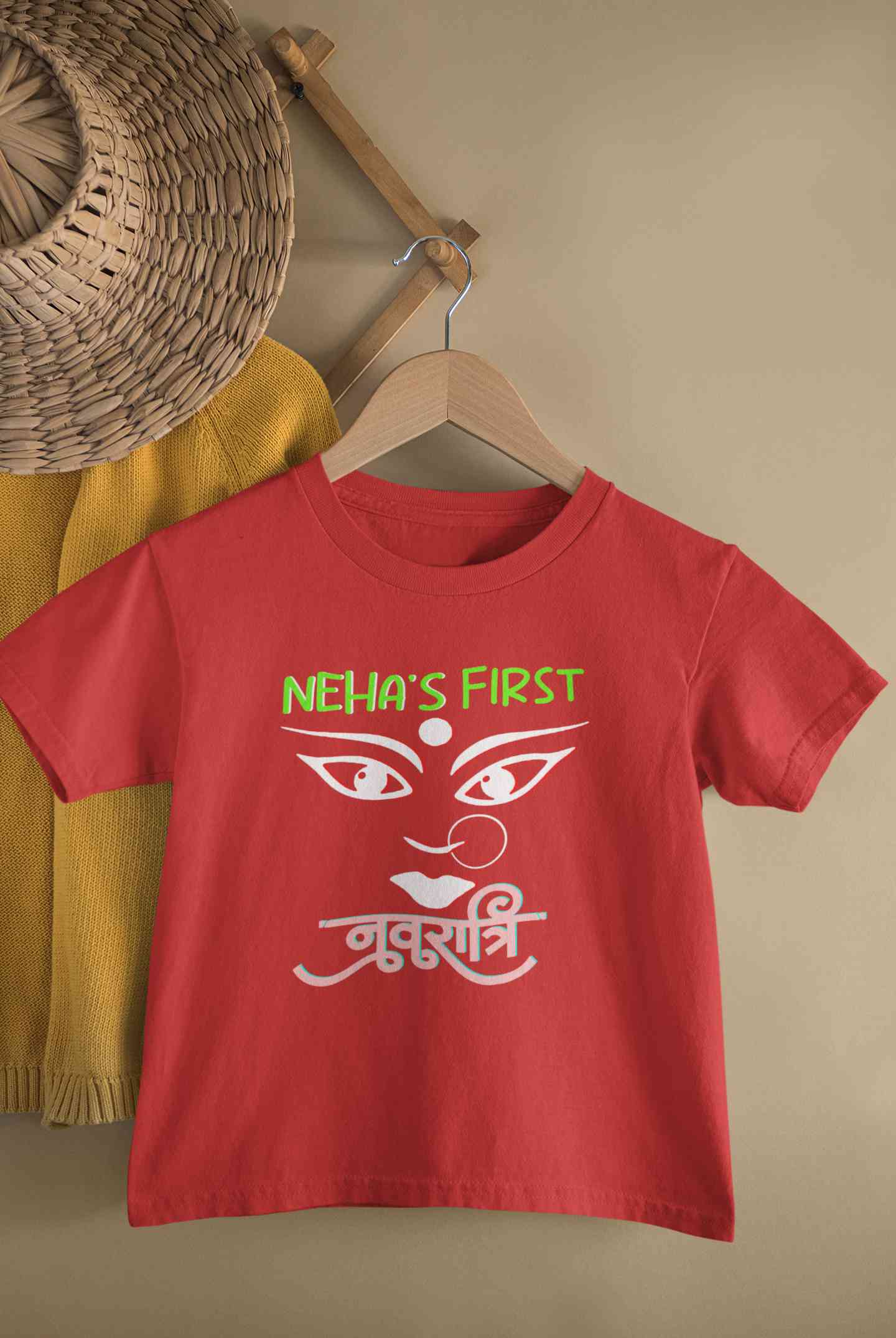 Custom Name First Navratri Durga Pooja Half Sleeves T-Shirt For Girls -FashionRazor