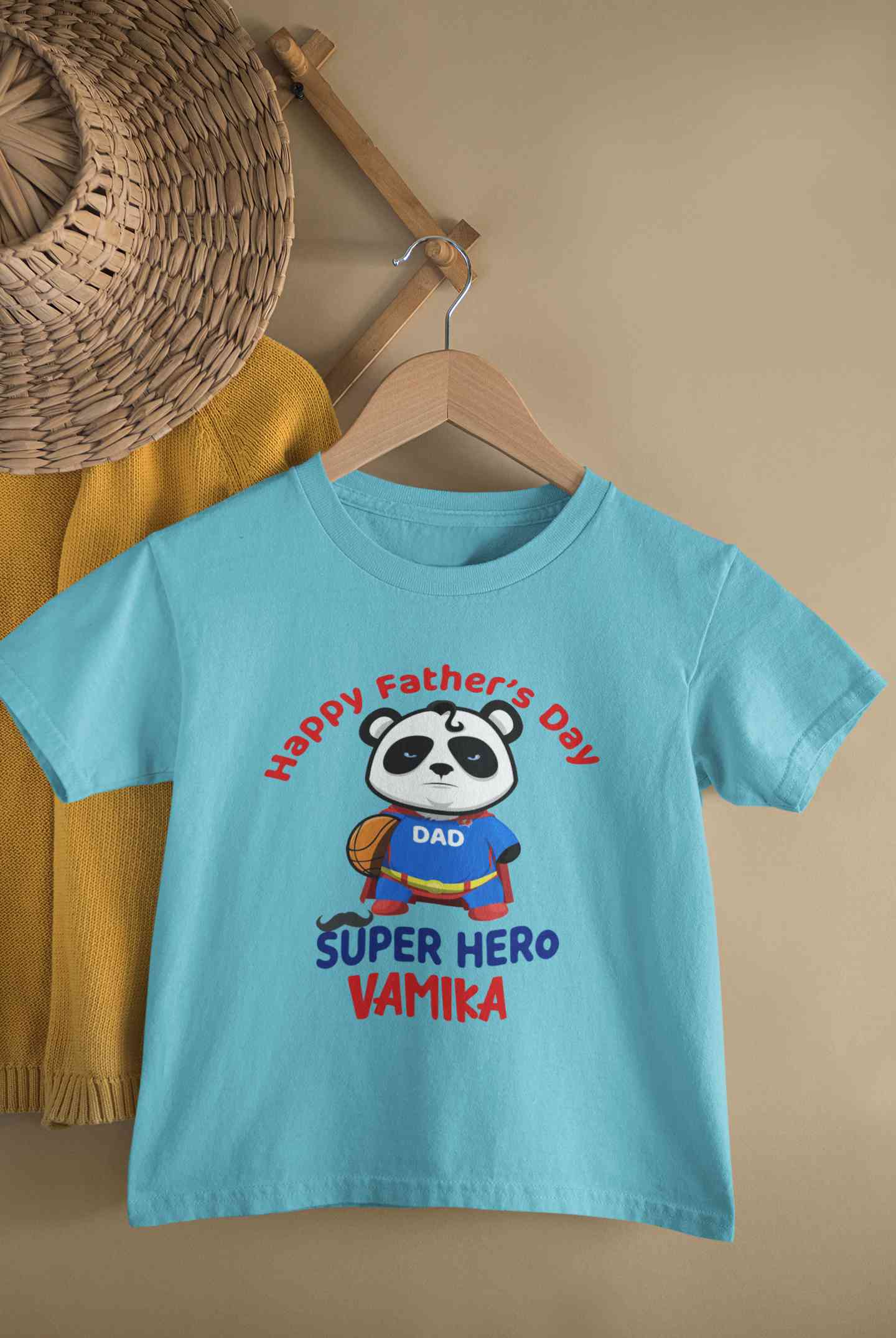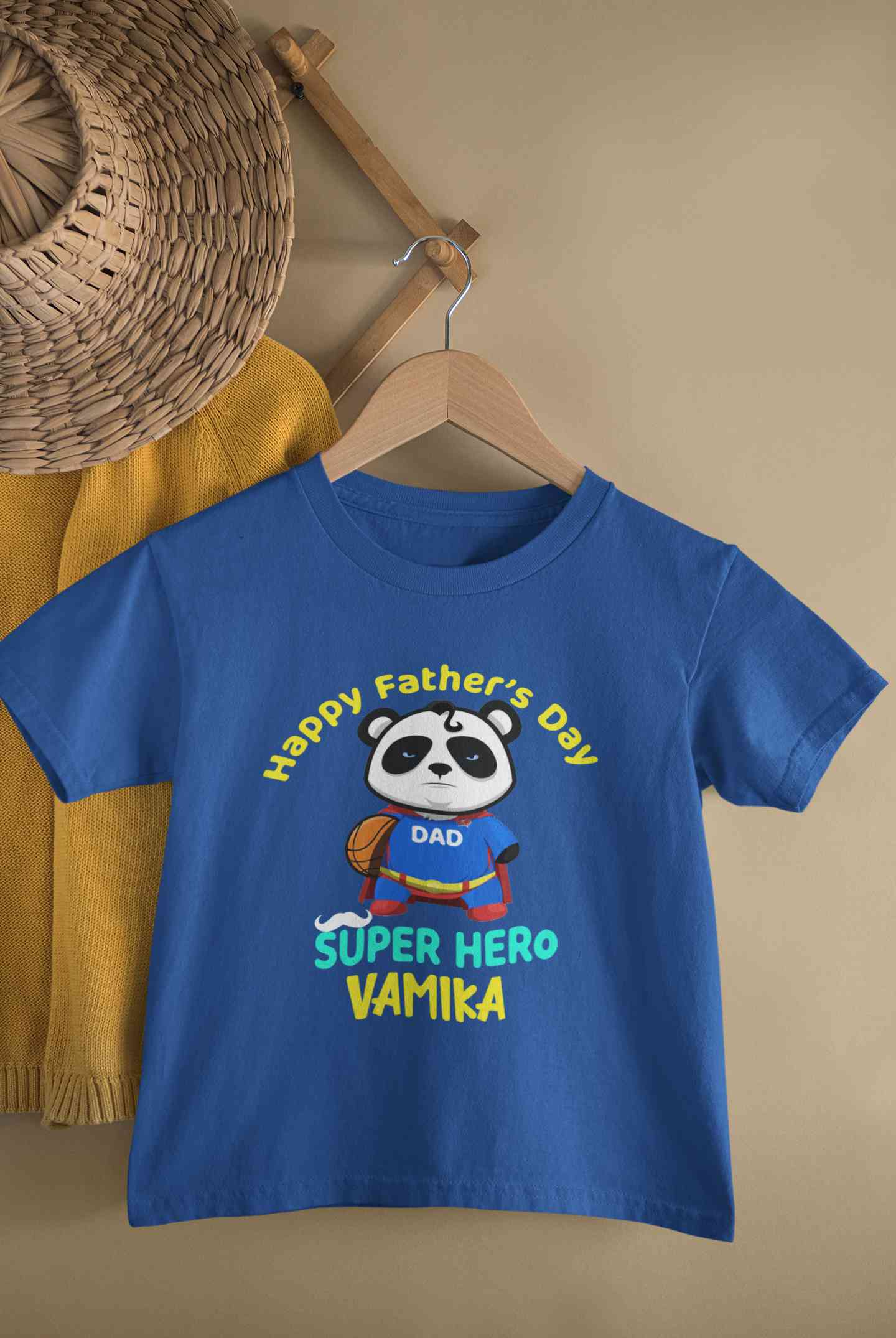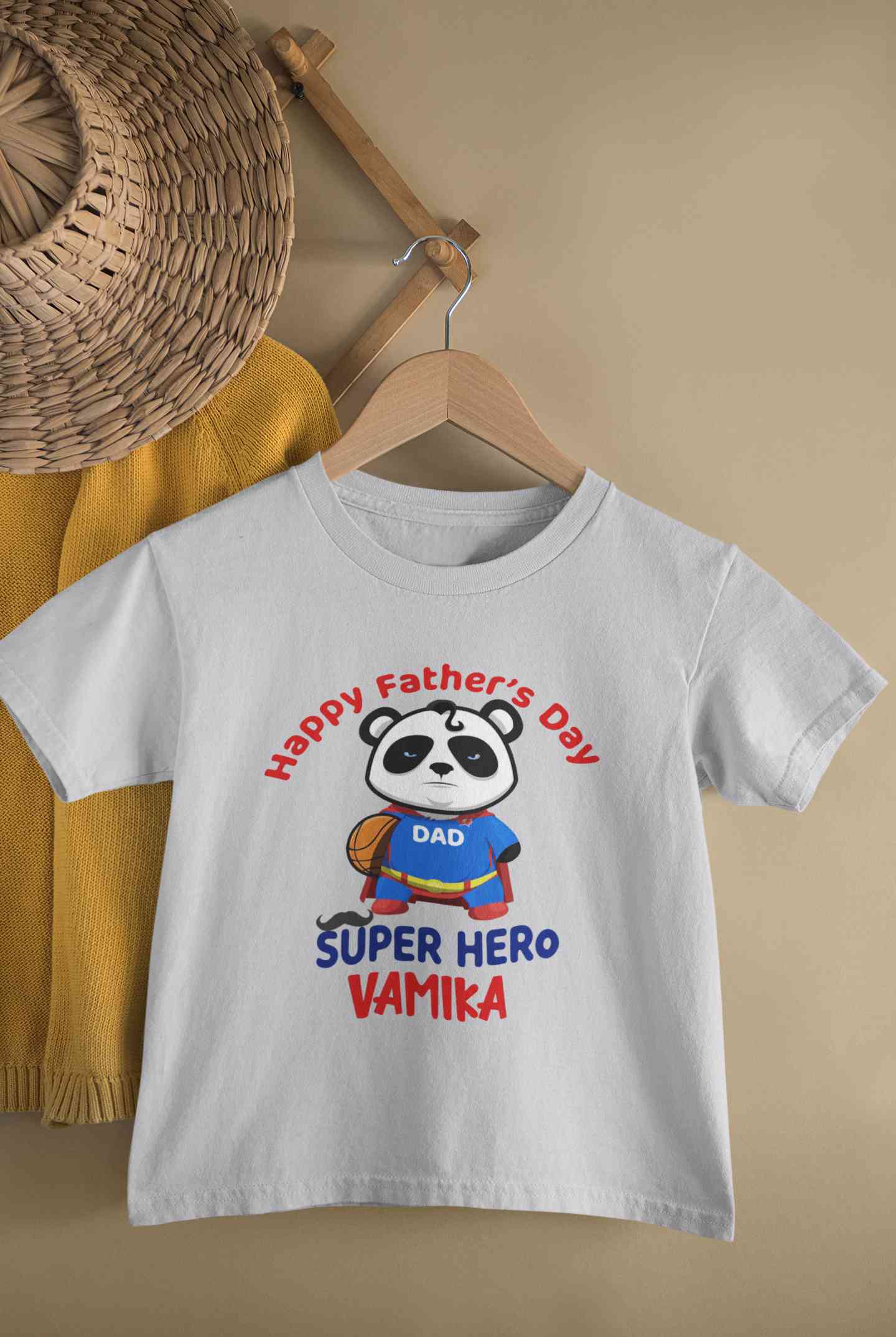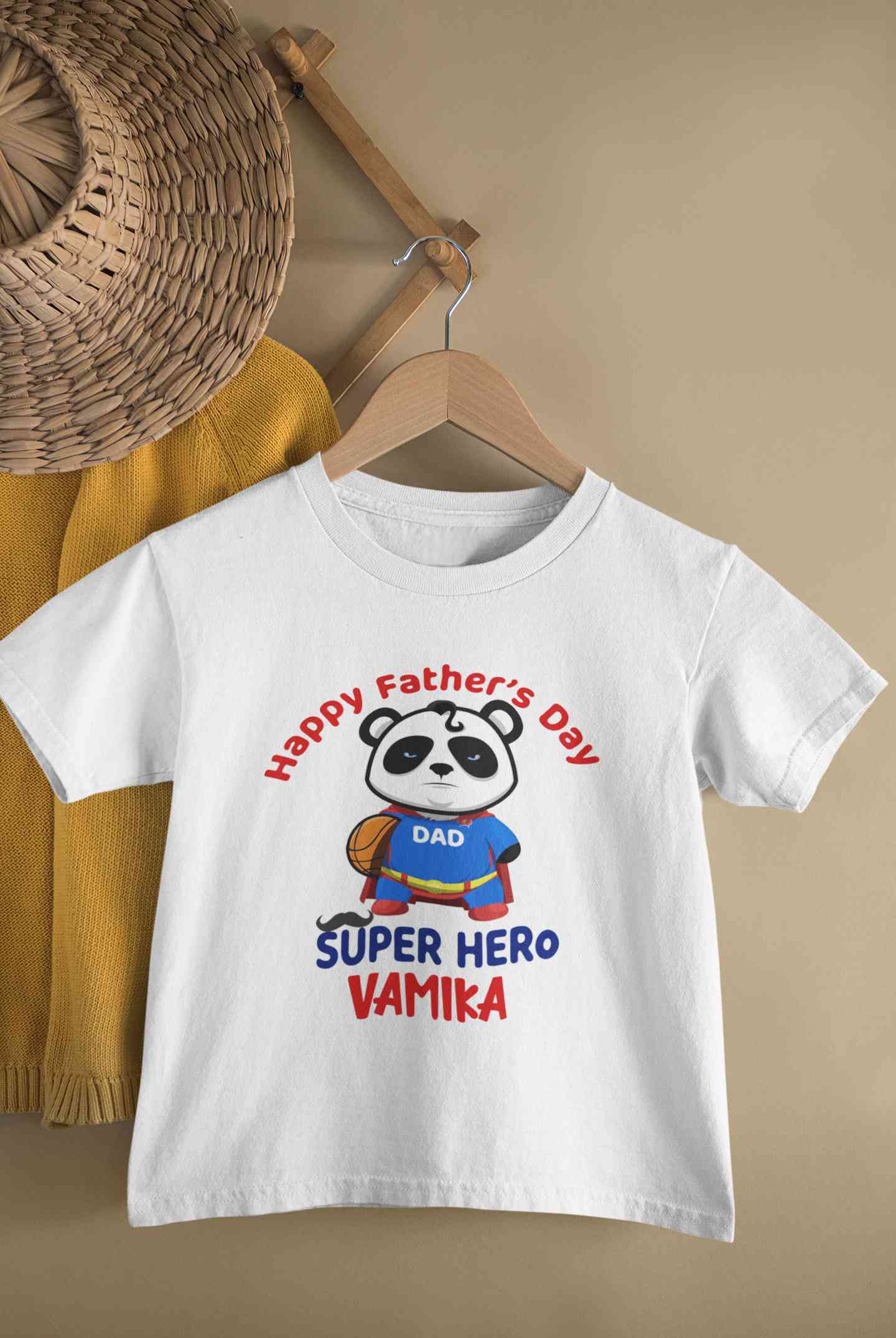 Custom Name Happy Fathers Day Super Hero Half Sleeves T-Shirt For Girls -FashionRazor