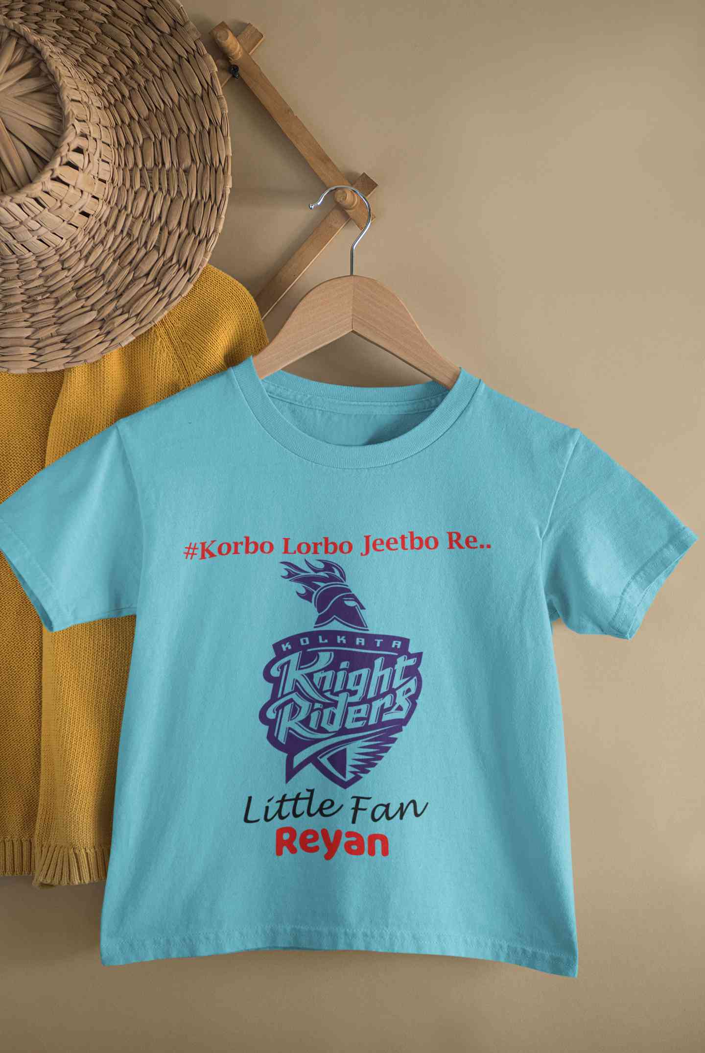 Custom Name IPL KKR Kolkata Knight Riders Korbo Lorbo Jeetbo Re Boy Half Sleeves T-Shirt for Boy-FashionRazor