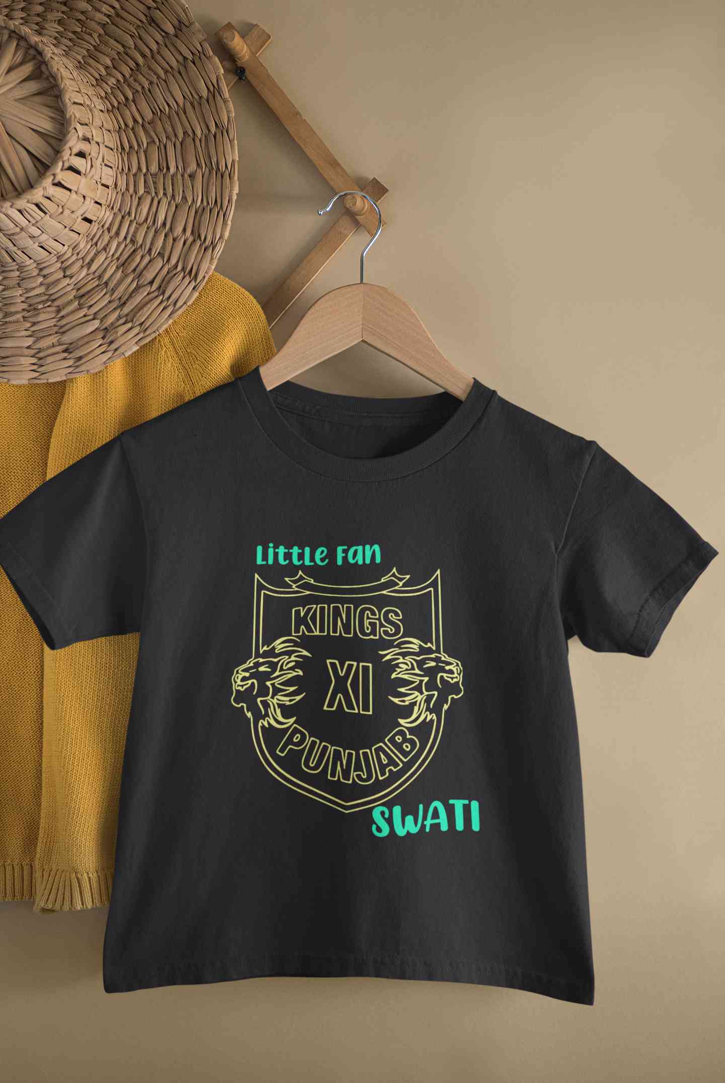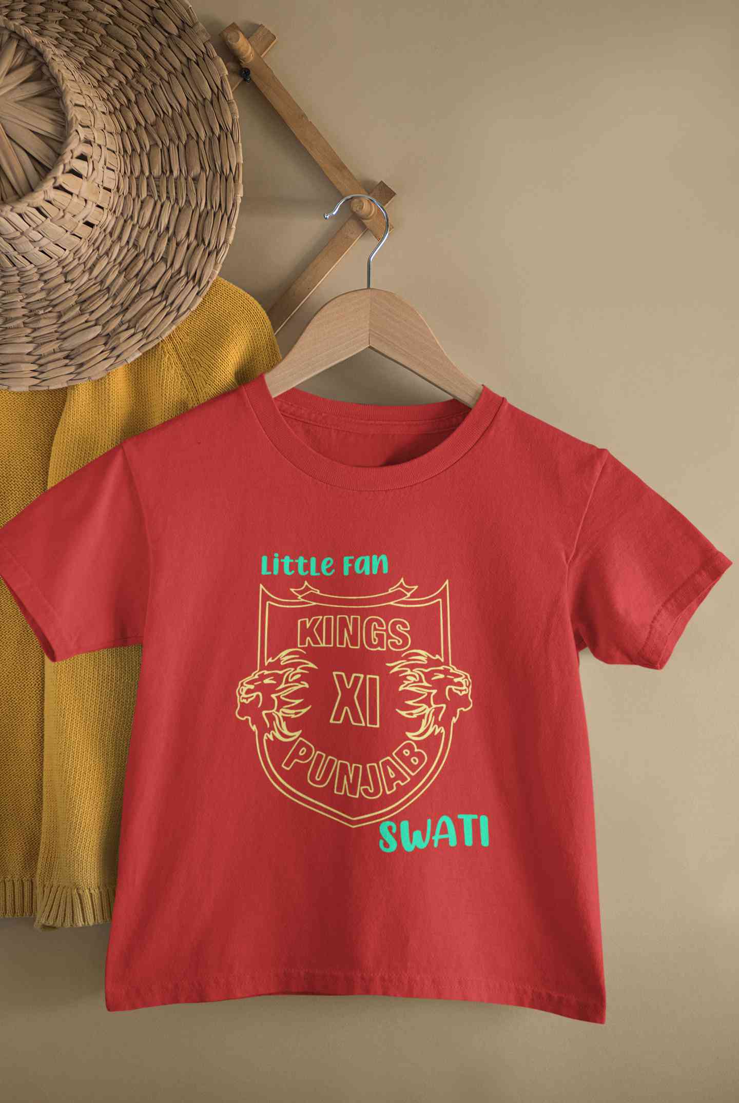 Custom Name IPL PBKS Punjab Super Kings Little Fan Half Sleeves T-Shirt For Girls -FashionRazor