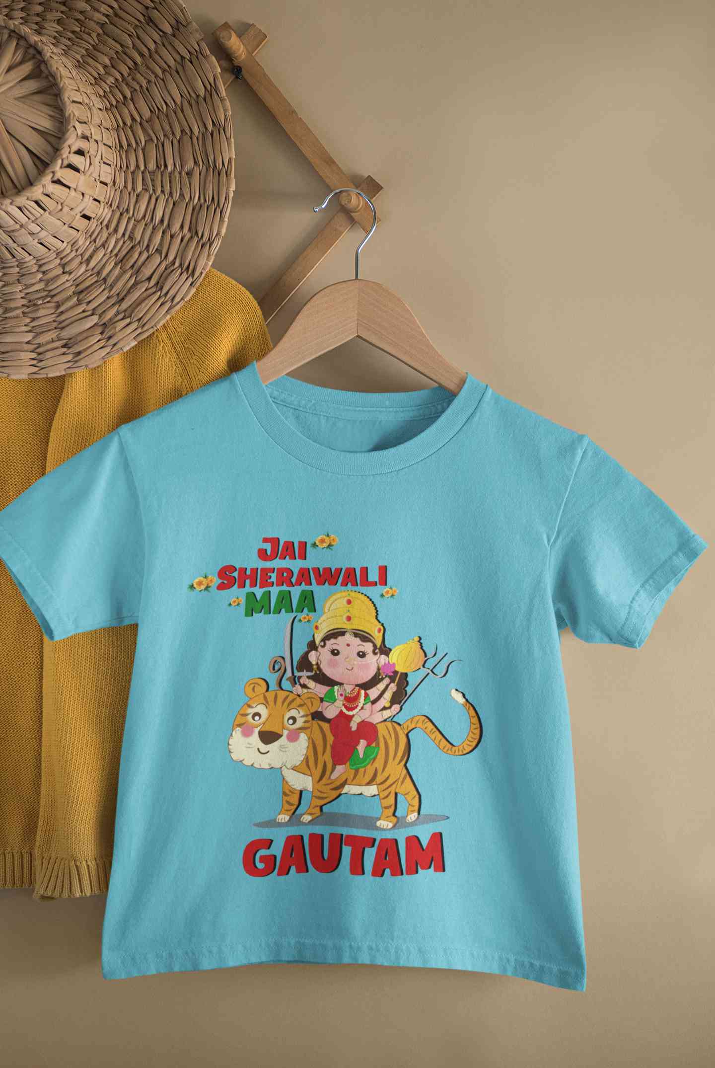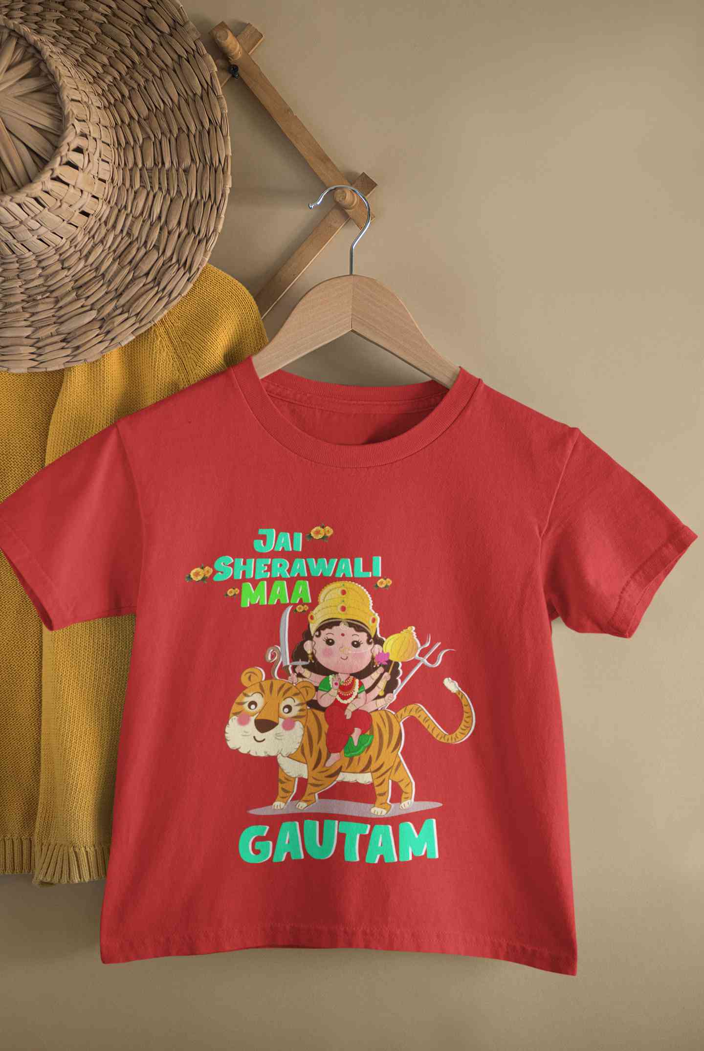 Buy Custom Name Jai Sherawali Maa Navratri Half Sleeves T-Shirt for Boy-FashionRazor